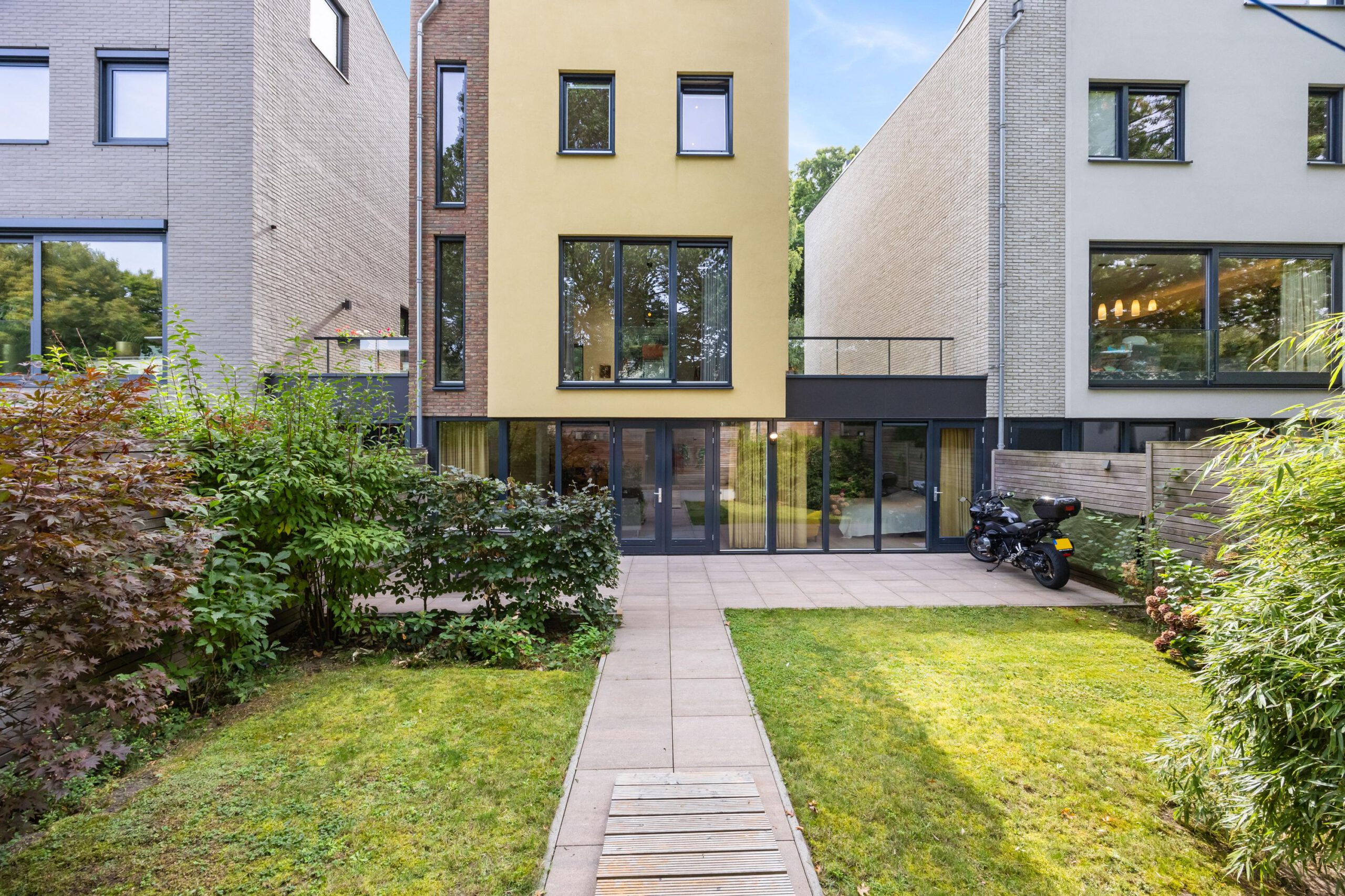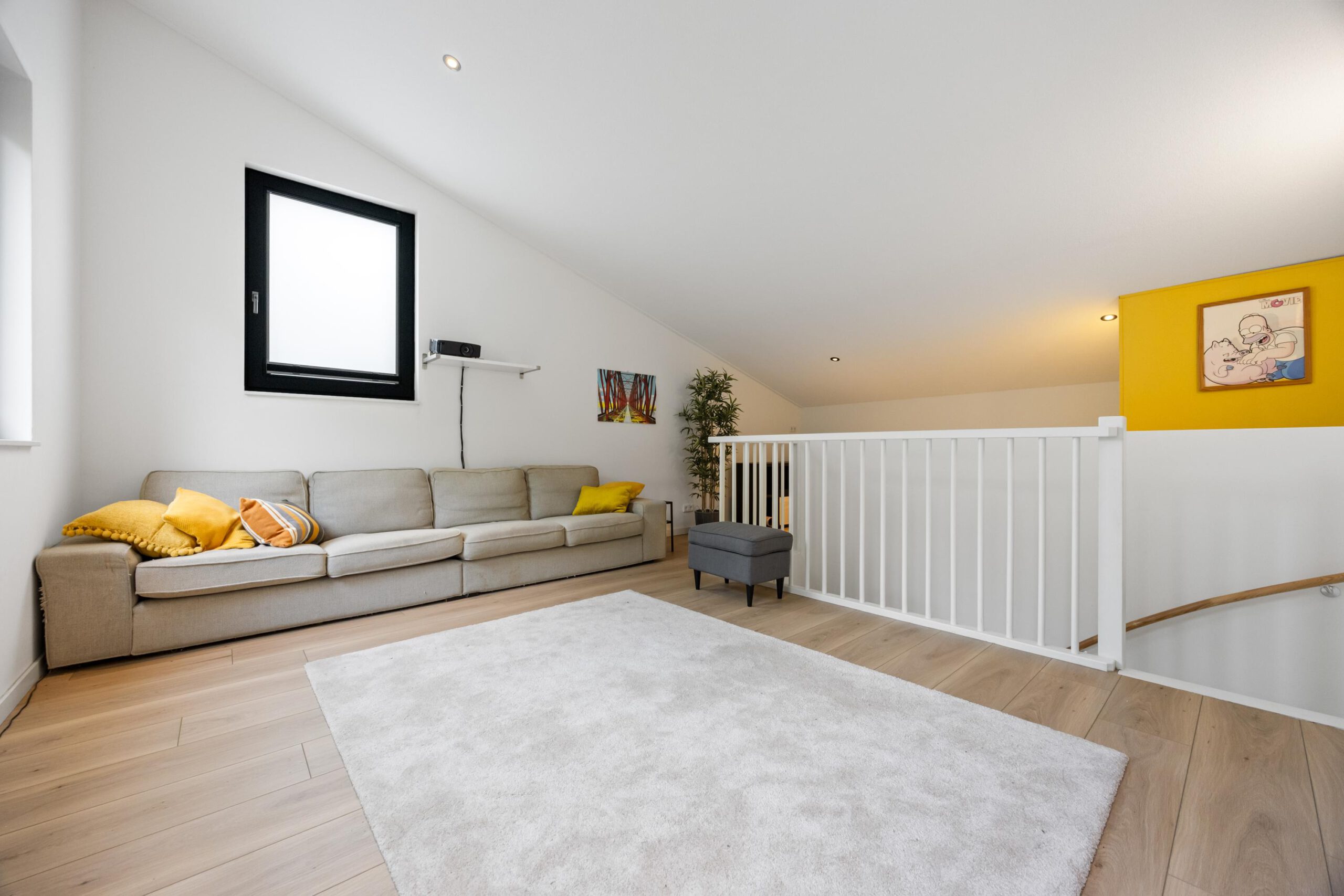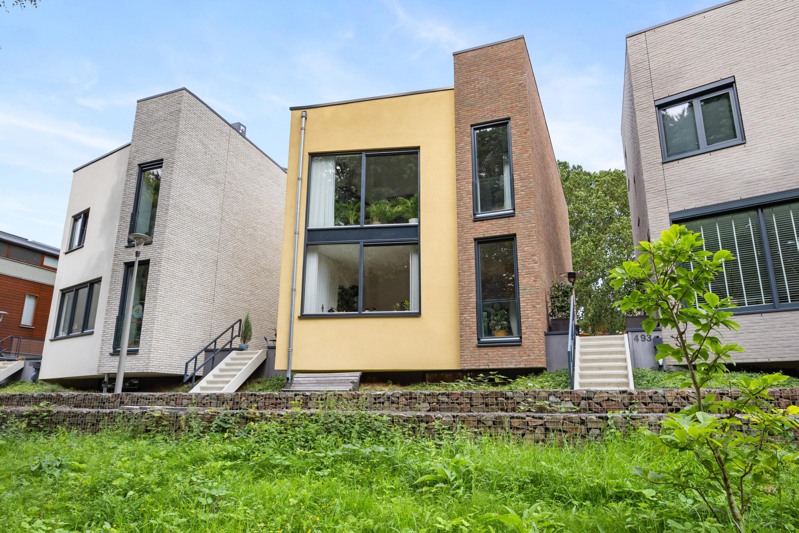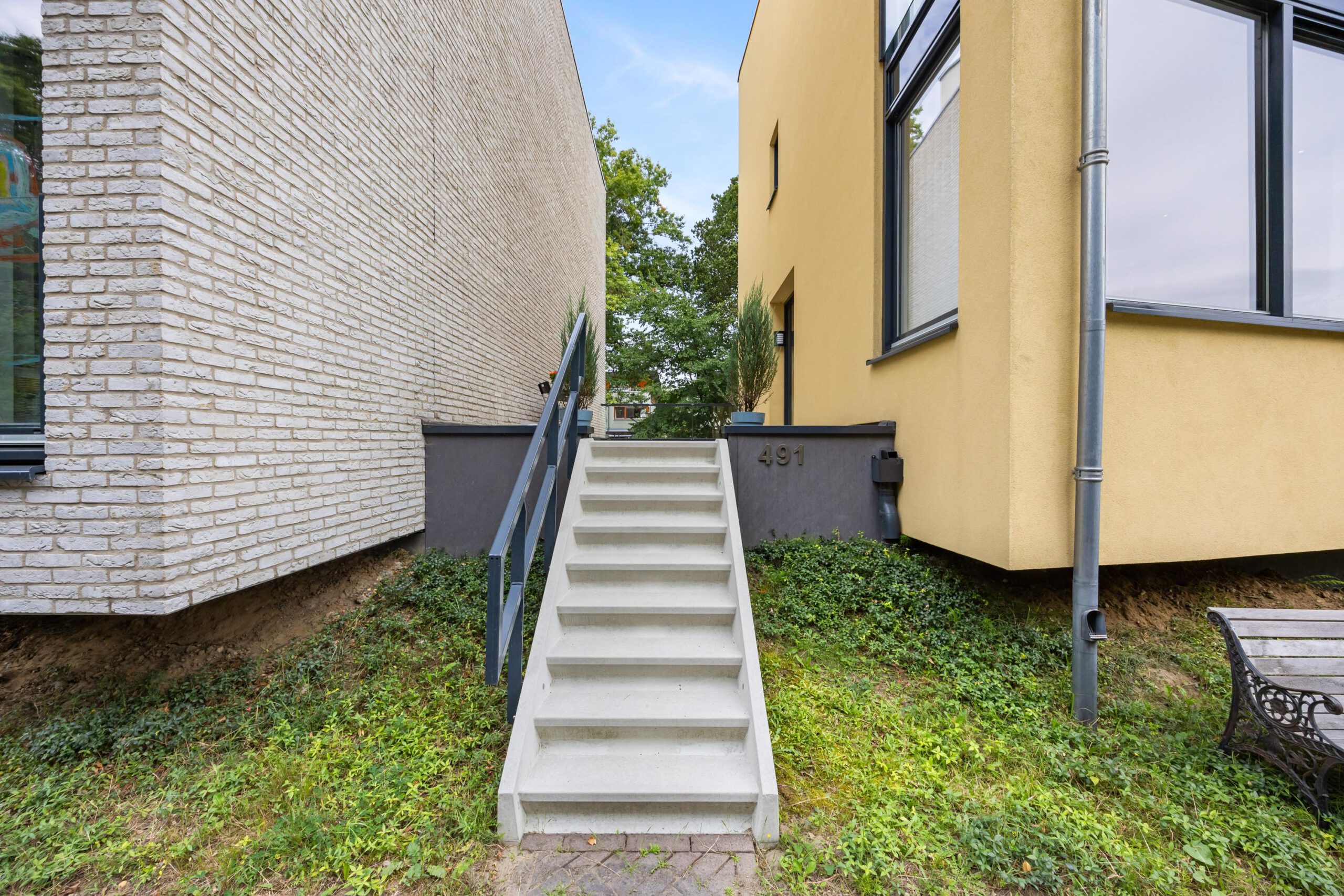 Deze energiezuinige villa biedt uitzicht op de ingang van park Angerenstein door grote raampartijen aan de voorzijde van de speelse en ruime woning. Binnen ervaar je een oase van rust te midden van een groene omgeving, maar ook een eigentijds ontwerp dat zich perfect integreert in de ecologische wijk Nieuw Monnikenhuizen. Dankzij de hoger gelegen verdiepingen kijkt u niet alleen uit over de prachtige oude en monumentale bomen van het park, maar ook over de authentieke trolleybussen van lijn 7, die u na 5 haltes naar het centrum brengen.