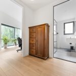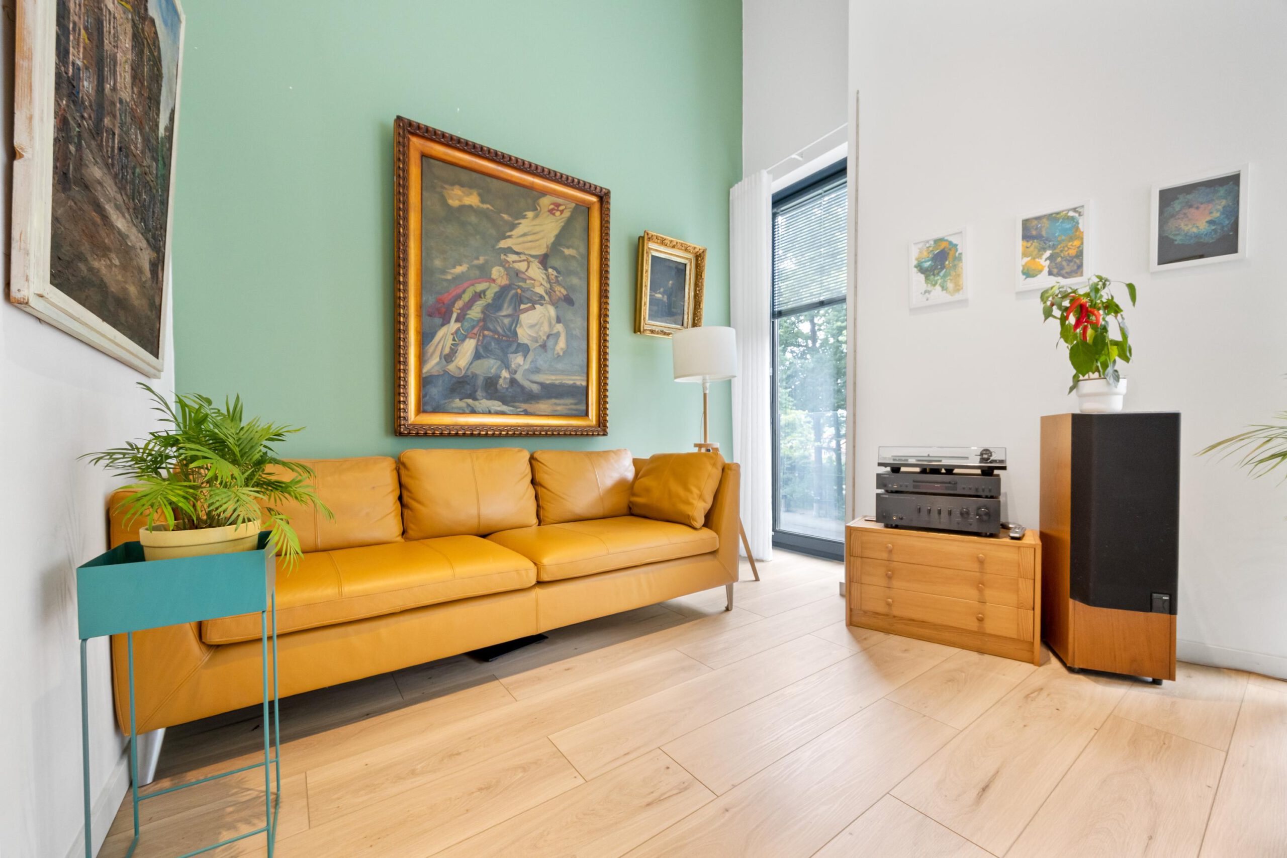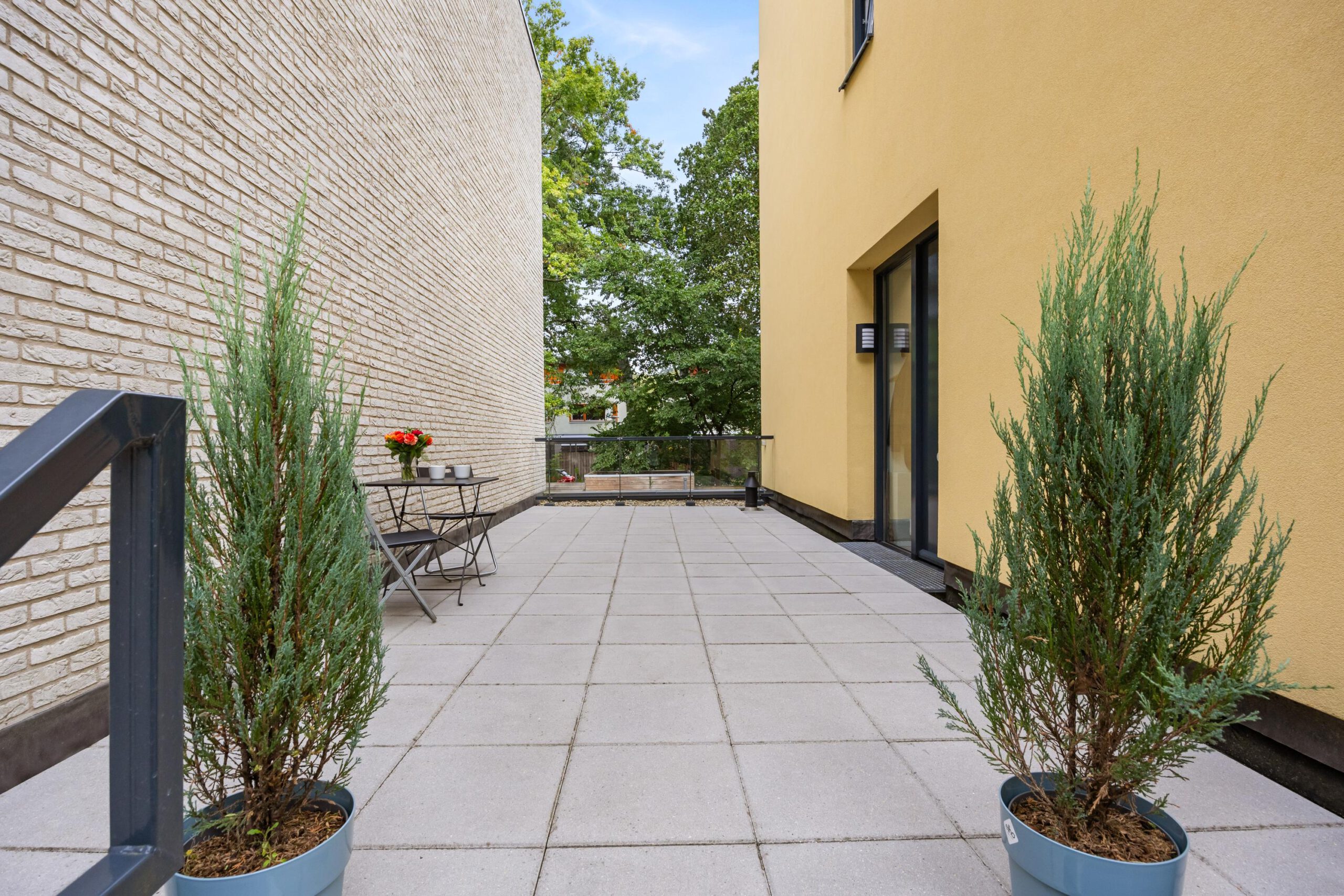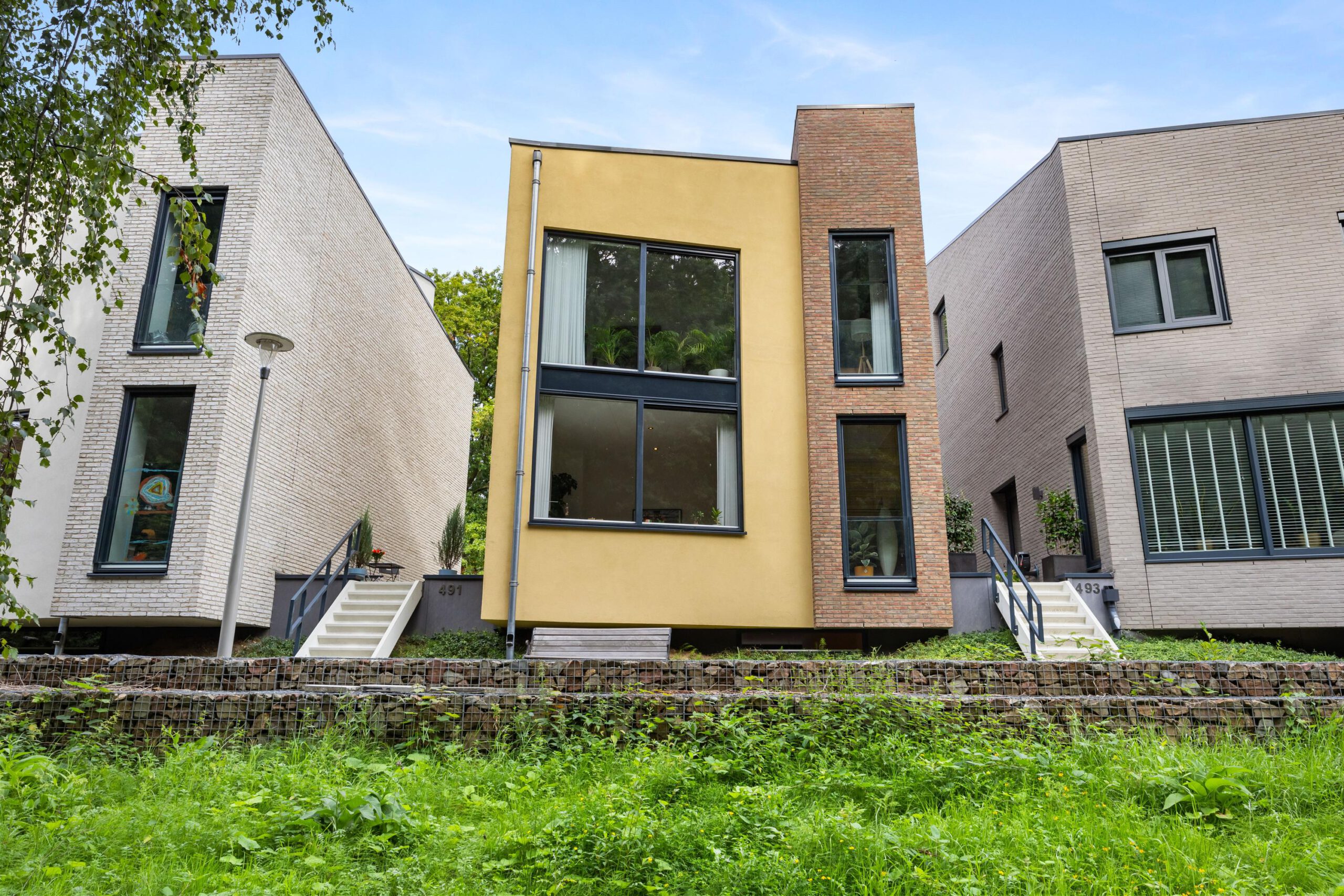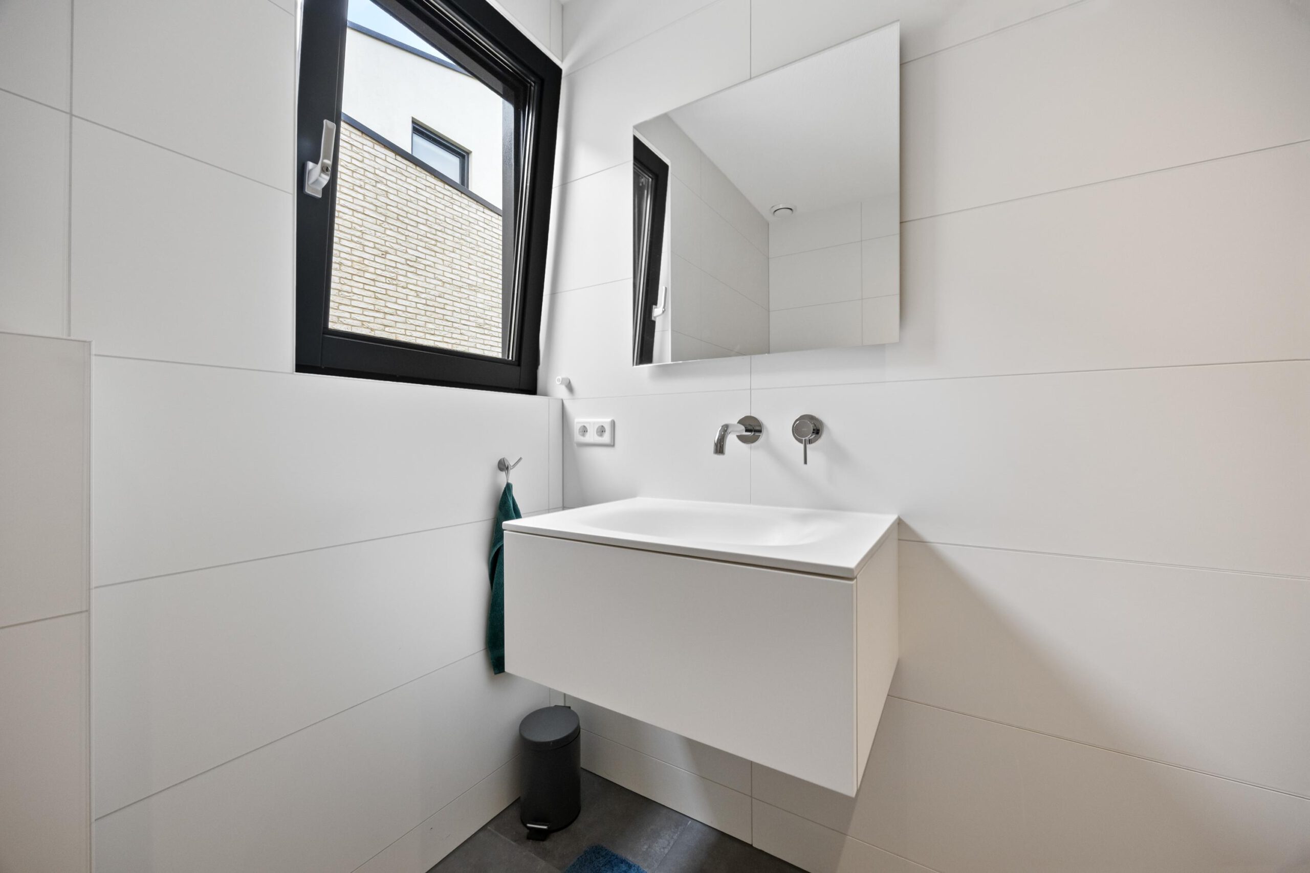 Deze energiezuinige villa biedt uitzicht op de ingang van park Angerenstein door grote raampartijen aan de voorzijde van de speelse en ruime woning. Binnen ervaar je een oase van rust te midden van een groene omgeving, maar ook een eigentijds ontwerp dat zich perfect integreert in de ecologische wijk Nieuw Monnikenhuizen. Dankzij de hoger gelegen verdiepingen kijkt u niet alleen uit over de prachtige oude en monumentale bomen van het park, maar ook over de authentieke trolleybussen van lijn 7, die u na 5 haltes naar het centrum brengen.