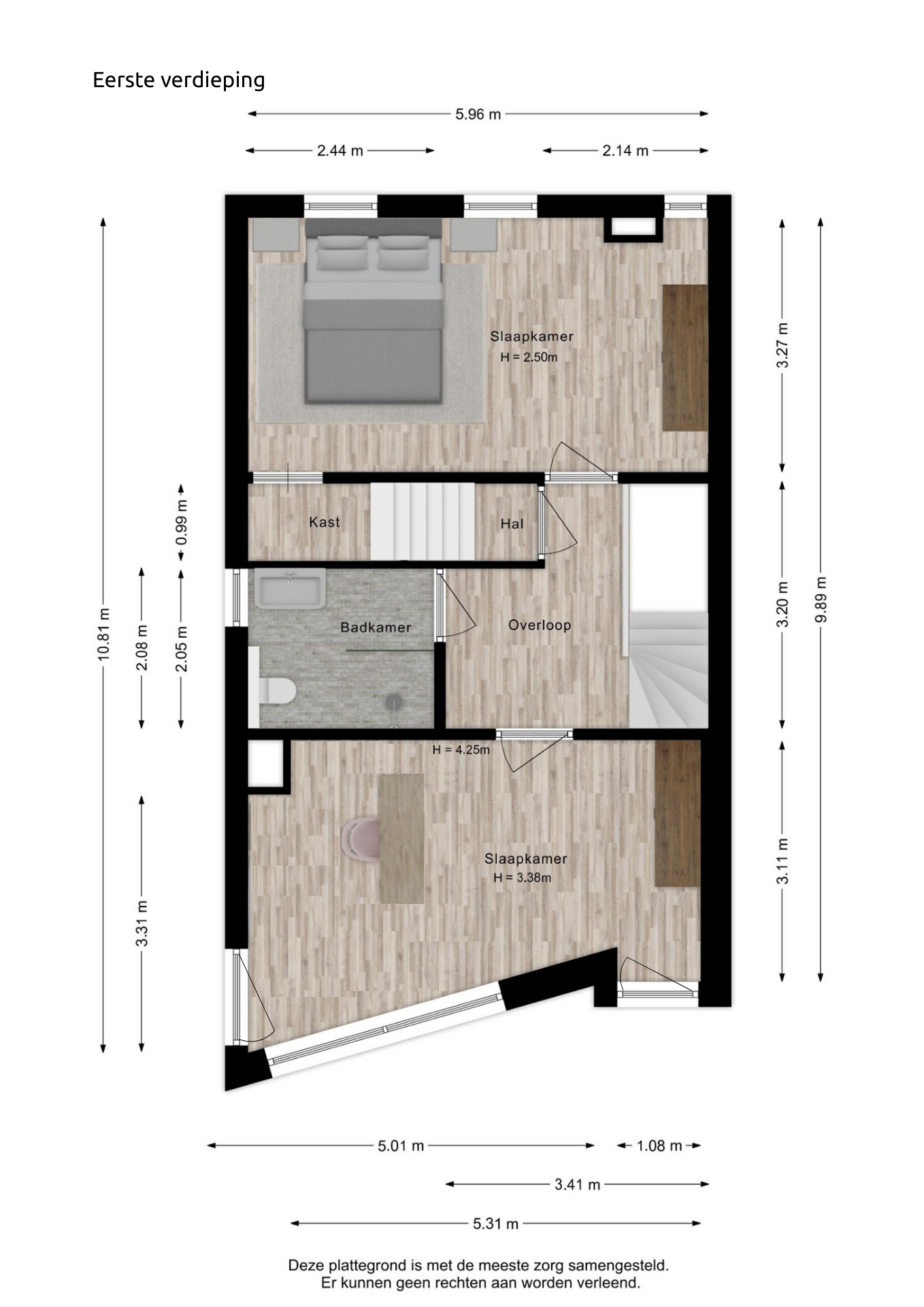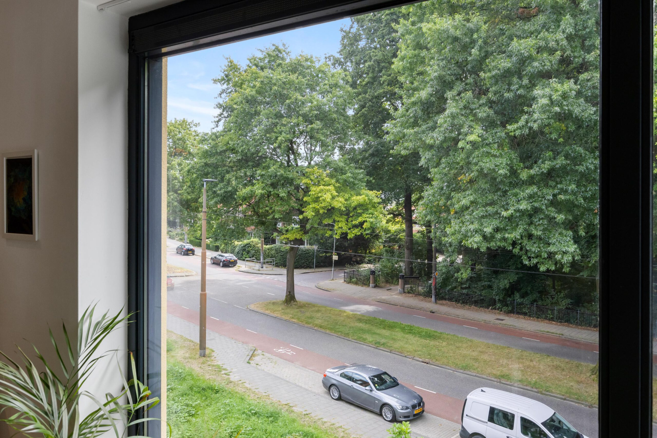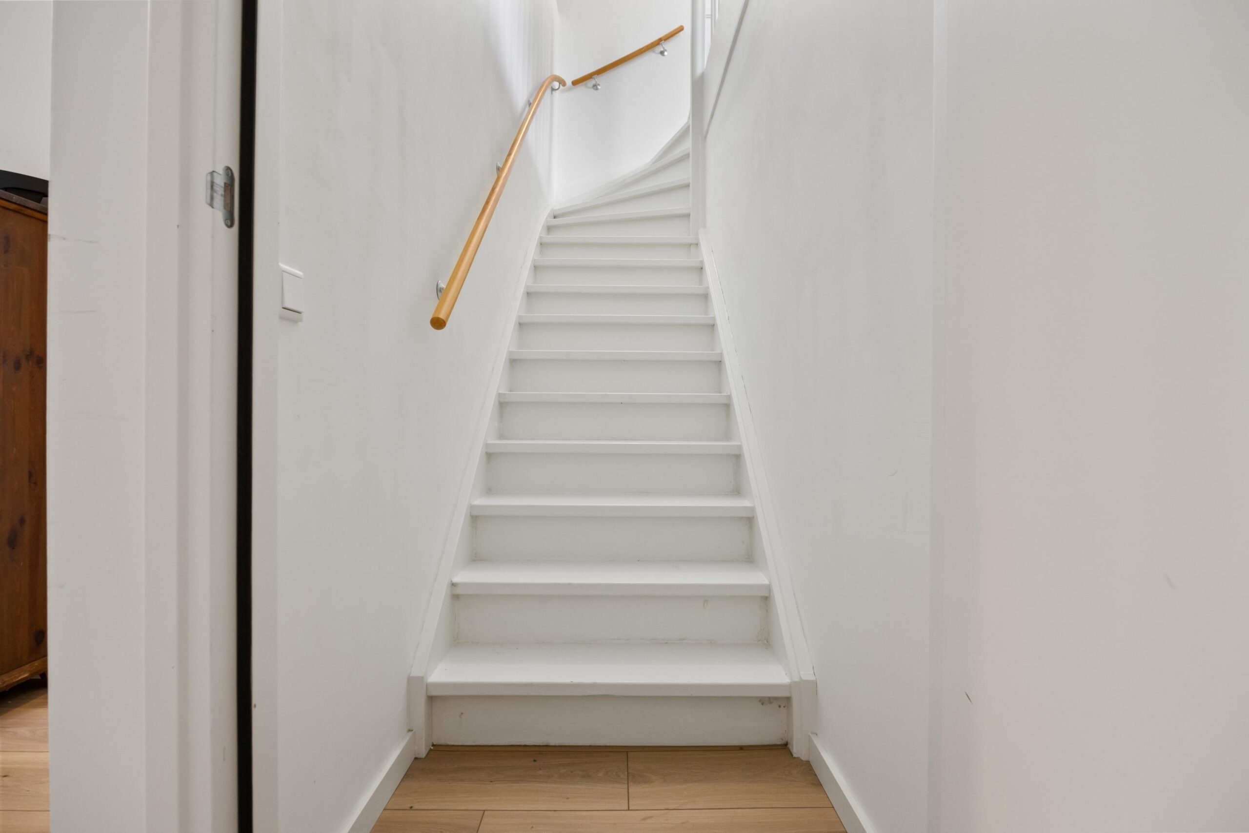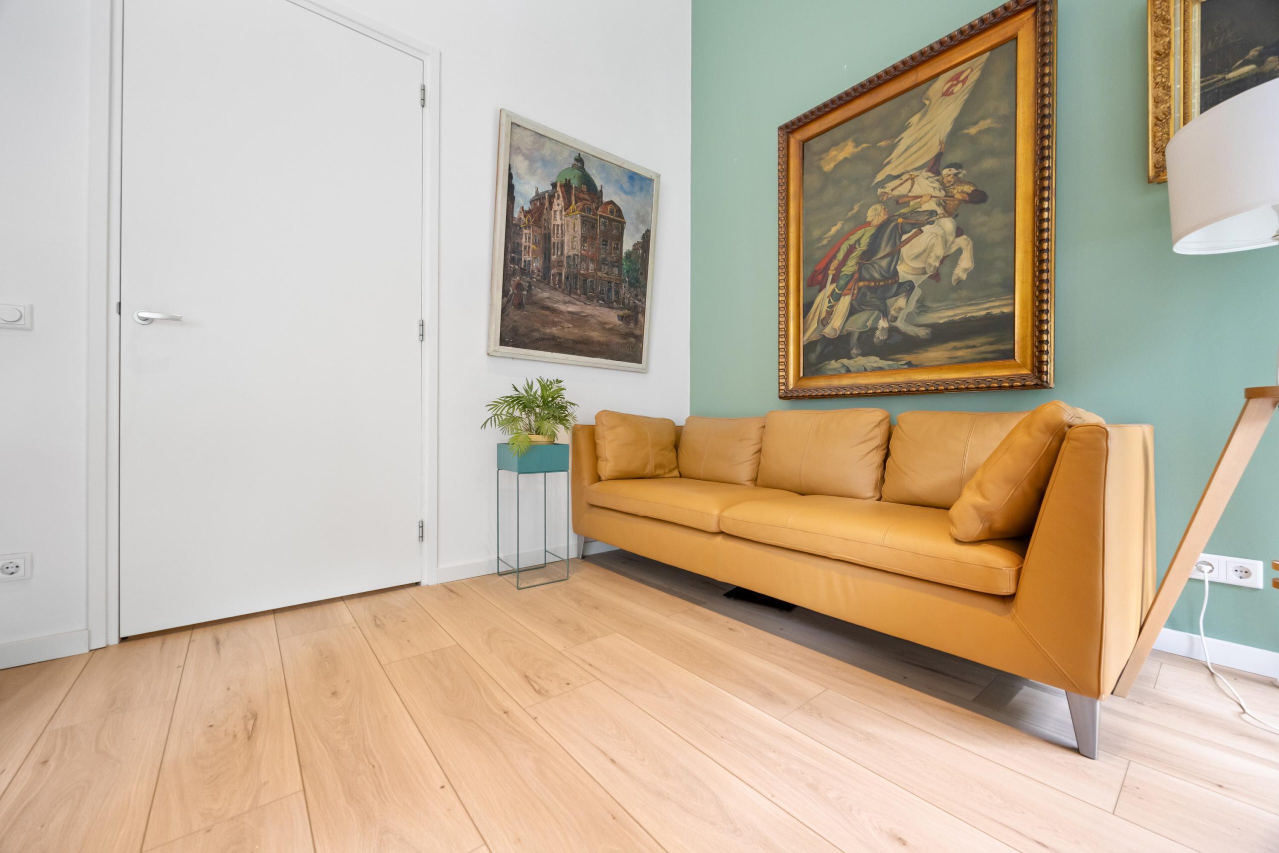 De voordeur tevens de ingang van de woning aan de straatzijde met hal en toilet zijn te bereiken via een statige trap met leuning. Verder is deze etage in twee gedeeld. Aan de voorzijde een heerlijke zitkamer met zicht op het park.