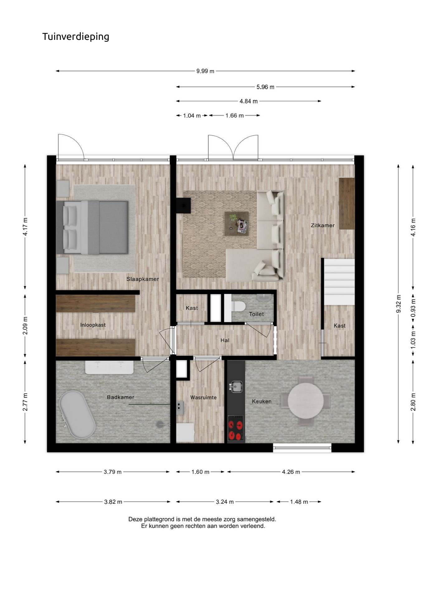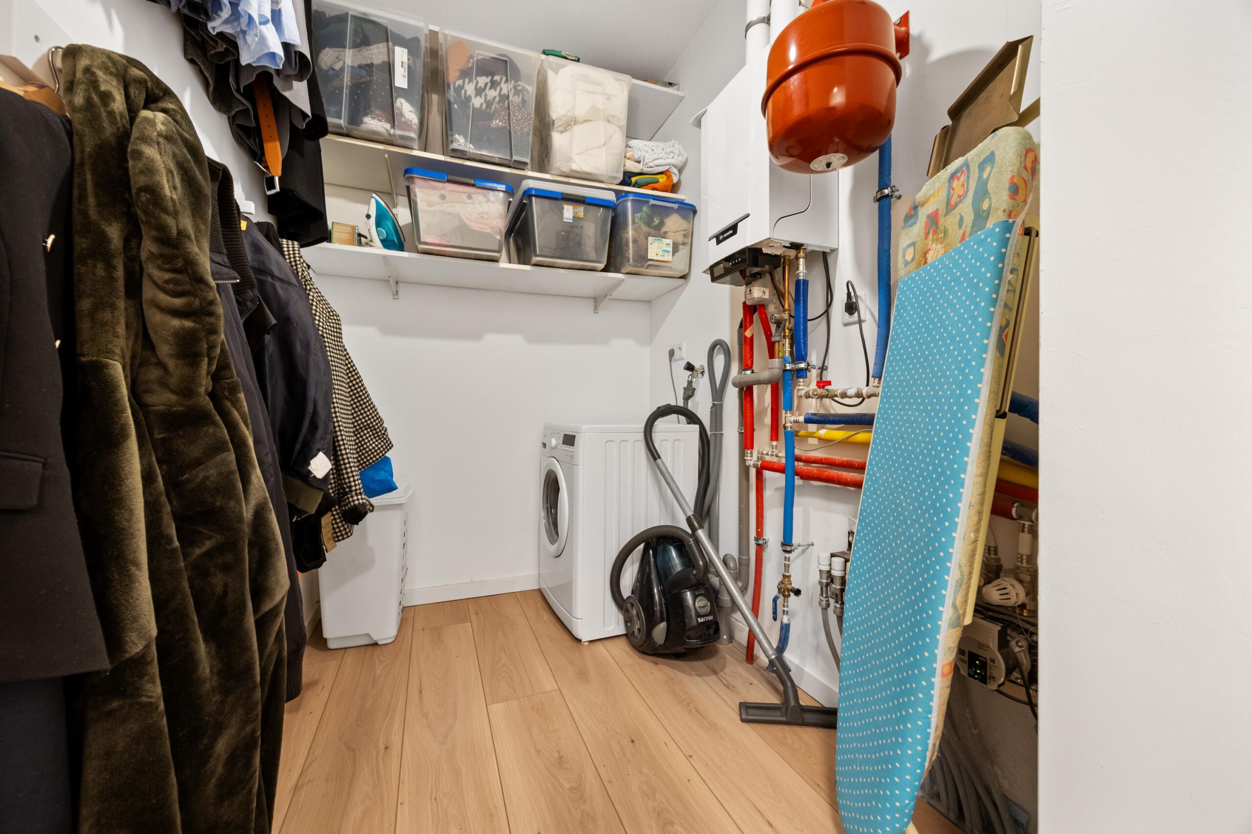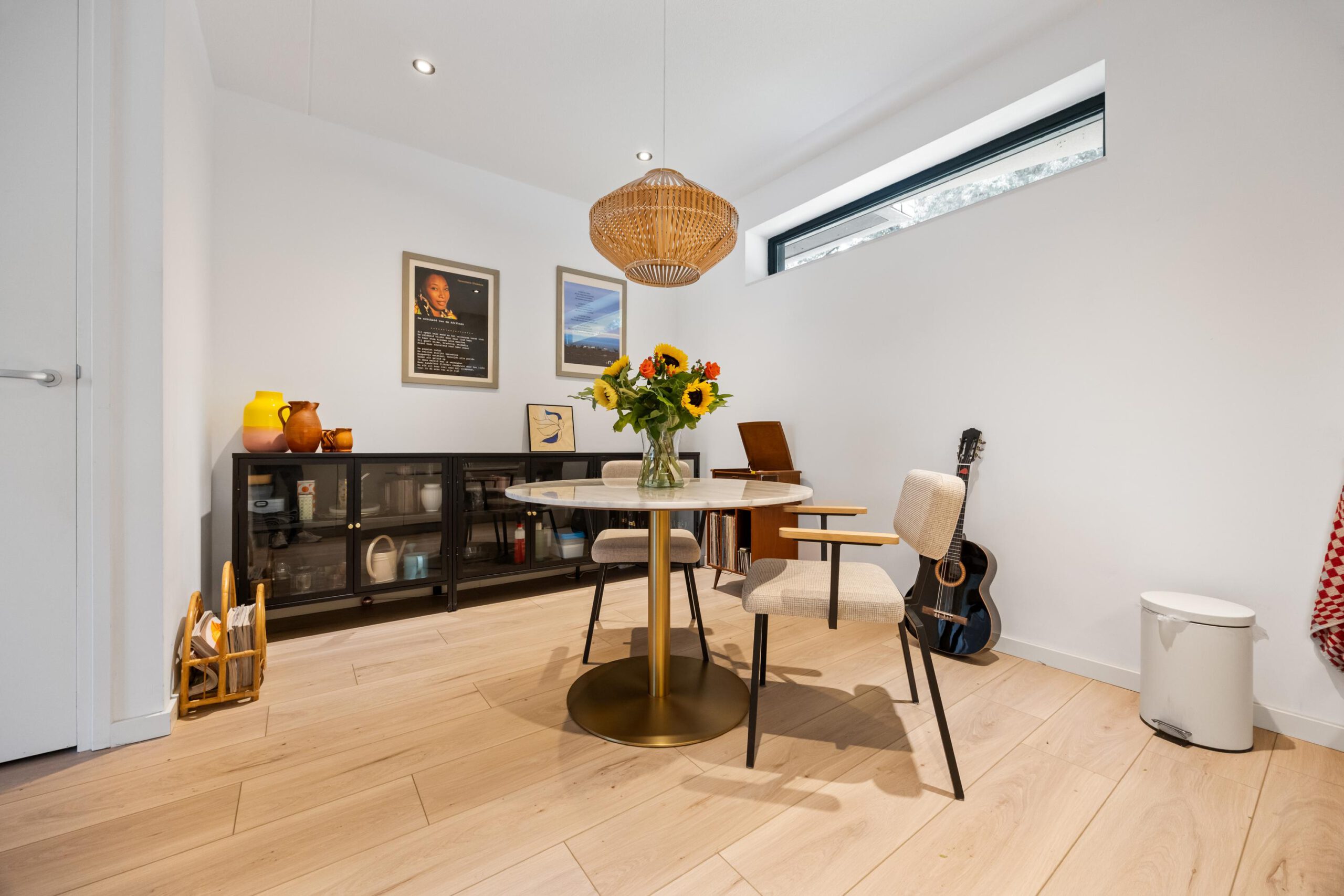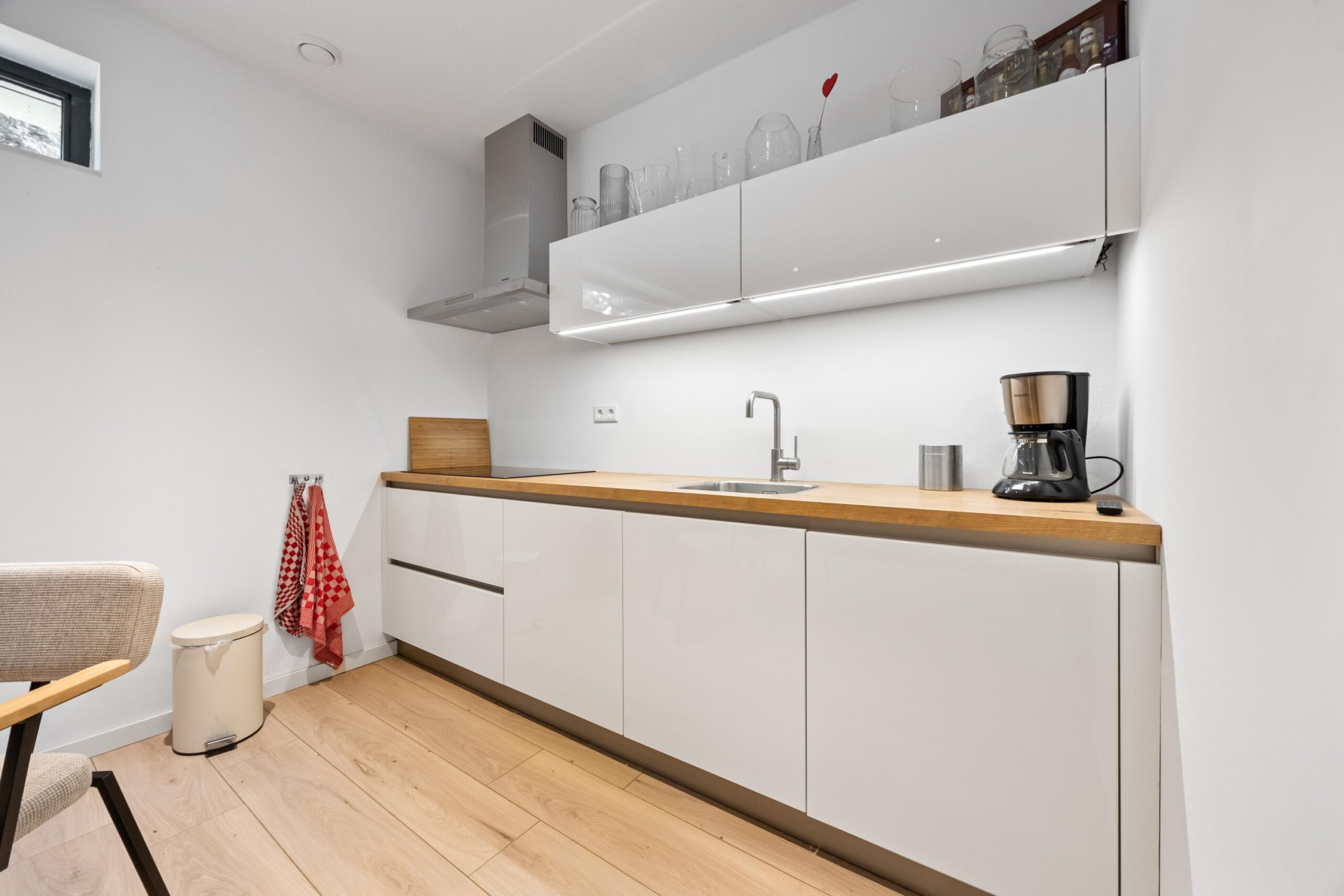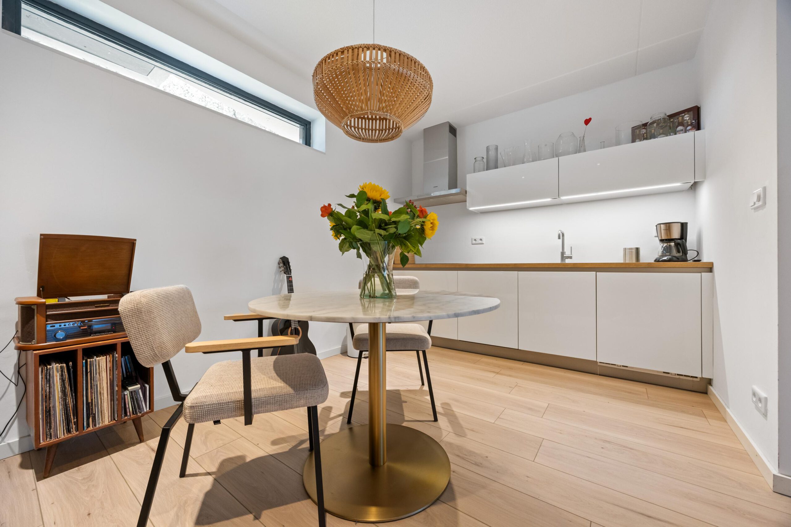 Een werkelijk fantastische royaal verdieping. Deze verdieping beschikt over een ruime 'tuinkamer' met een gaskachel en openslaande deuren naar de achtertuin. Vanuit de tuinkamer is de tweede keuken bereikbaar met koelkast, vaatwasser en inductiekookplaat met afzuigkap, wat zorgt voor extra comfort in het gebruik van de ruimte.