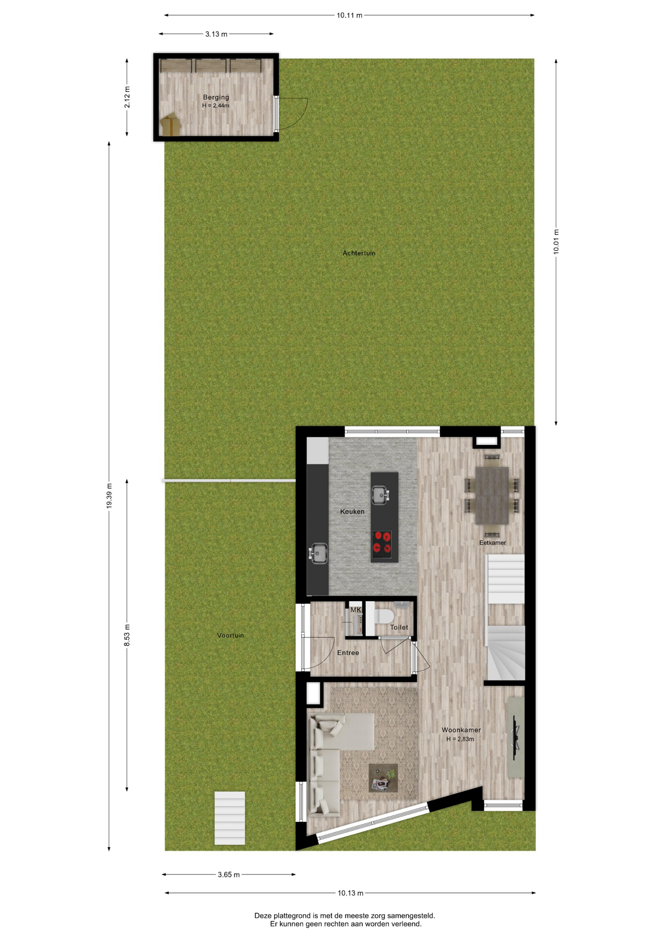 -De tuin en berging (achterom) zijn te bereiken door een breed mandelig voetpad.
