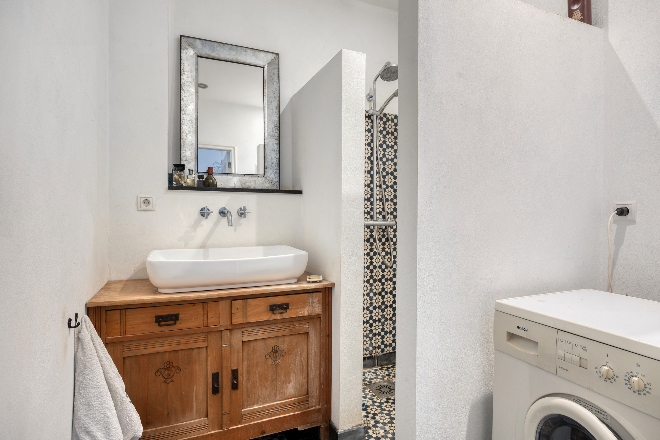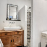 De badkamer is voorzien van een inloopdouche, wastafelmeubel met wastafel, wasmachineaansluiting en eveneens vloerverwarming.