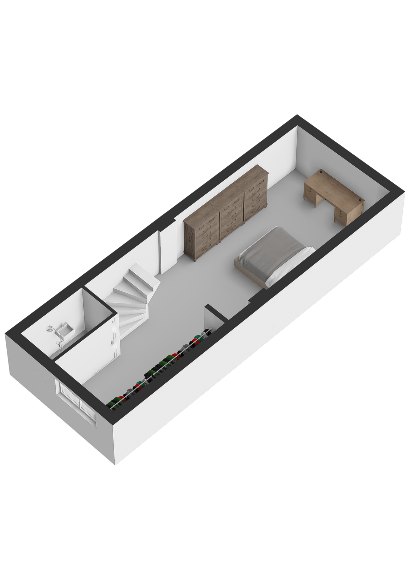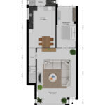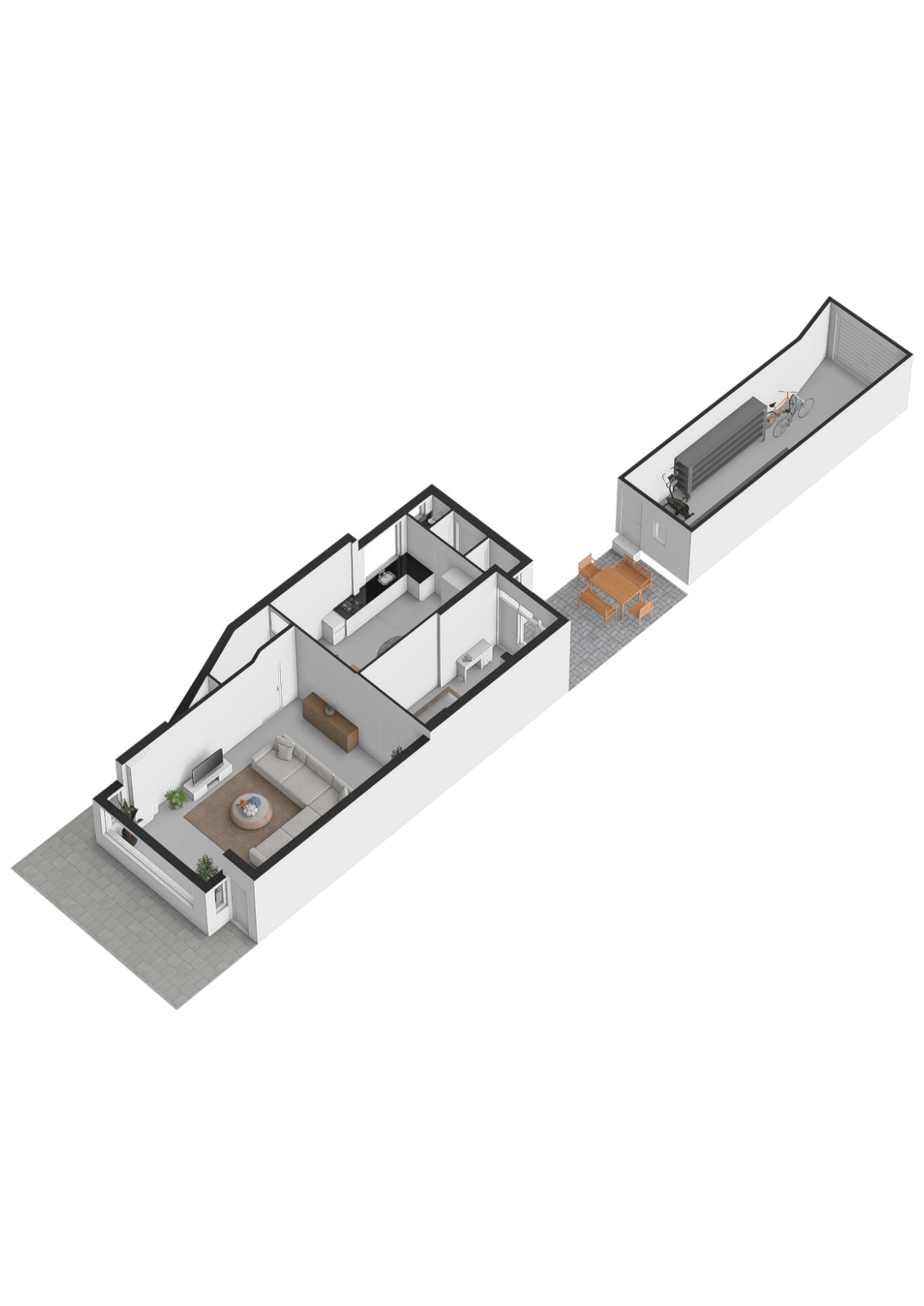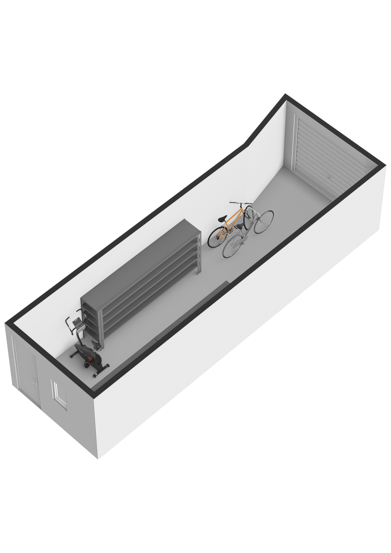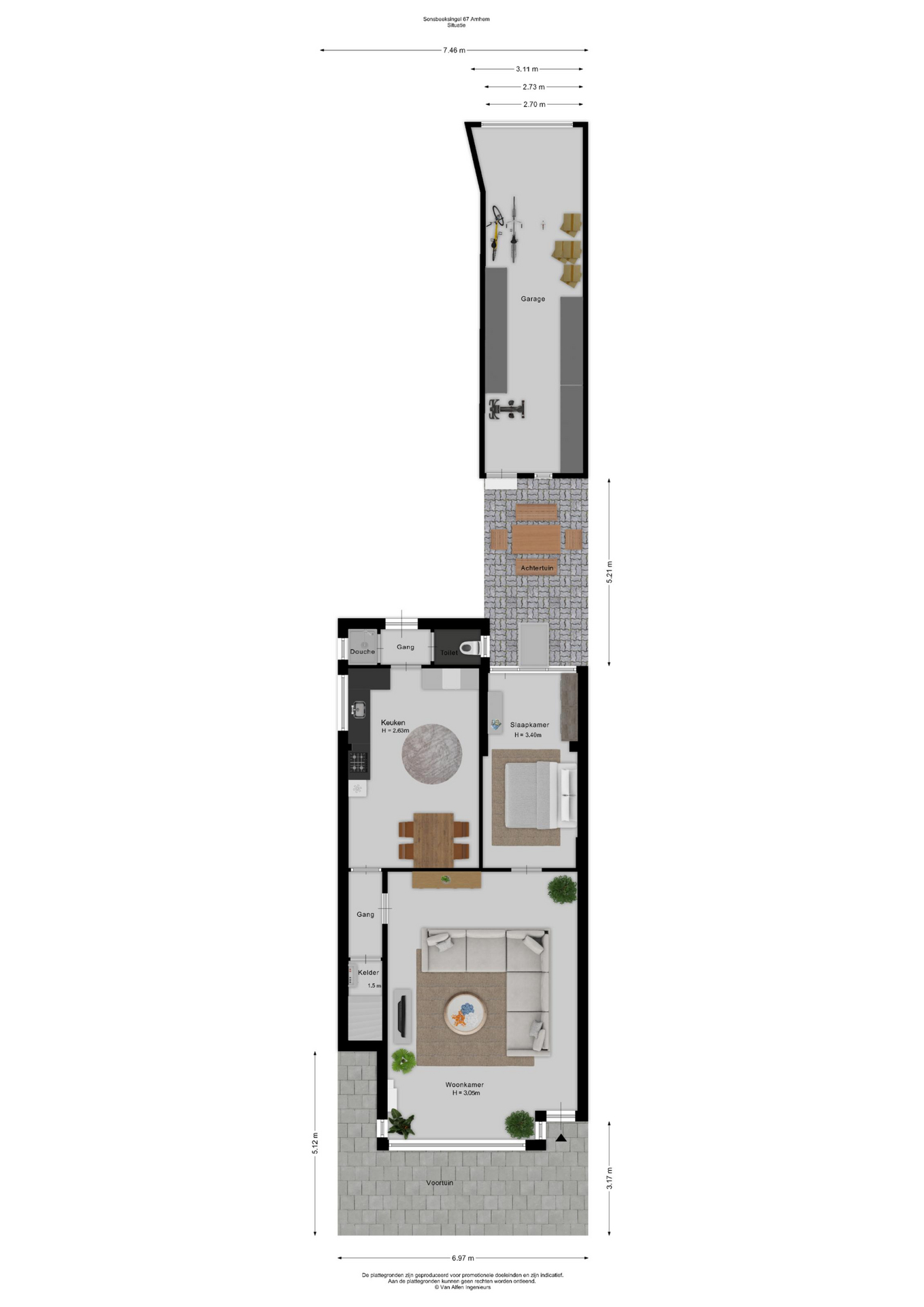 Middels de nog in te richten voortuin kom je terecht in een riante ruimte die in te richten is als atelier/woonruimte. Deze ruimte grenst aan de keuken, toilet en douche ruimte. Vanuit de achterkamer kom je terecht op de binnenplaats die grenst aan een extra lange garage die vanuit de Van…