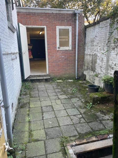 Middels de nog in te richten voortuin kom je terecht in een riante ruimte die in te richten is als atelier/woonruimte. Deze ruimte grenst aan de keuken, toilet en douche ruimte. Vanuit de achterkamer kom je terecht op de binnenplaats die grenst aan een extra lange garage die vanuit de Van Spaenstraat toegang geeft. De woning is voorzien van een fraai souterrain onder de gehele woonruimte. Alles naar eigen inzicht en smaak in te richten. De VVE heeft een gezamenlijke opstalverzekering en de servicekosten worden in onderling overleg jaarlijks vastgesteld.
