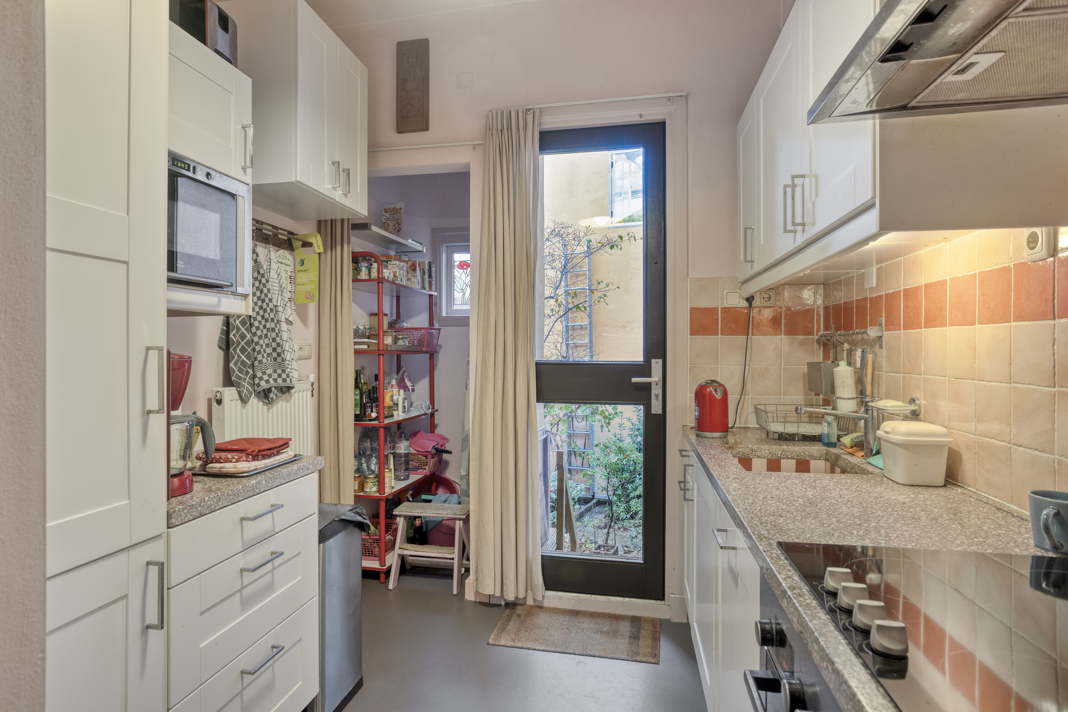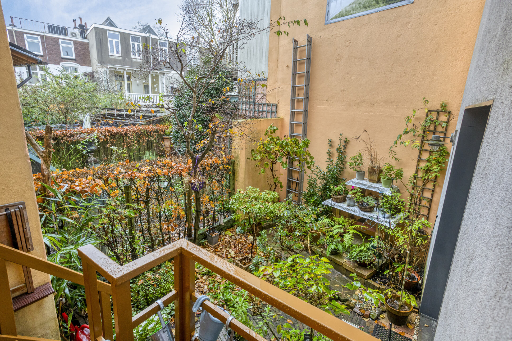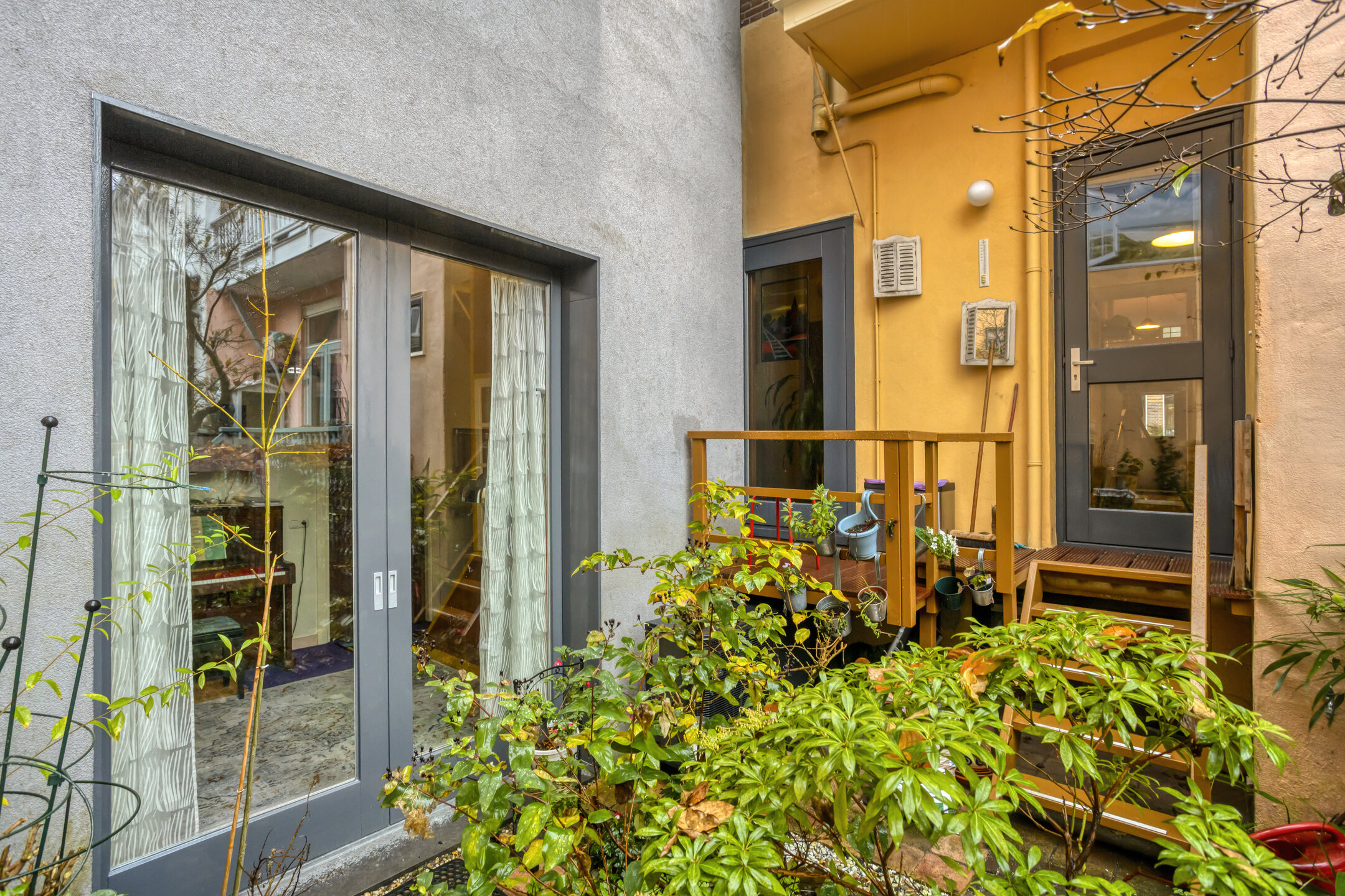Vanuit de keuken stap je op de veranda, waarna een trapje je leidt naar de heerlijke stadstuin. Daarnaast is de tuin ook direct toegankelijk via de tuinkamer. De buitenruimte biedt veel privacy en is een perfecte plek om tot rust te komen.