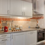 - Keuken: de dichte keuken is voorzien van diverse inbouwapparatuur en biedt praktische bergruimte in de open uitbouw.