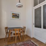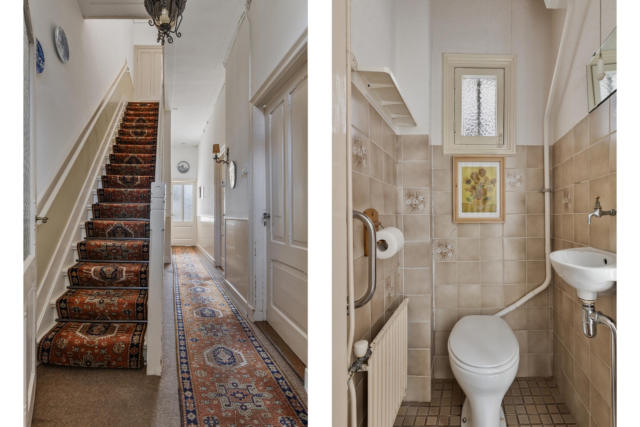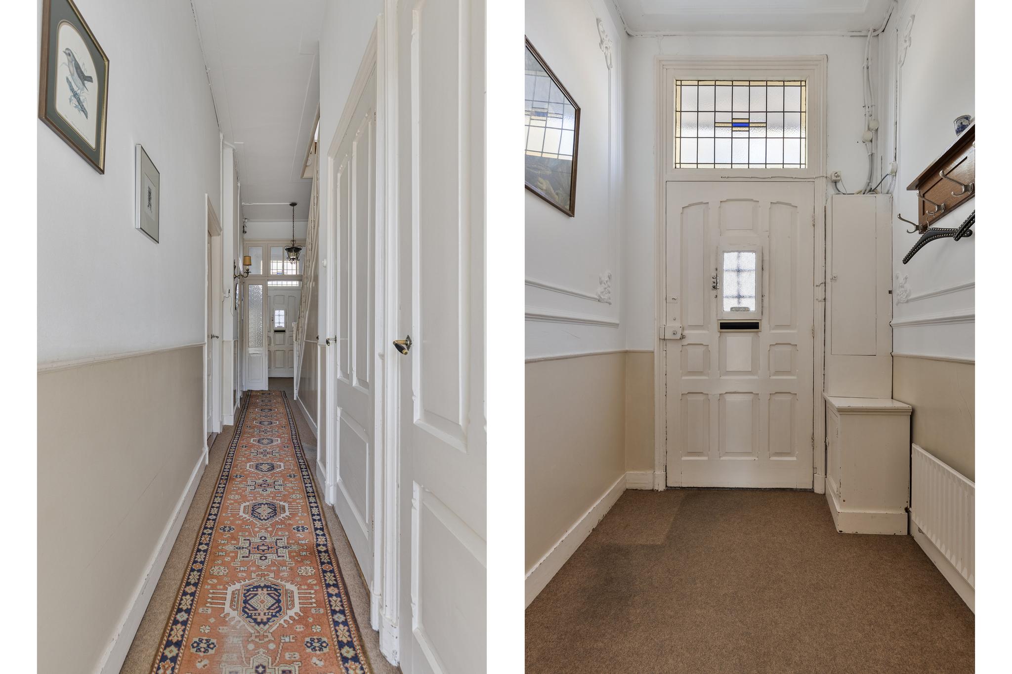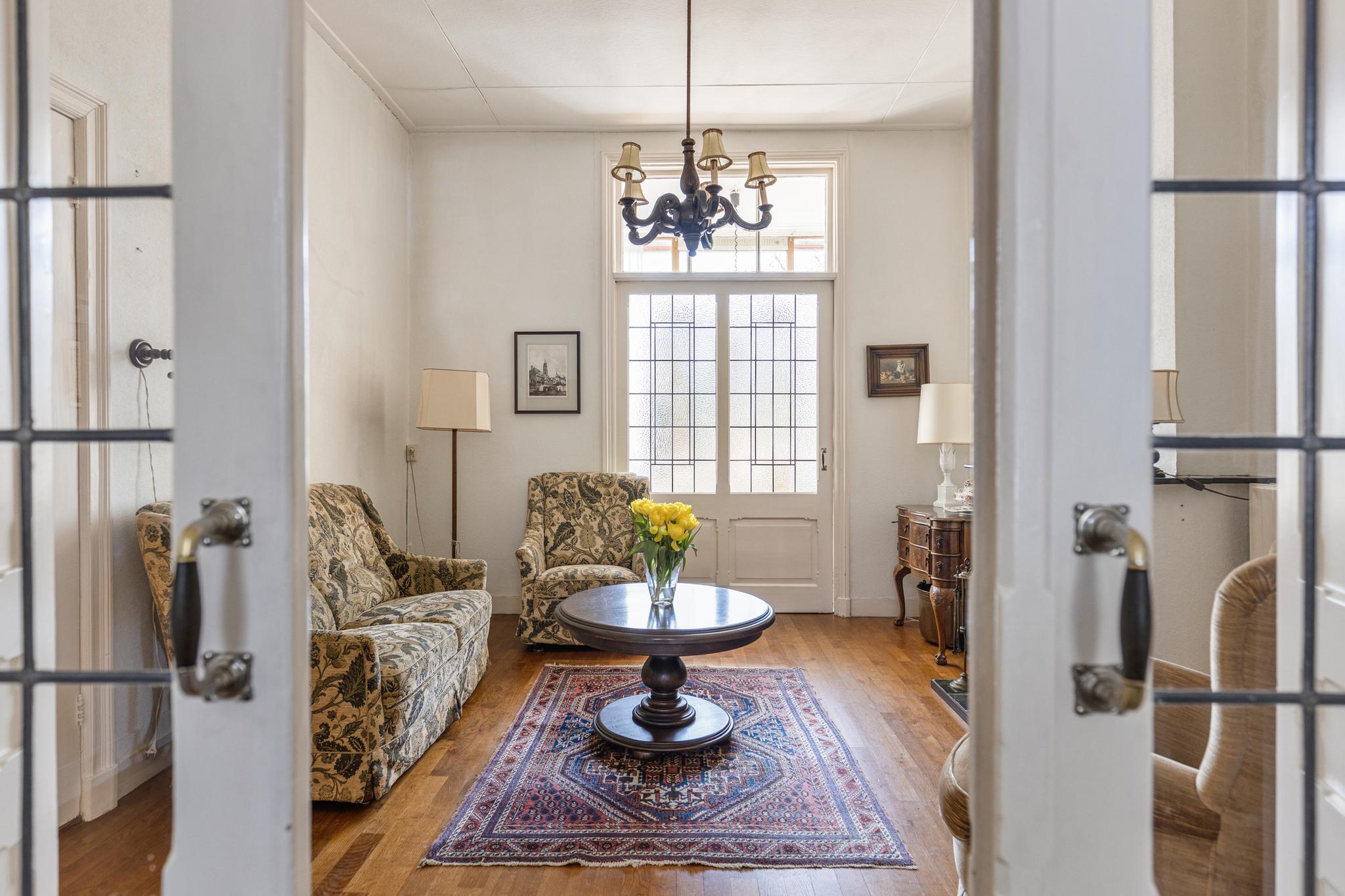 Bij binnenkomst proef je direct de historie van het huis: hoge plafonds, originele en-suite deuren, glas-in-lood en houten vloeren geven dit huis een unieke uitstraling. Bij binnenkomst treft u een royale entree welke is af te sluiten van de gang. Vanuit de gang heeft u toegang tot de eerste verdieping, kelder, douche/bergruimte, keuken en het woongedeelte. De voorkamer is gescheiden van de woonkamer door klassieke en-suite deuren, waardoor je eenvoudig een knusse zithoek kunt creëren. Aansluitend bevindt zich het eetgedeelte, dat indien gewenst afgesloten kan worden van het woongedeelte — ideaal voor een rustige maaltijd of een gezellige avond met vrienden.