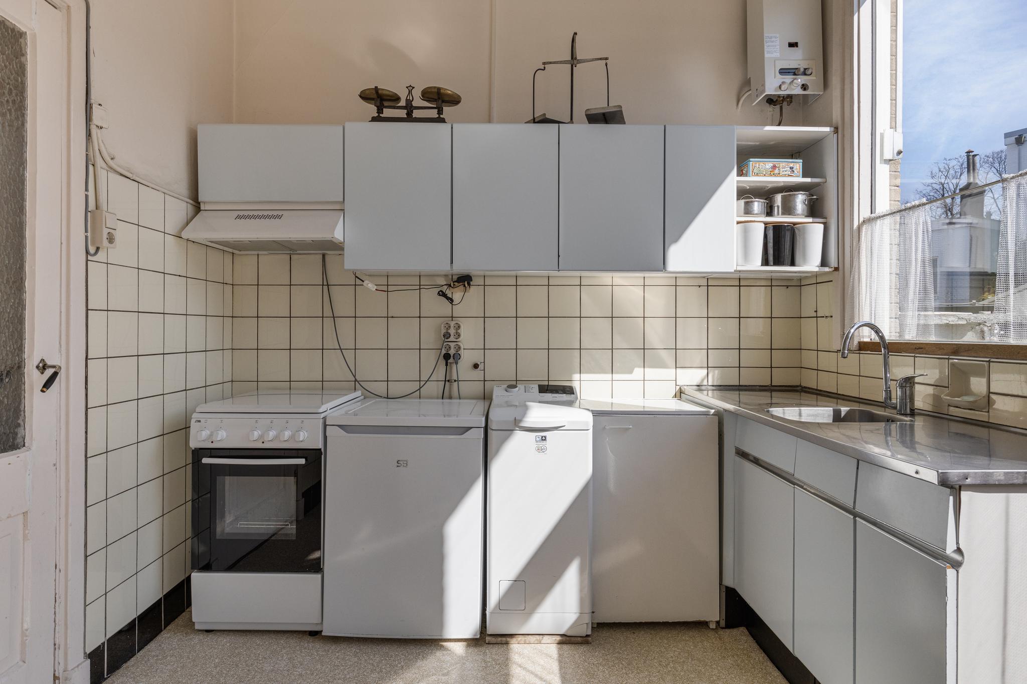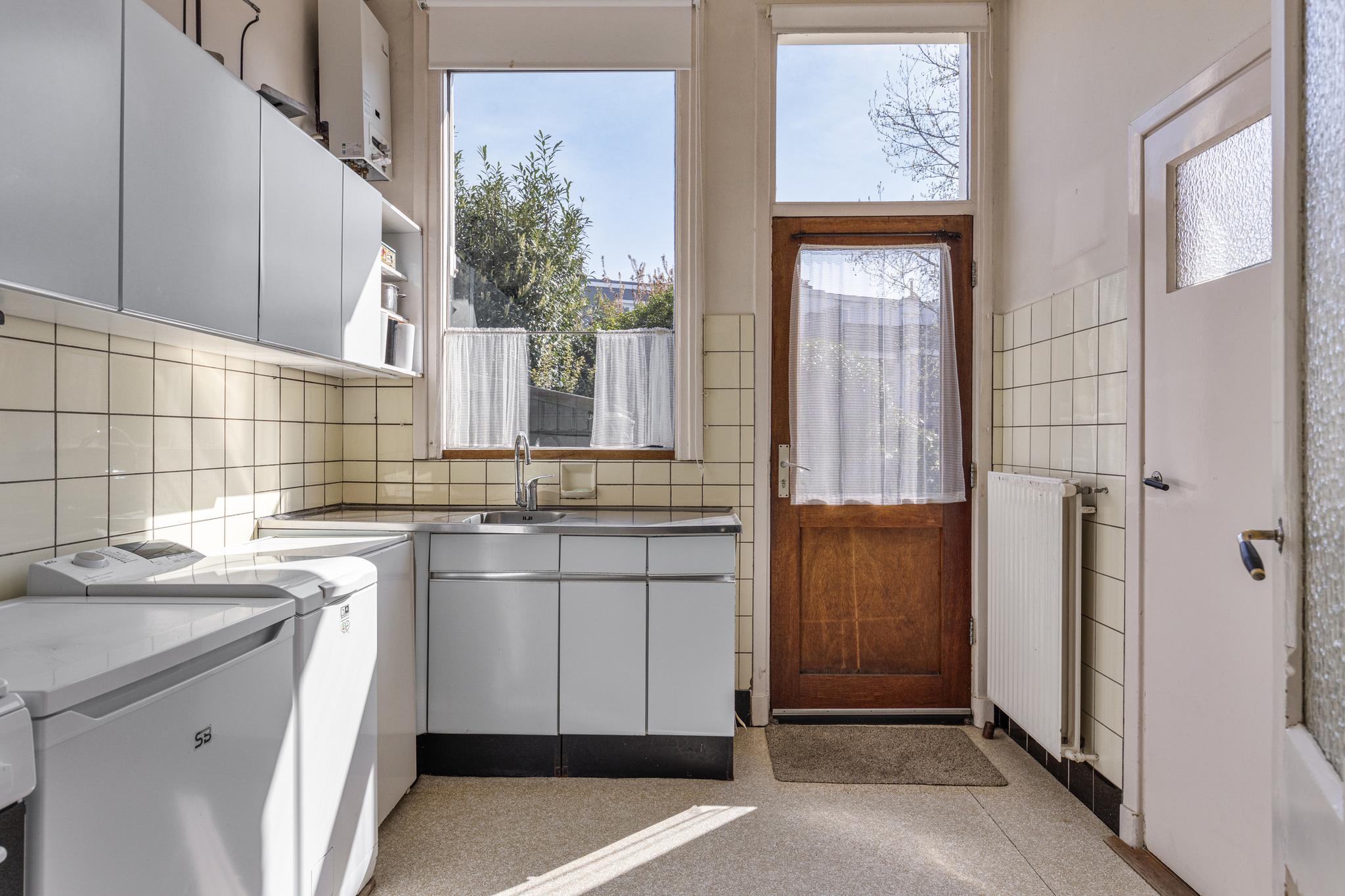 De dichte keuken is eenvoudig van opzet, en biedt directe toegang tot de heerlijke, zonnige achtertuin. De tuin is gelegen op het zuiden, waardoor je hier de hele dag kunt genieten van zonlicht. In de tuin bevindt zich een praktische berging én een handige zij-ingang naar de straat — perfect voor fietsen, tuinmateriaal of extra privacy.