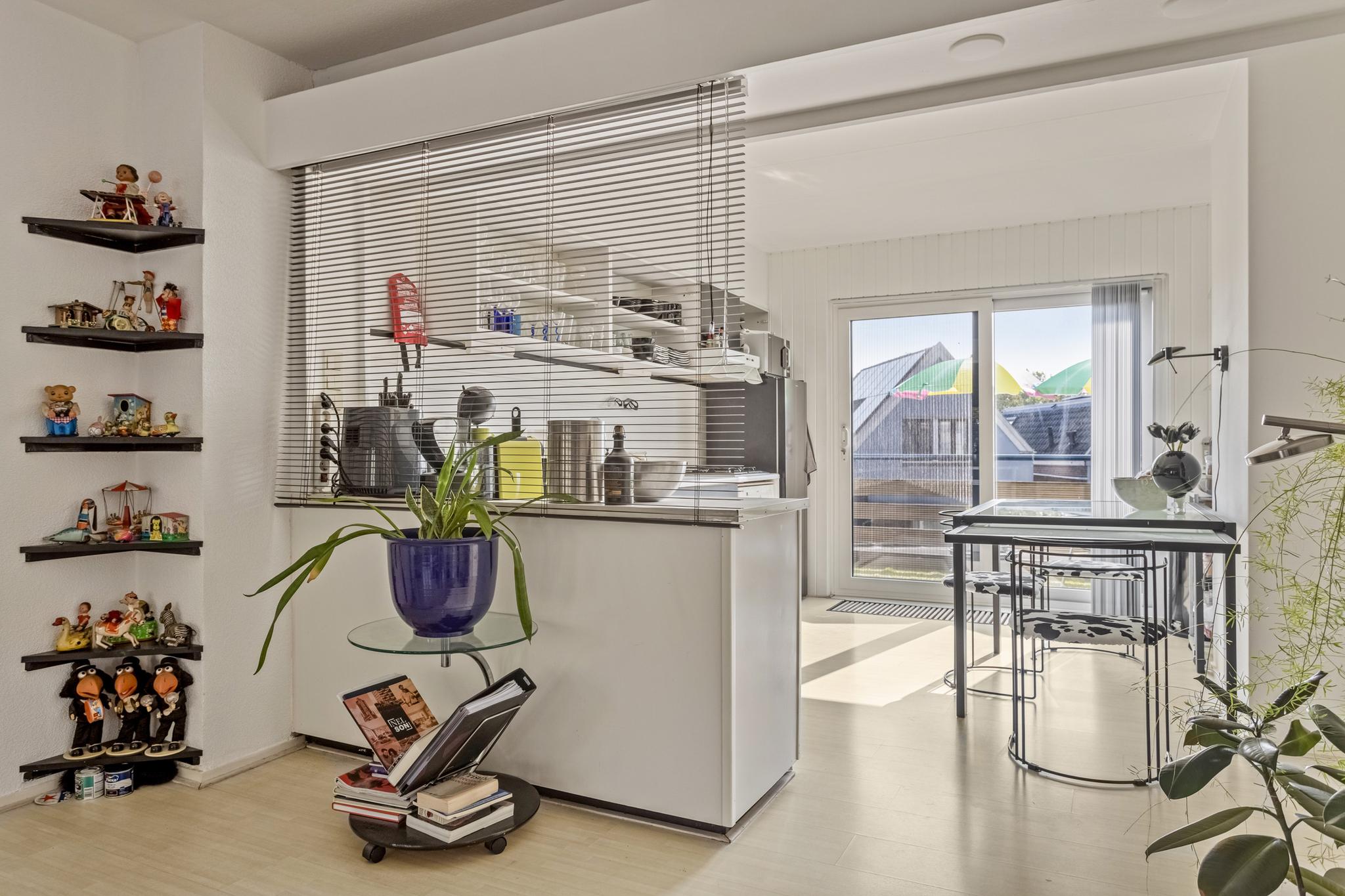 de keuken is de gelegen aan de achterzijde van de woning en heeft via een schuifpui toegang tot het zonnige balkon. Hier is het heerlijk toeven en geeft ook een prachtig uitzicht over de wijk.