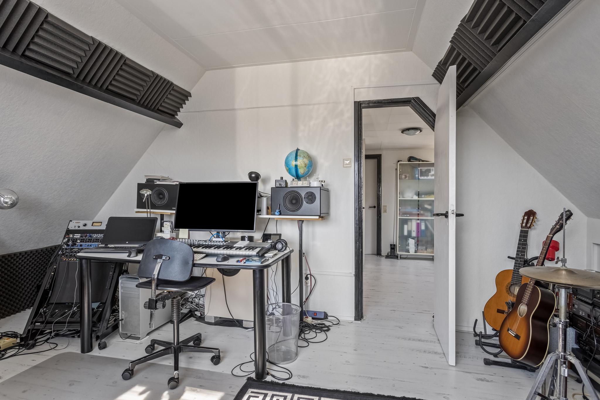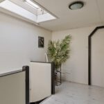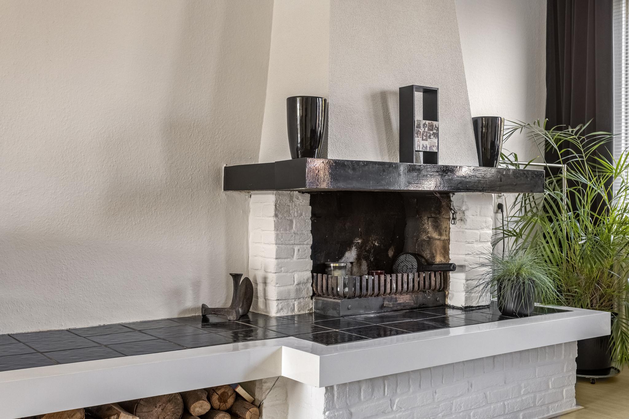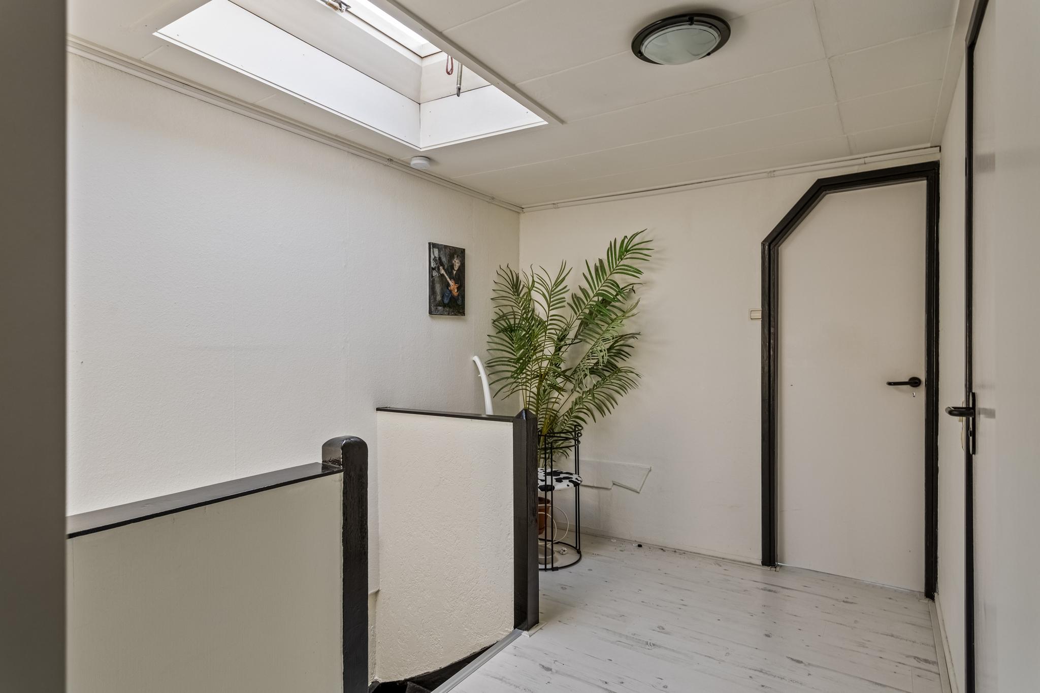 Overloop met toilet, een slaap/werkkamer, ruime lichte woonkamer met open haard en…