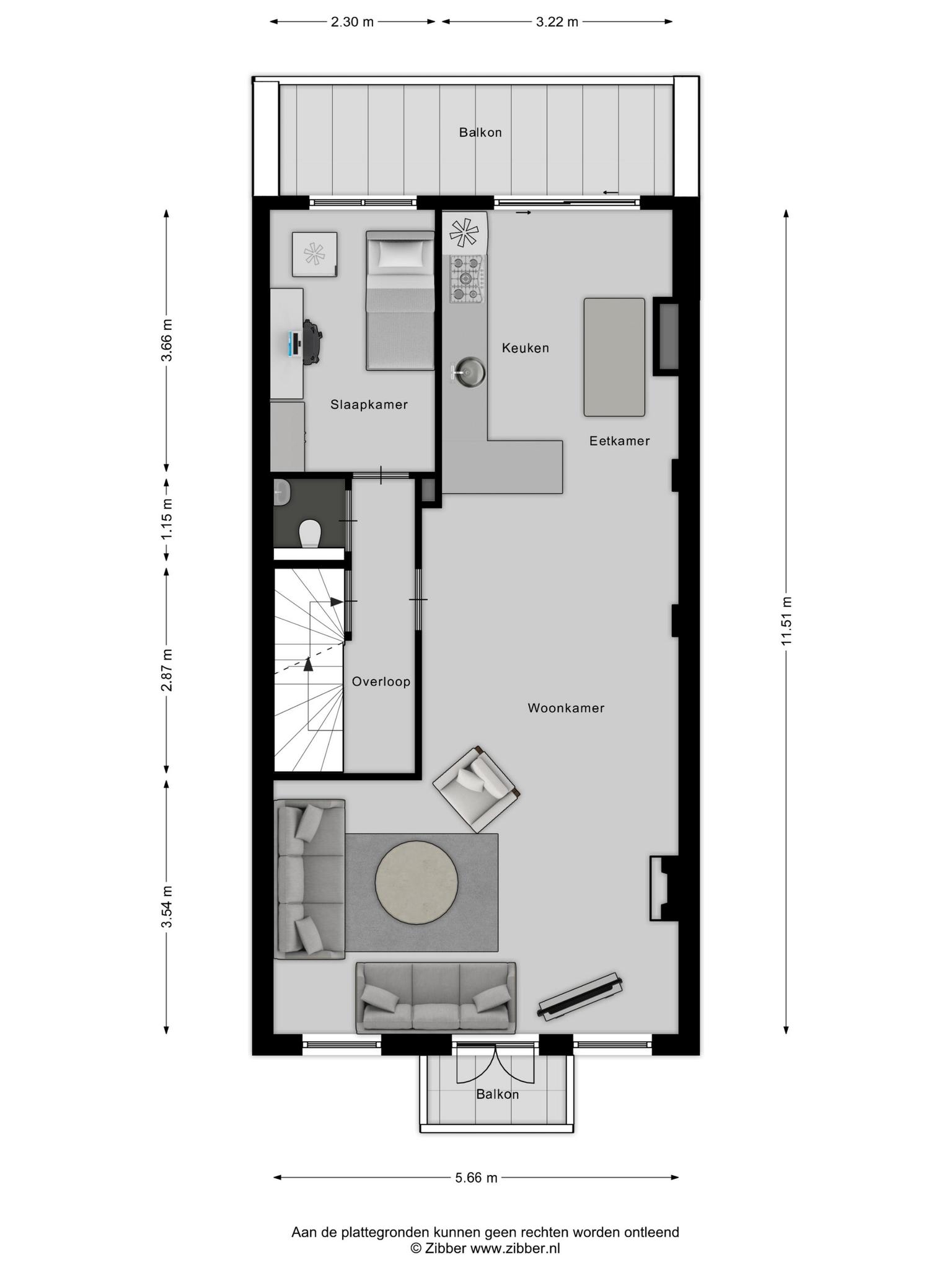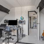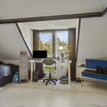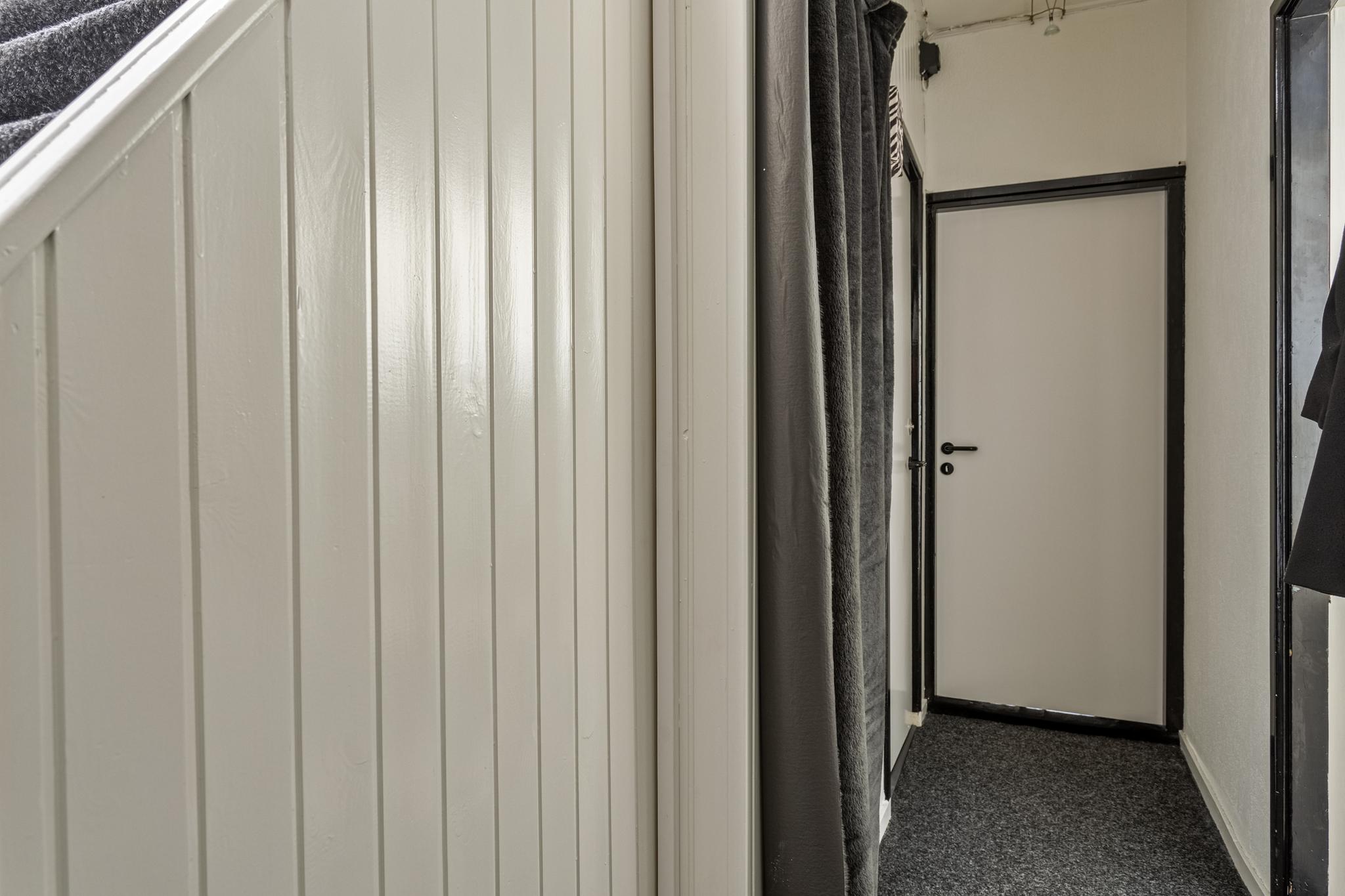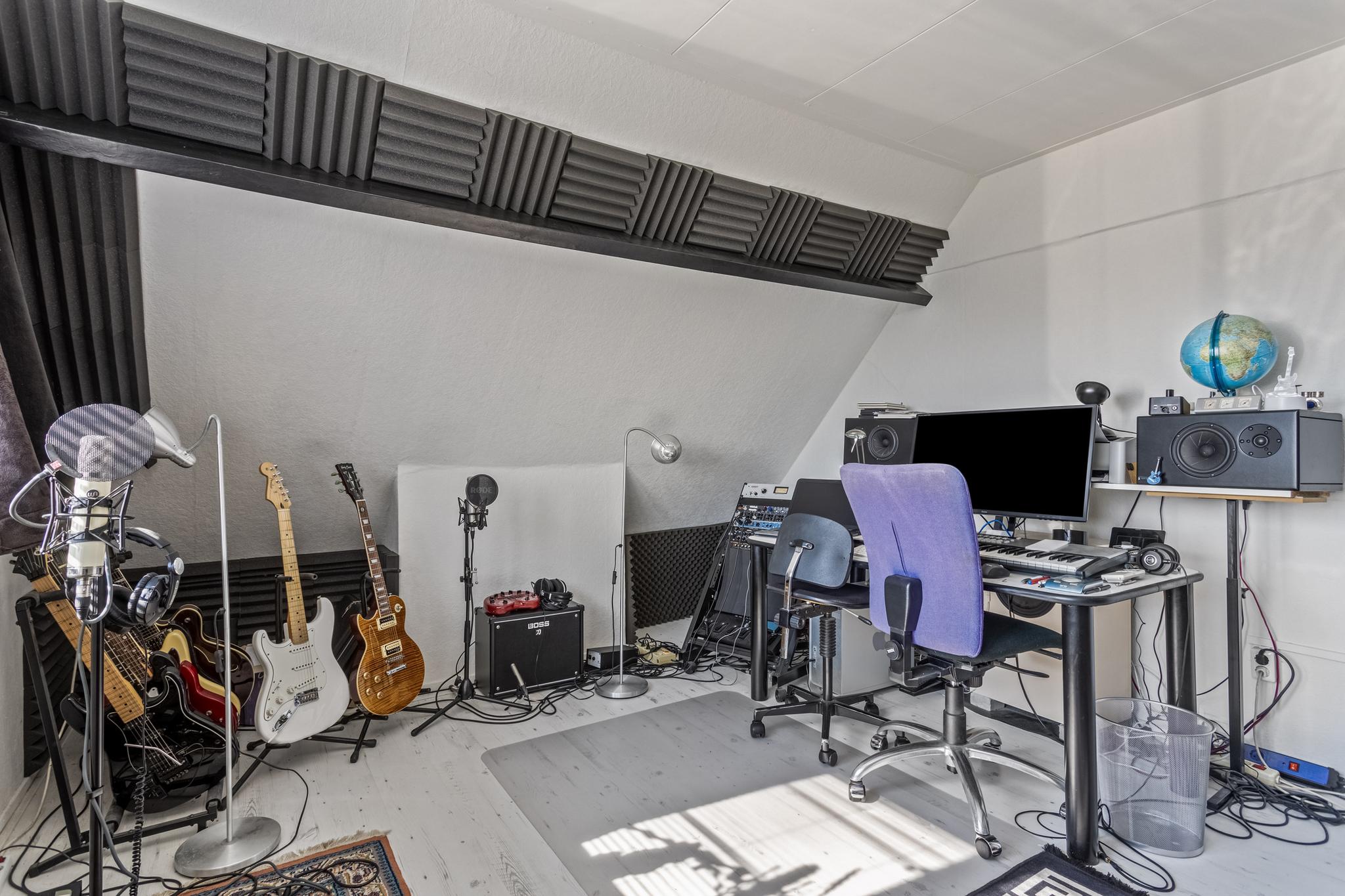 Overloop met toilet, een slaap/werkkamer, ruime lichte woonkamer met open haard en…