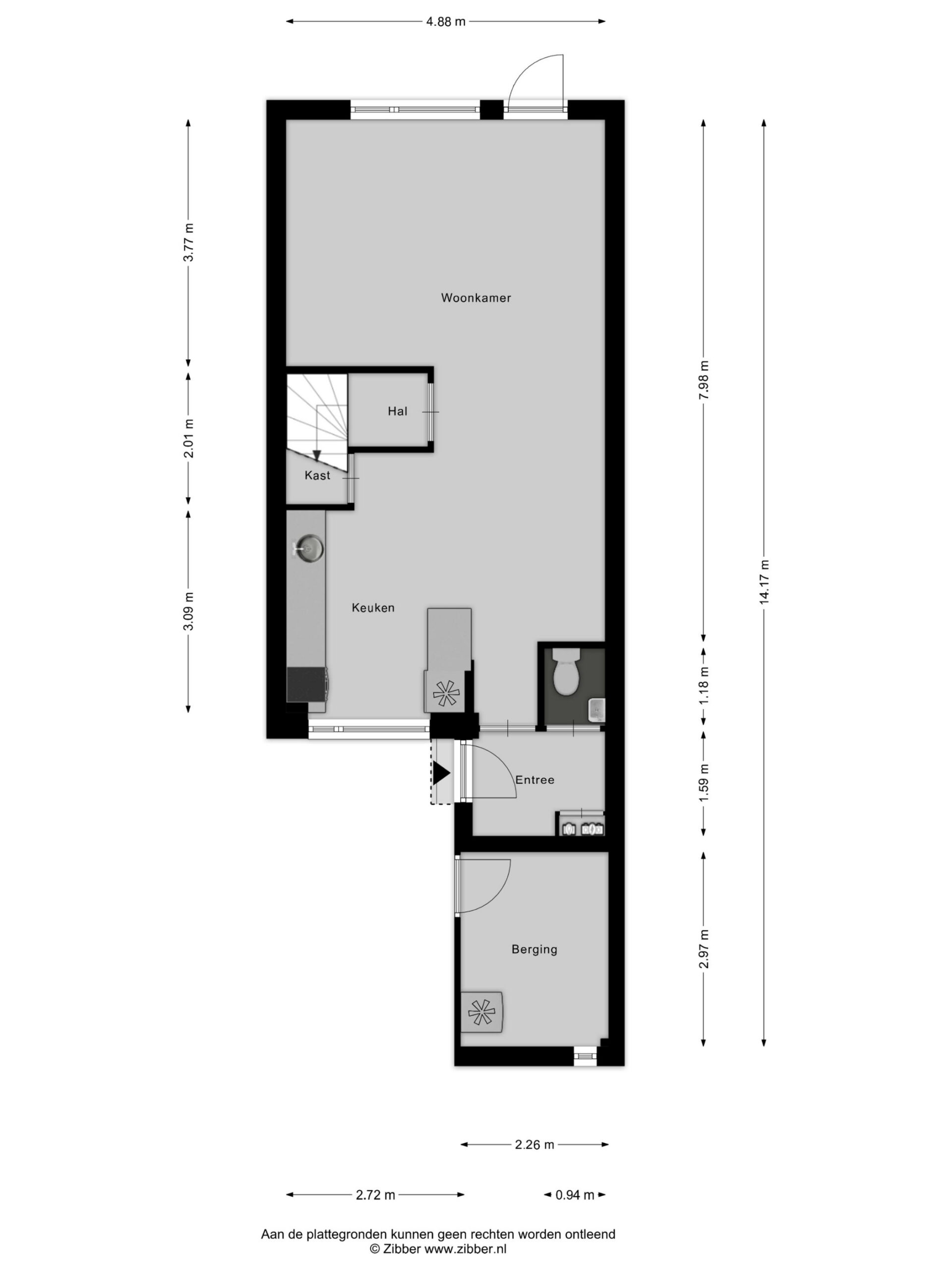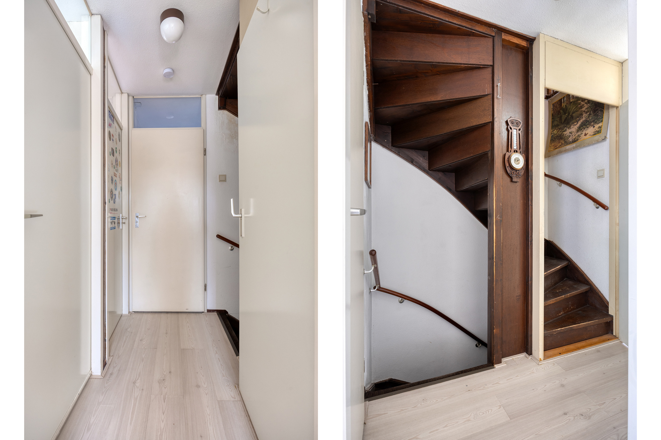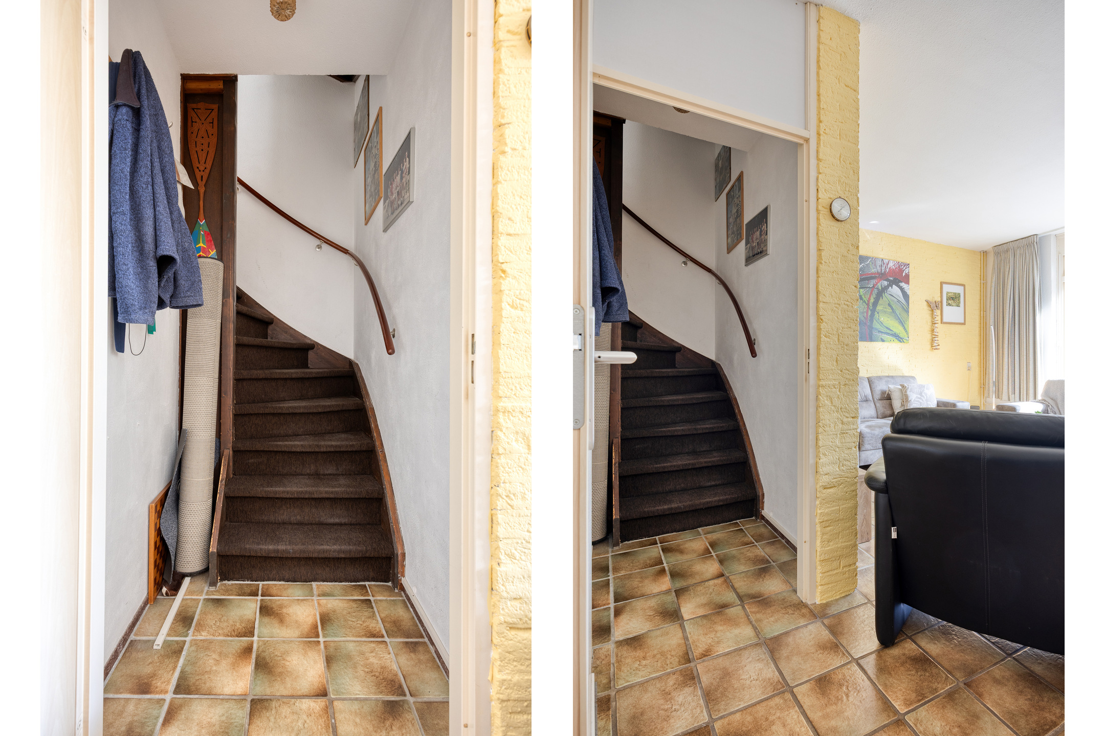 Via de voorzijde bereik je de woning, waar zich tevens een handige berging bevindt. Bij binnenkomst kom je in de hal met toilet. Vanuit hier loop je door naar de open keuken en de lichte woonkamer, een fijne leefruimte waar je eenvoudig jouw eigen stijl kunt realiseren. Centraal in de woning bevindt zich de trapopgang naar de eerste verdieping.