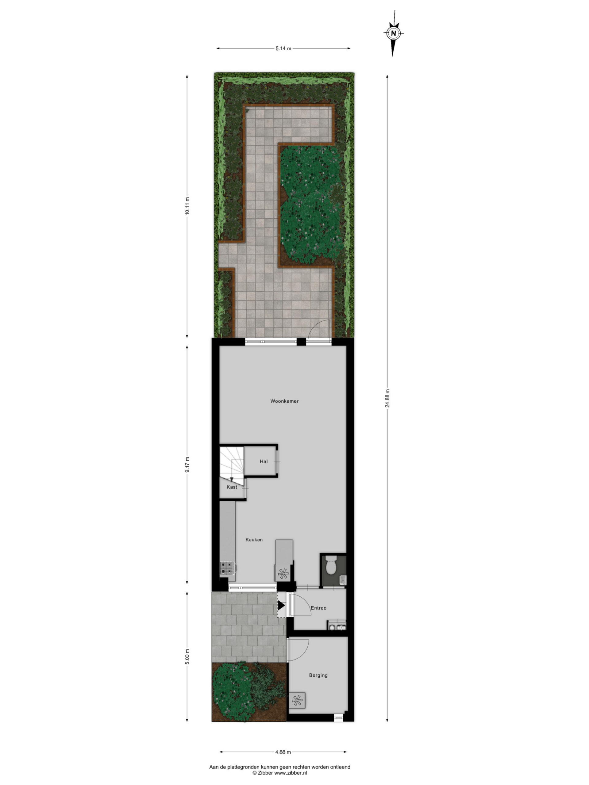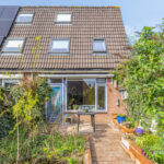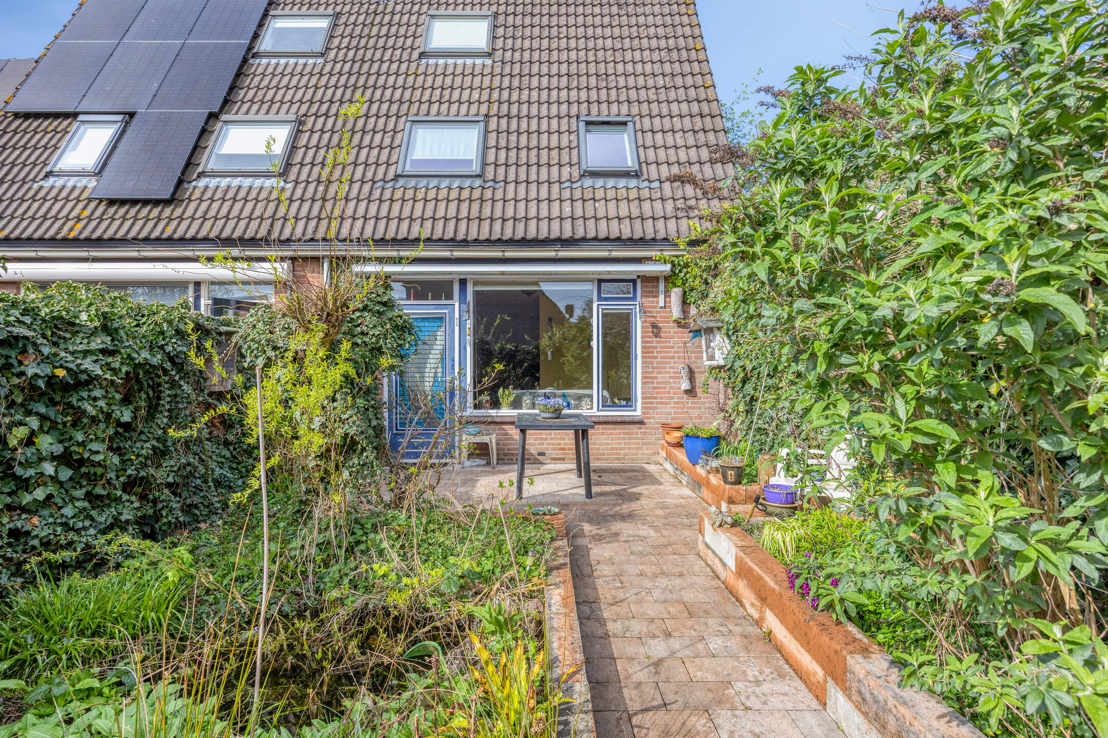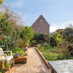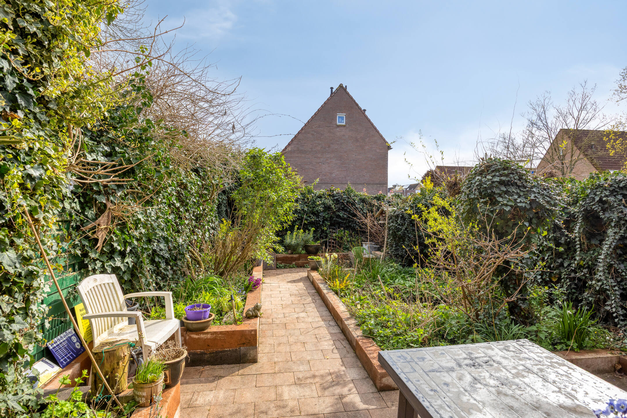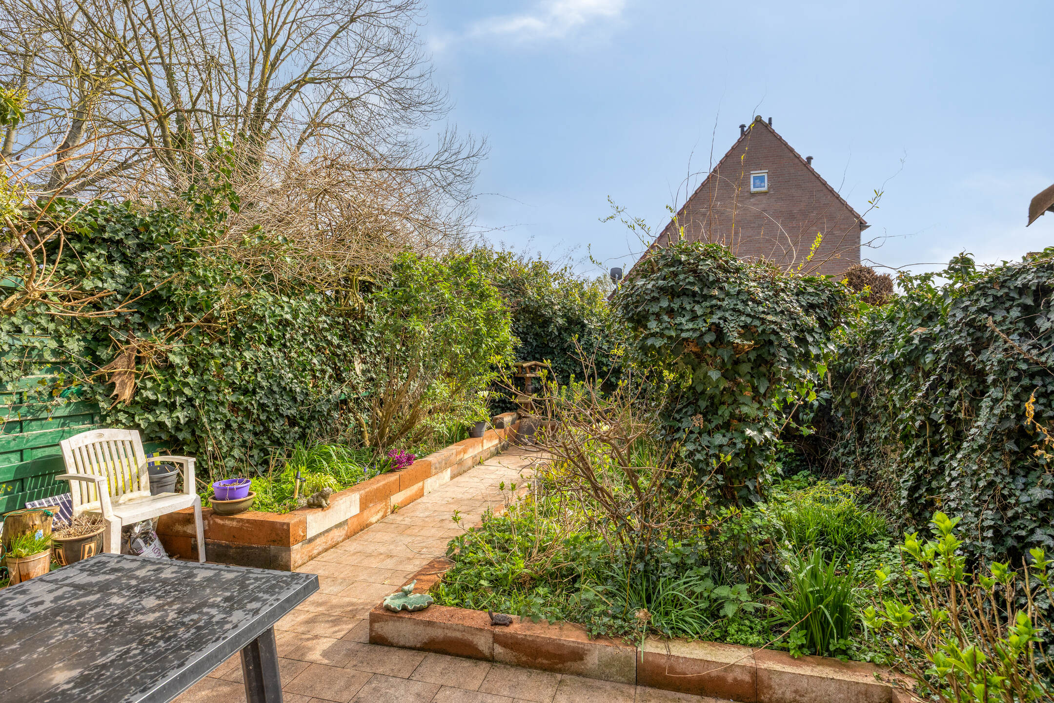 De tuin bevindt zich op het zuiden en biedt ruimte voor een terras en voldoende groen.