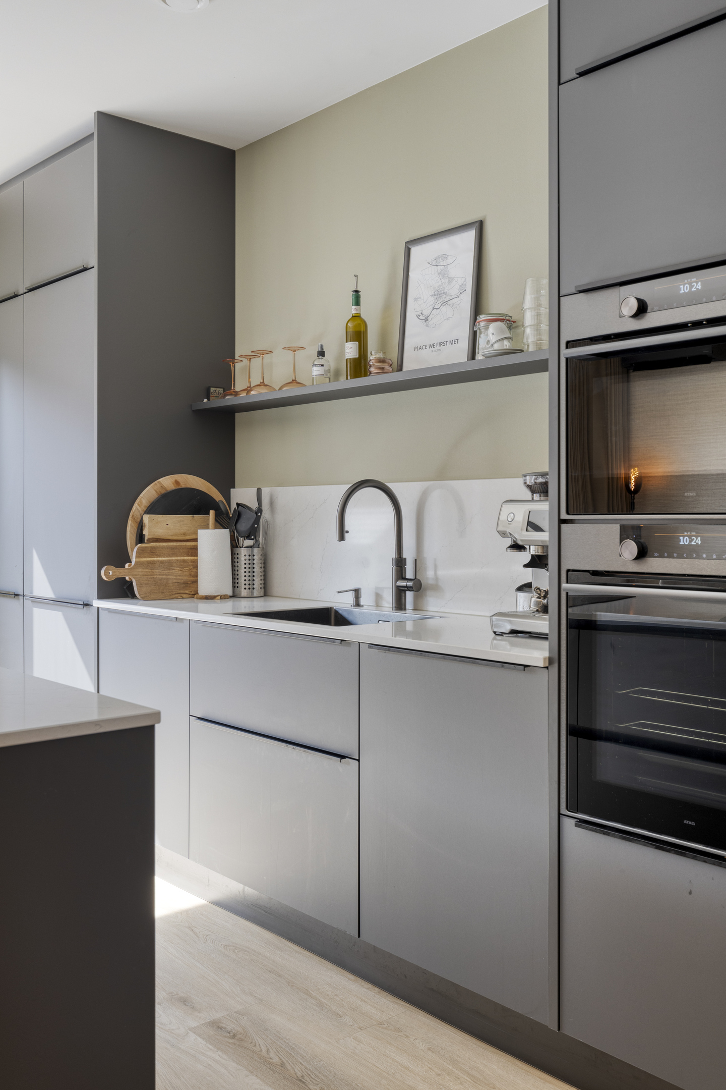 Licht, ruim, luxe en voorzien van alle woongemakken, dat zijn de woorden die deze tussenwoning typeren. De 157m2 zijn zeer praktisch ingedeeld, waardoor alle ruimtes groot zijn en een goede lichtinval hebben. Je komt het huis binnen in de hal met wc, meterkast (met waterontharder) en de trap naar boven met daaronder een diepe bergkast (bereikbaar vanuit de woonkamer). Vanuit de hal is er toegang naar de woonkamer. De woonkamer is samen met de open keuken ruim 10 meter lang, de volledige diepte van de woning.  De geweldige open keuken met eiland beschikt over alle luxe voorzieningen, waaronder: inductiekookplaat met afzuiging, wijn koelkast, quooker, dubbele combi oven, grote koelkast, grote vriezer en vaatwasser.