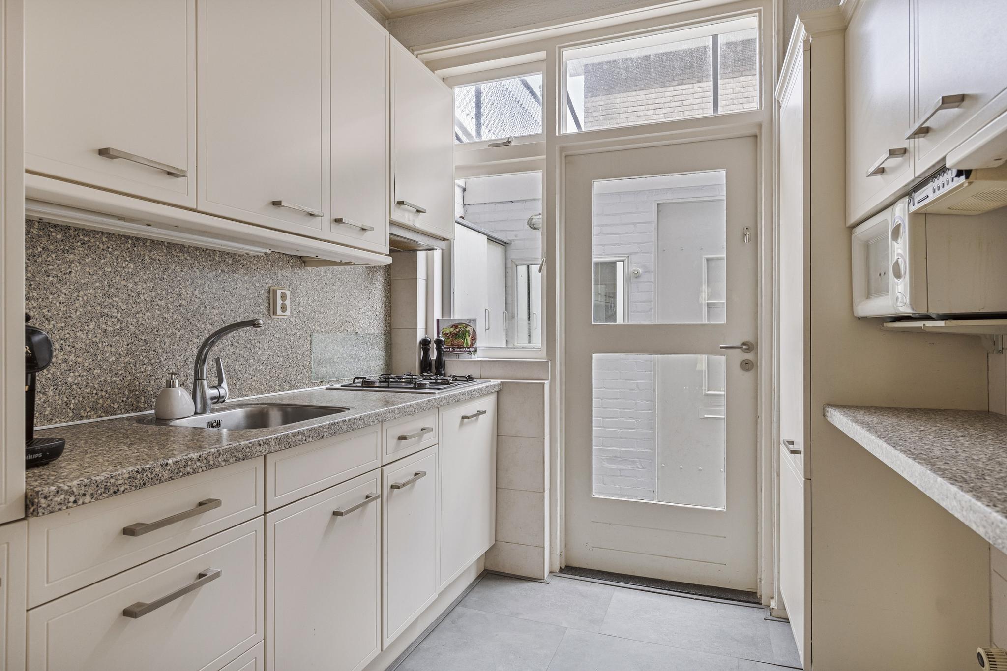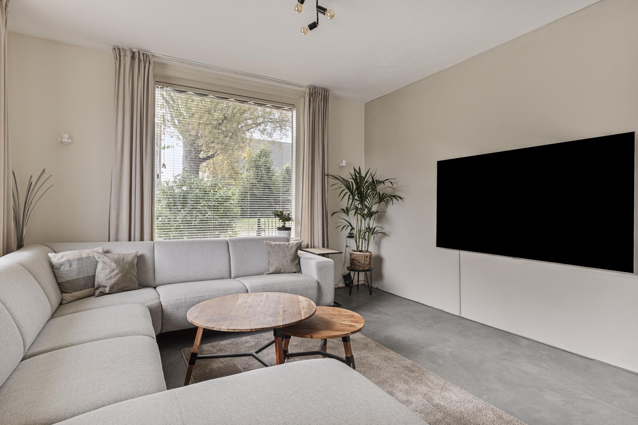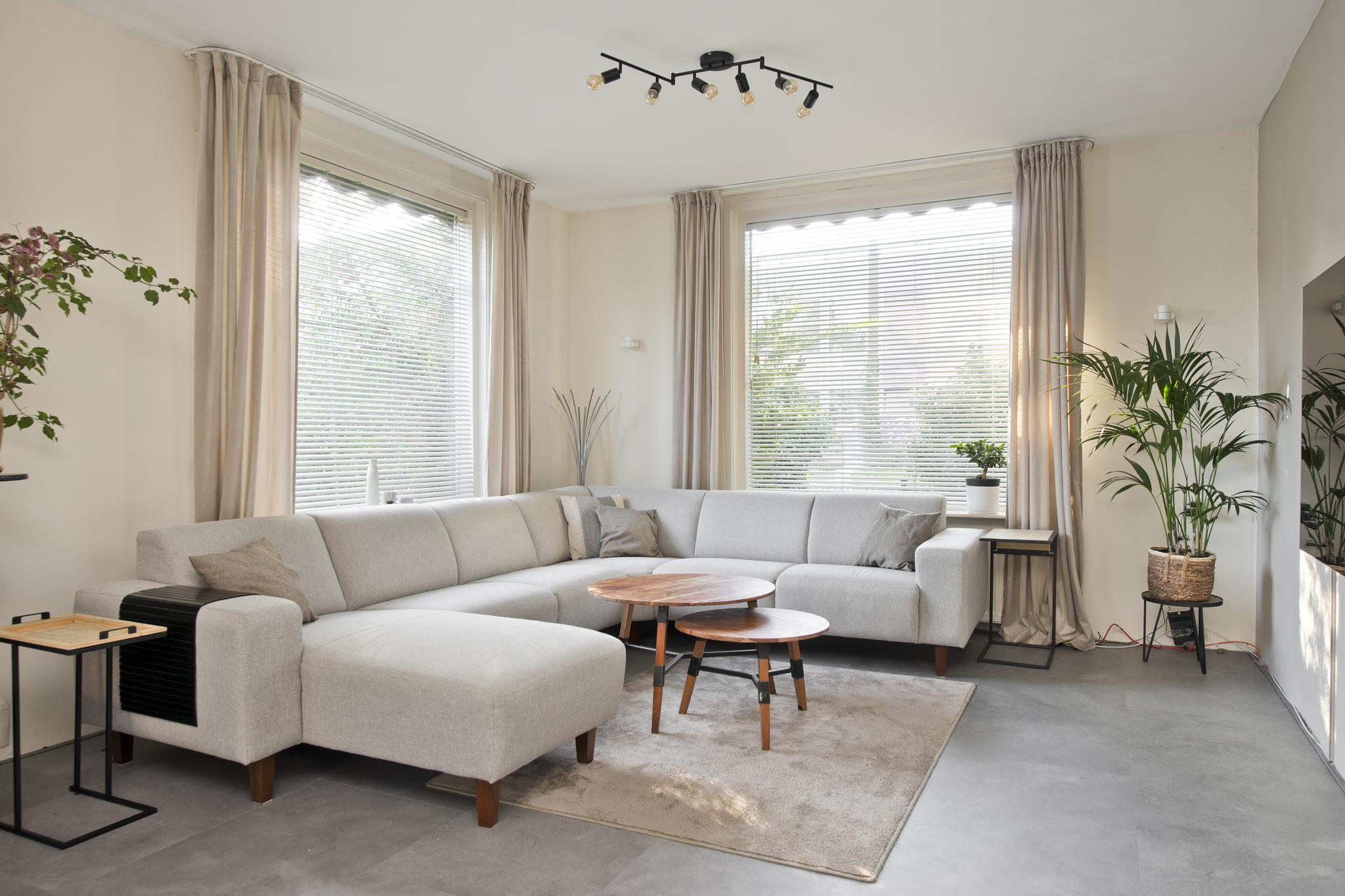 Entree, hal, meterkast, trapopgang, provisieruimte, toegang keuken en woonkamer. Dichte keuken, met 4 pits-gaskookplaat, afzuigkap, koelkast en veel kastruimte, woonkamer met veel lichtinval, openslaande deuren naar de tuin, gezellige gashaard en royale zithoek.