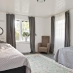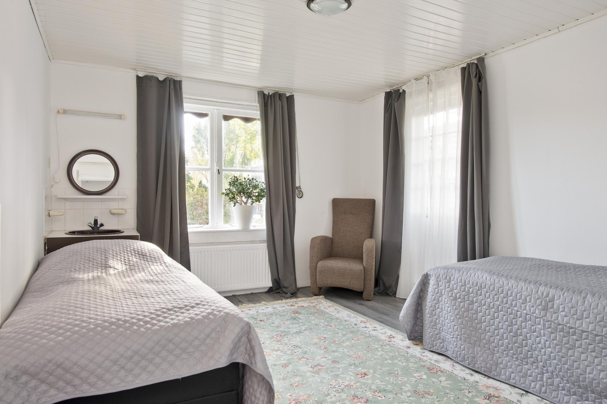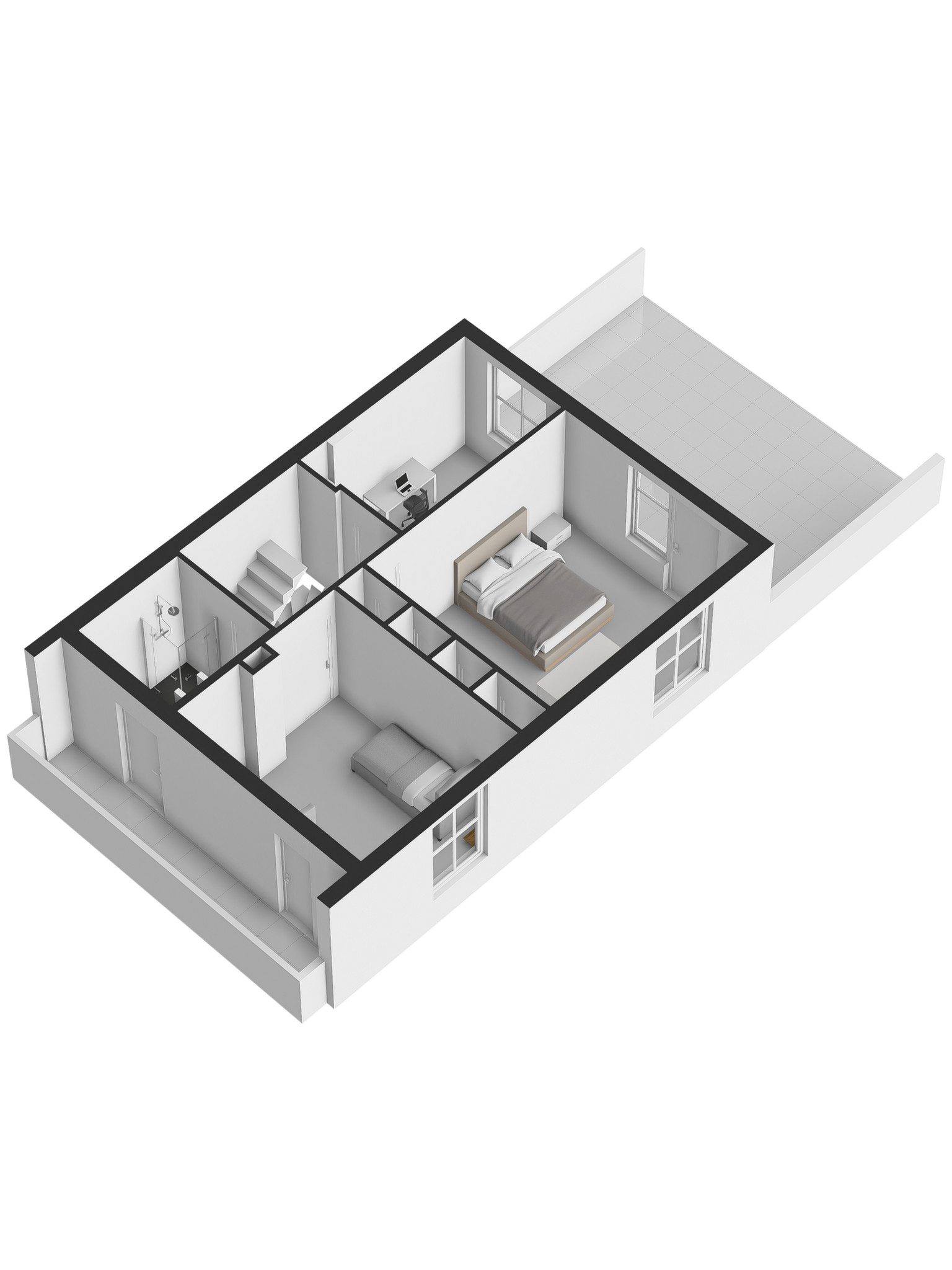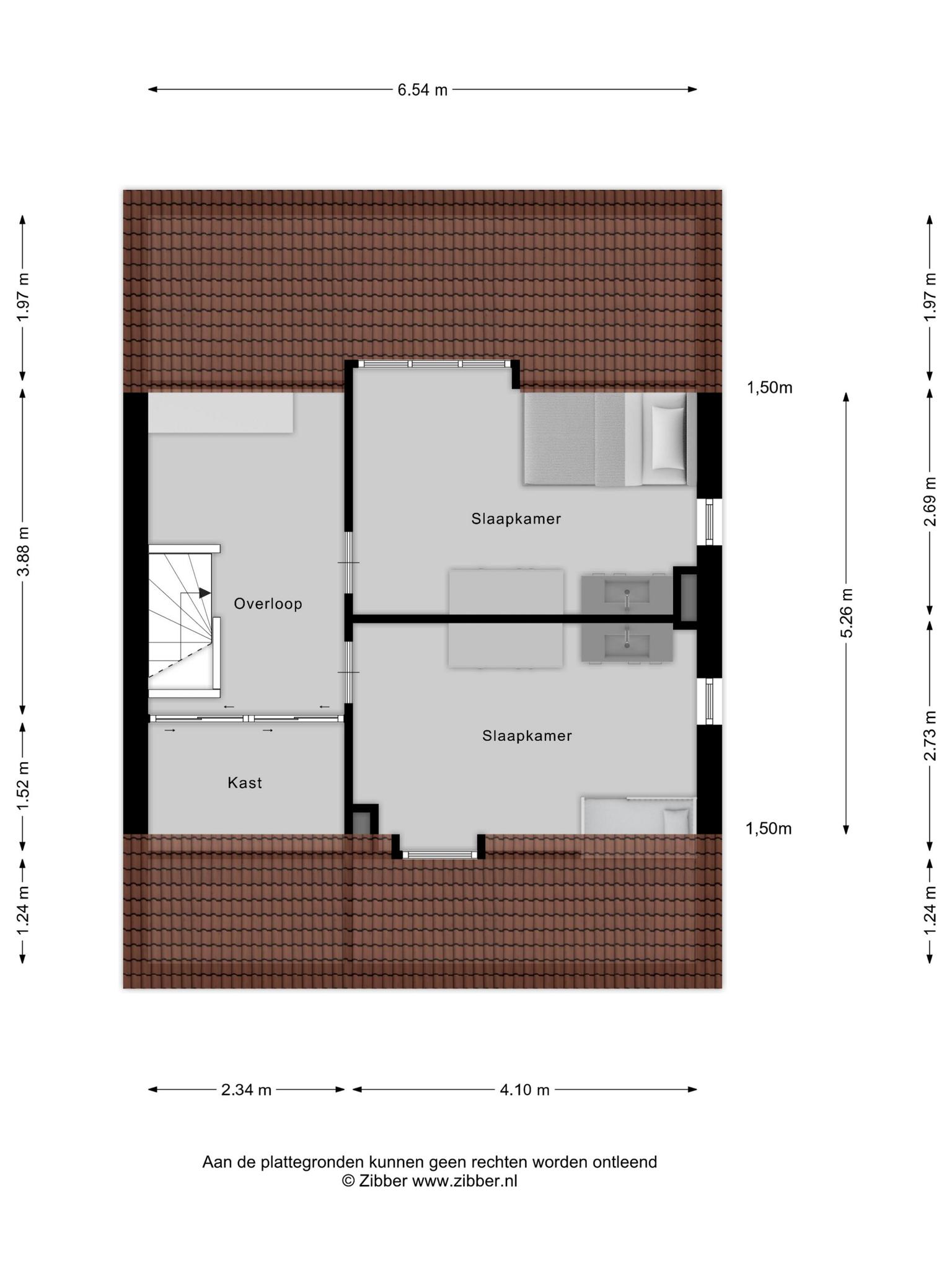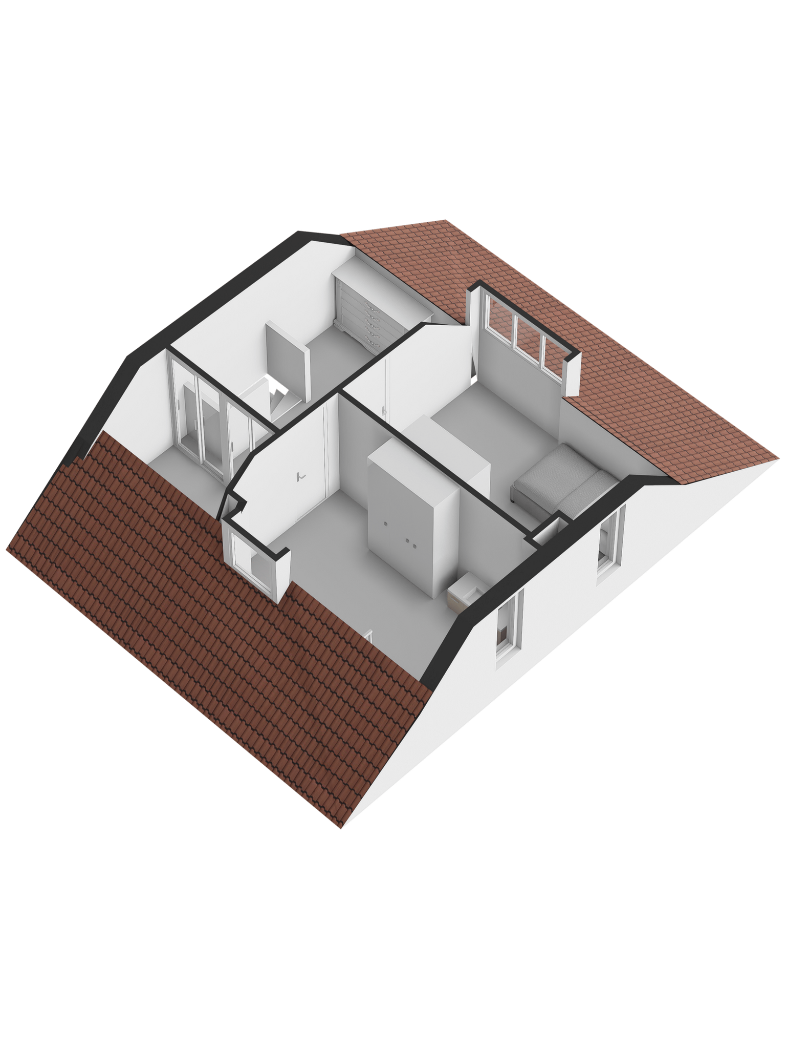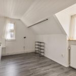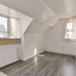 2e verdieping: overloop, 2 slaapkamers, ook met eigen wastafel, grote vaste kastenwand, en veel praktische bergruimte achter de knieschotten, en praktische vliering.