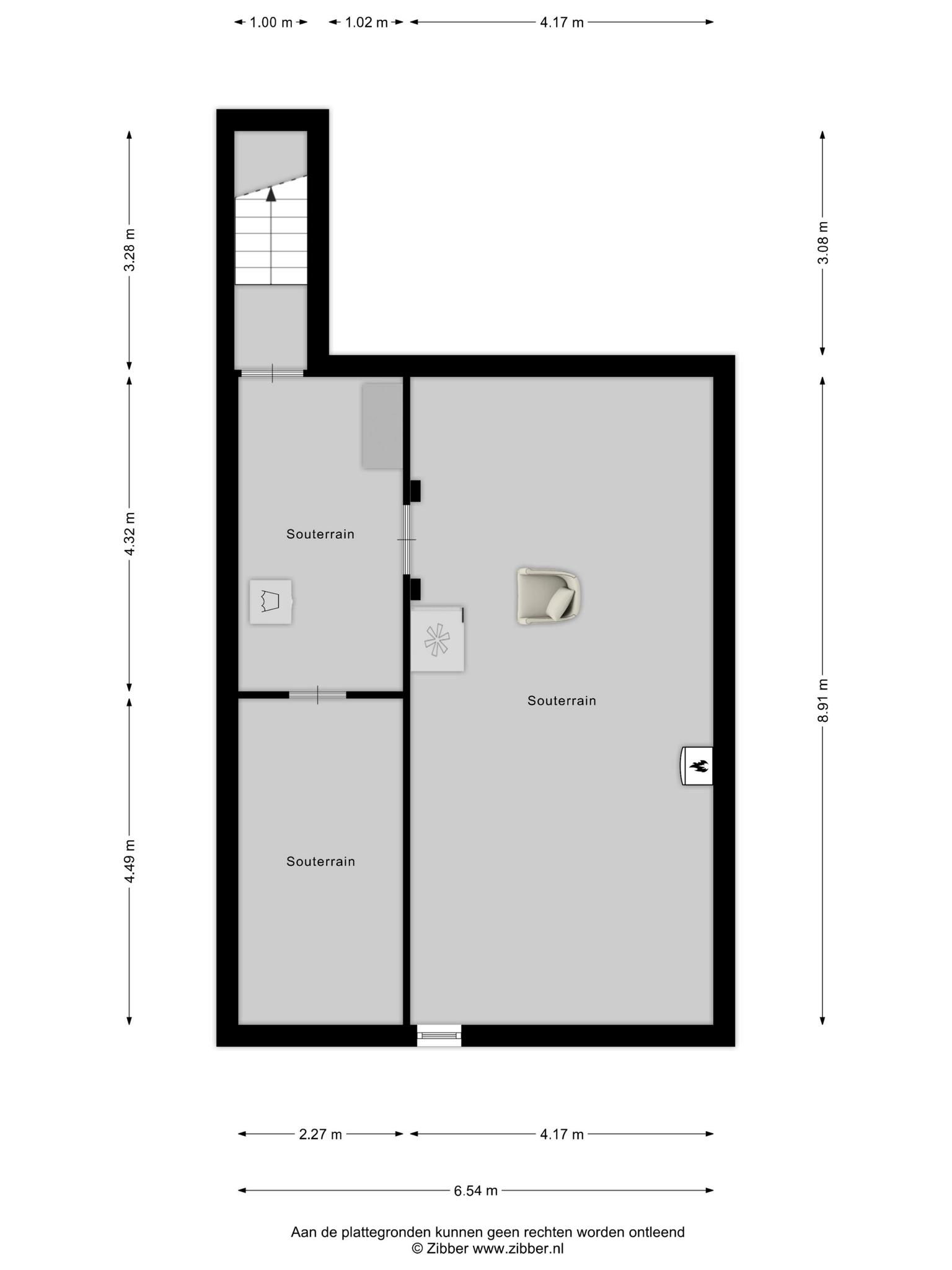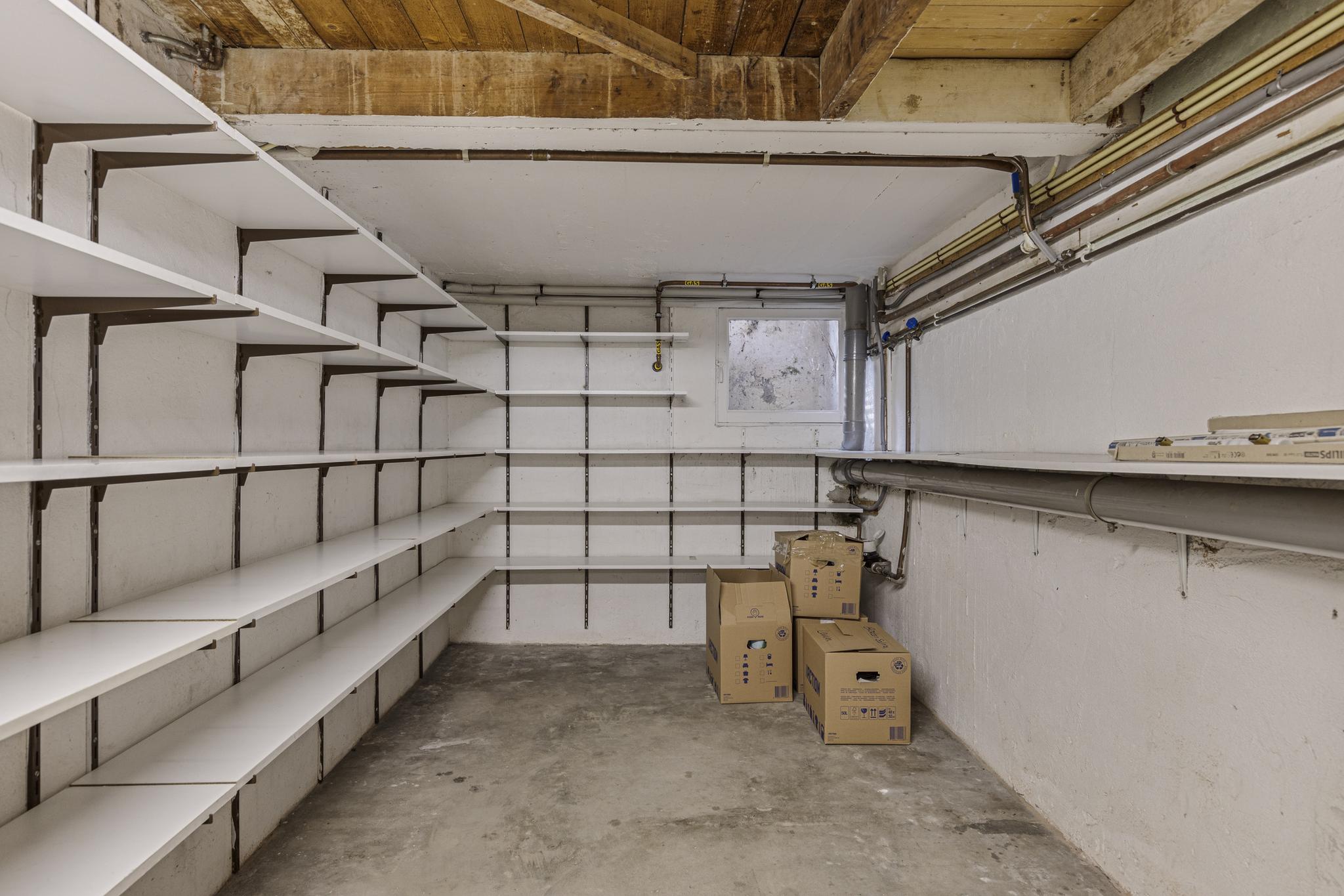 Souterrain; ruim souterrain met een stahoogte van 2m, bereikbaar vanuit de garage, er is ruimte voor een wasmachine en droger, ideaal ook als speelruimte, hobby ruimte of atelier.
