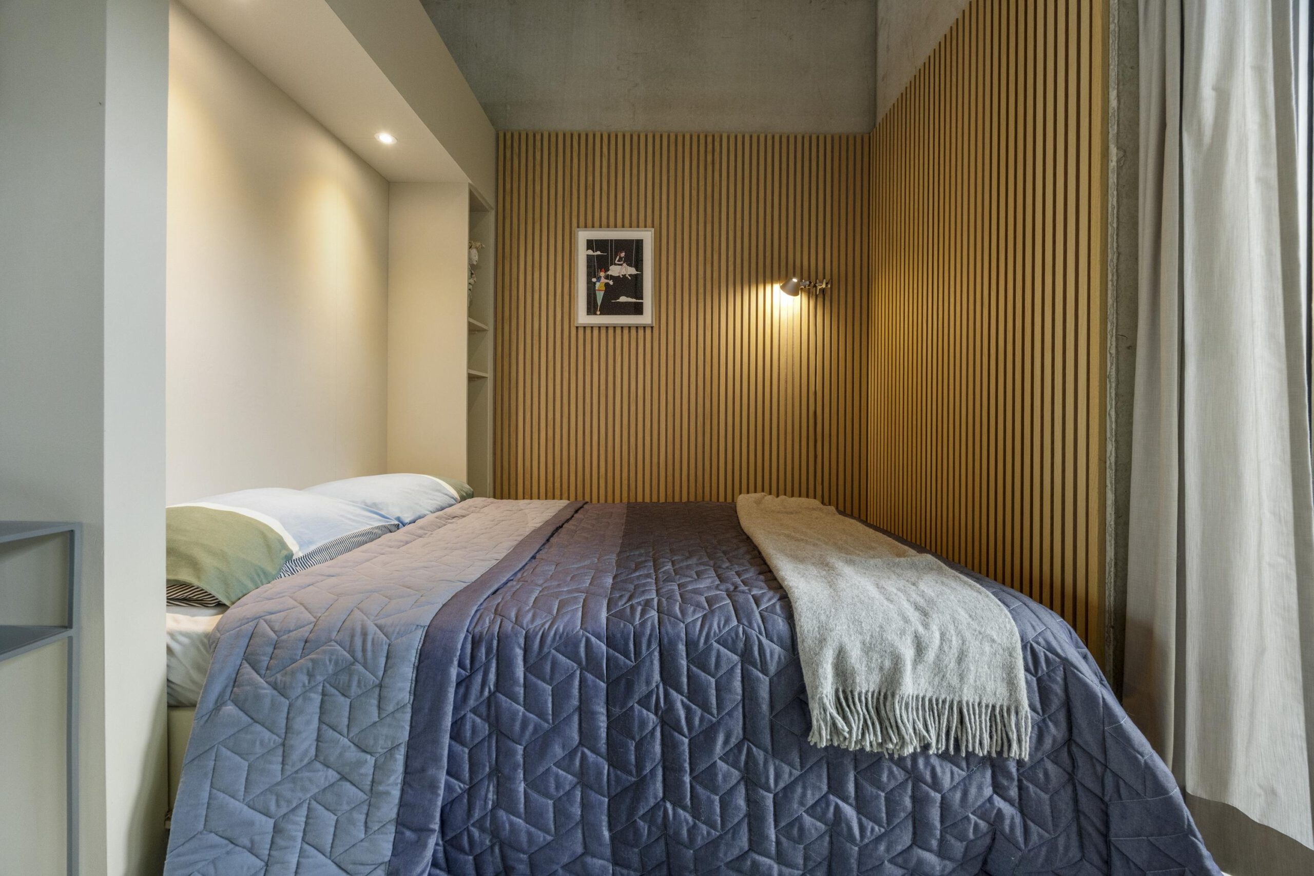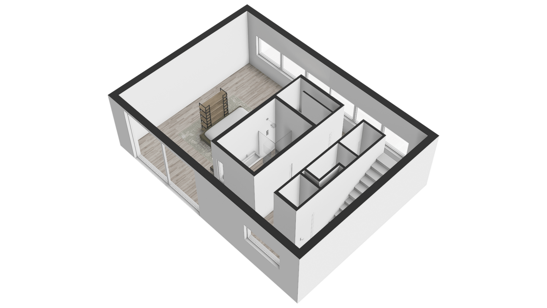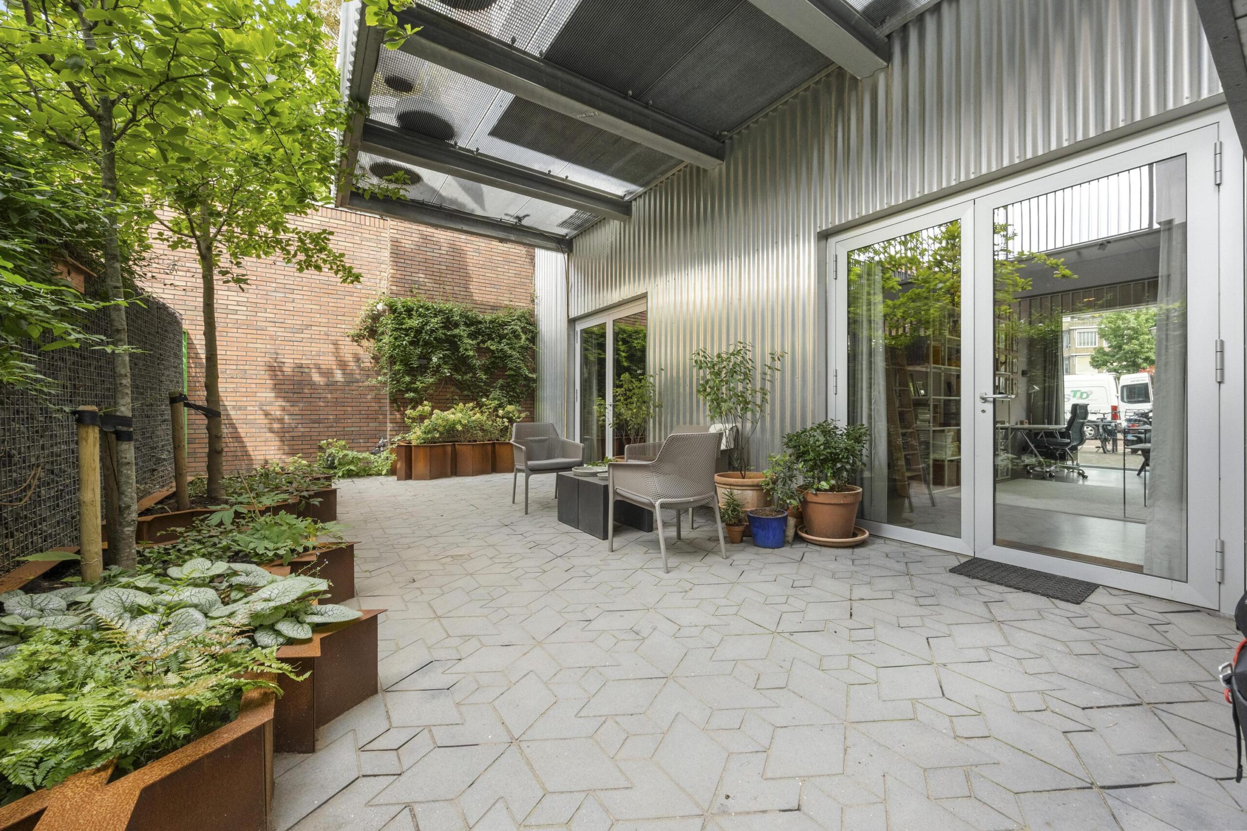 Bedrijfsruimte met plafondhoogte van ruim 3 meter. In deze open ruimte is een meubel geplaatst met badkamer met toilet en moderne pantry. Slapen kan op hoogte of in het ruime opklapbed. De eerste bewoners gebruikten de ruimte als B&B. Het heeft een eigen ingang en toegang tot de tuin aan de achterzijde.
