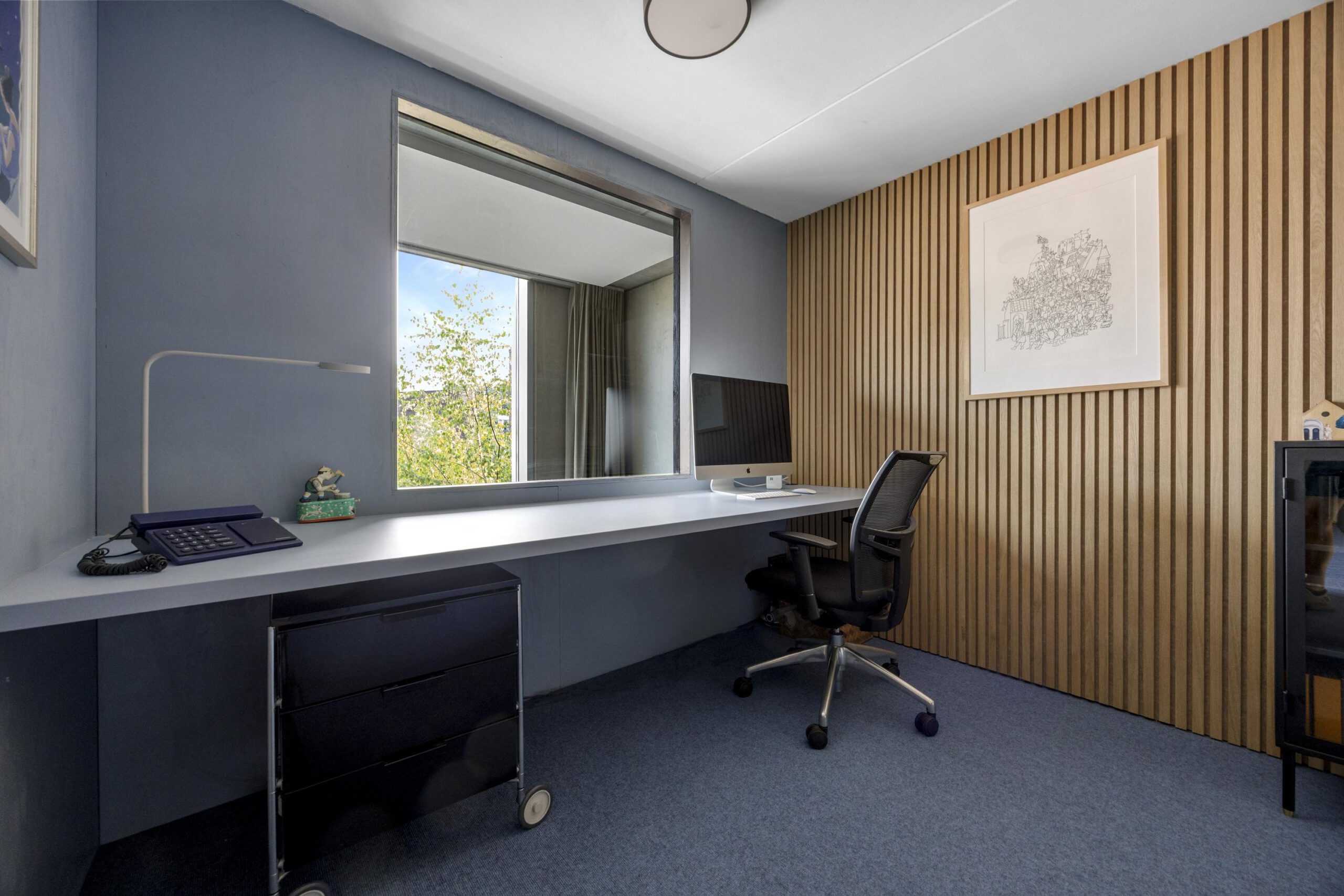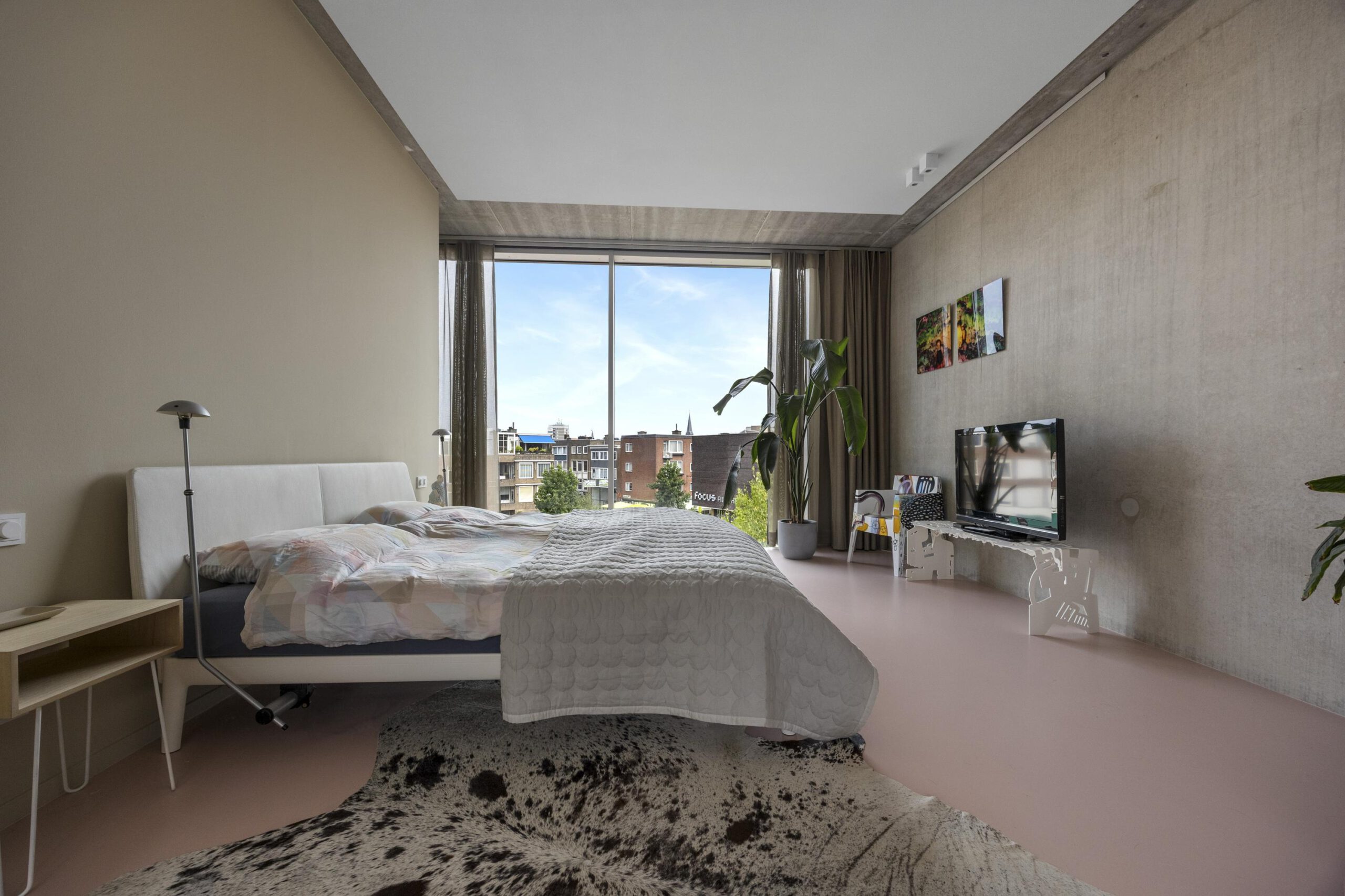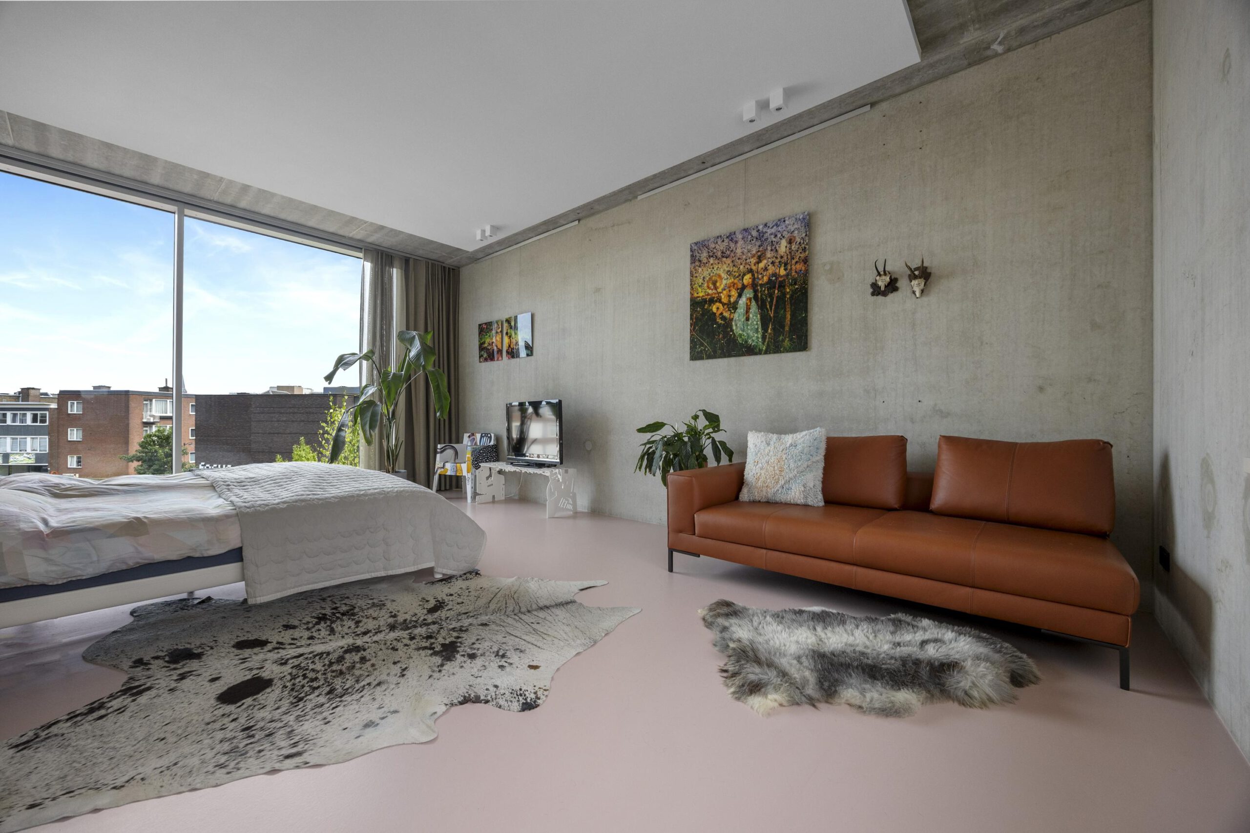 Deze verdieping is helemaal ingericht als slaapverdieping. Hier een plafondhoogte van meer dan 3 meter. De verdieping kan eenvoudig aangepast worden aan andere woonwensen. Ook hier bieden de grote raampartijen fenomenaal uitzicht op de stad. In 2024 is de badkamer vernieuwd en zijn akoestische plafonds geplaatst. De verdieping heeft een inloopkast met verlichting en vaste kasten voor wasmachine en droger. Separaat toilet. Toegang naar het dakterras via een breed elektrisch dakluik. Open je het luik naar het dakterras, dan ontstaat er een natuurlijke luchtstroom die het hele huis verfrist.