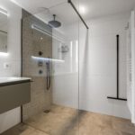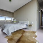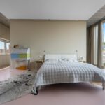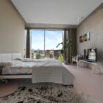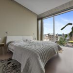 Luxe slaapkamer met inloopkast, grote raampartijen en vernieuwde badkamer.