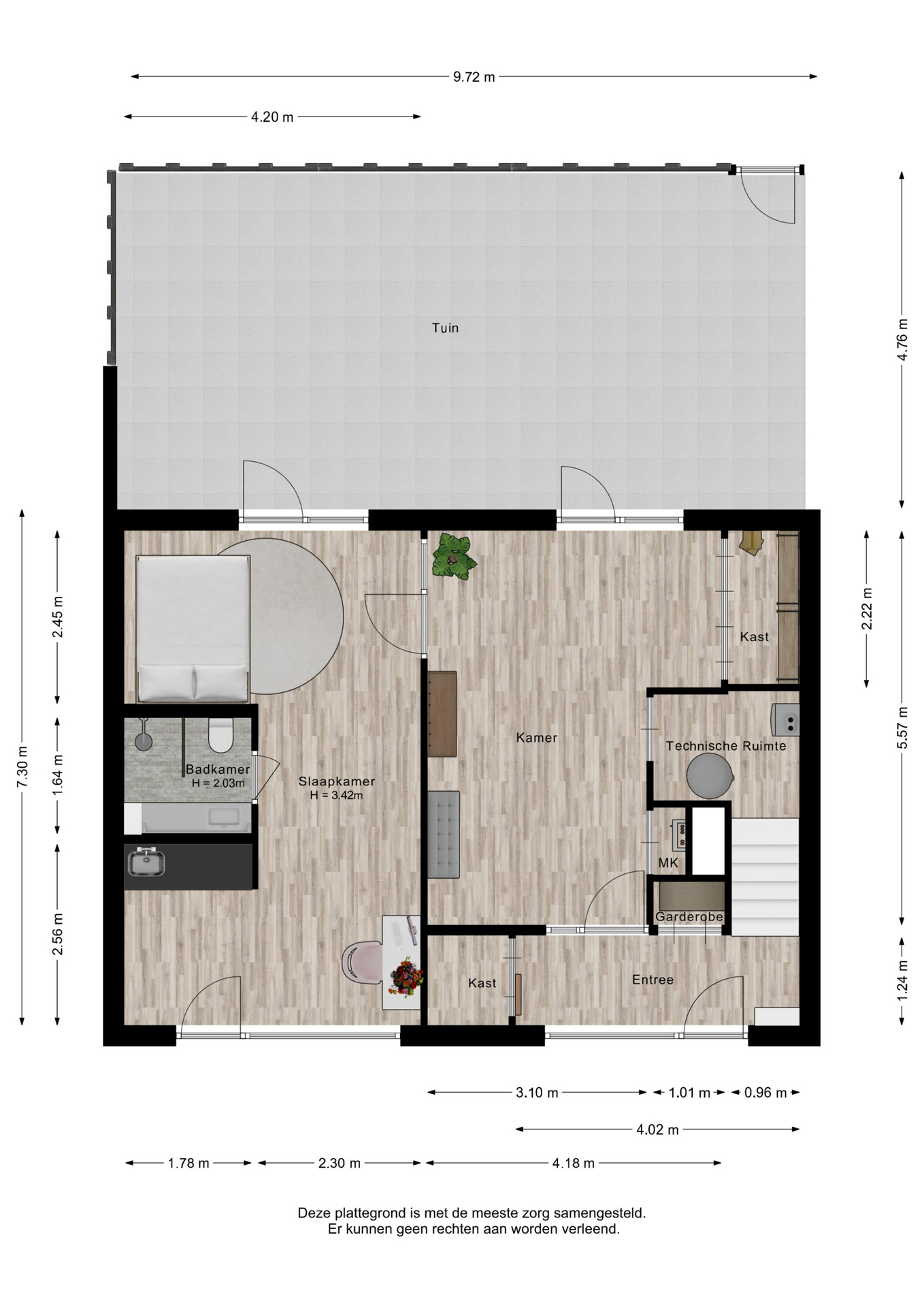 - Drie buitenruimtes: stadstuin, royaal balkon op het zuiden en een dakterras met panoramisch uitzicht