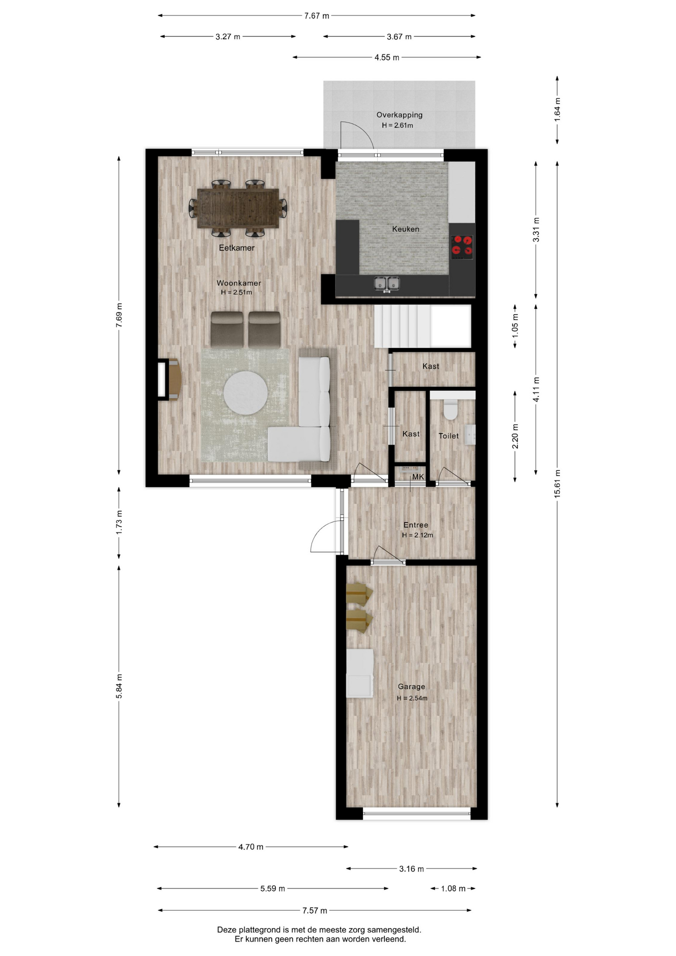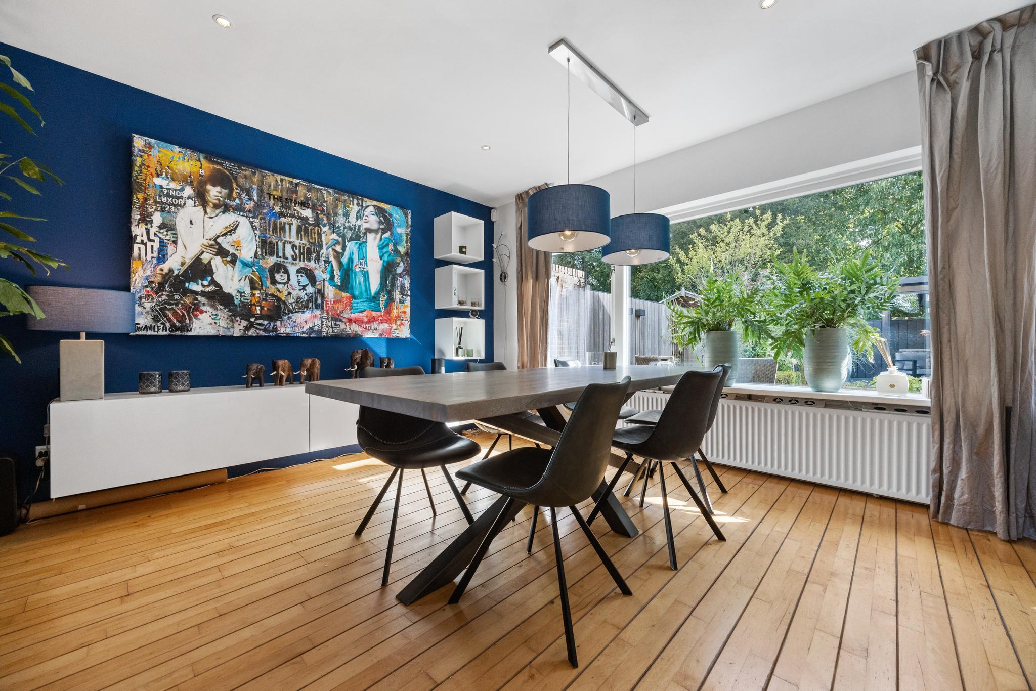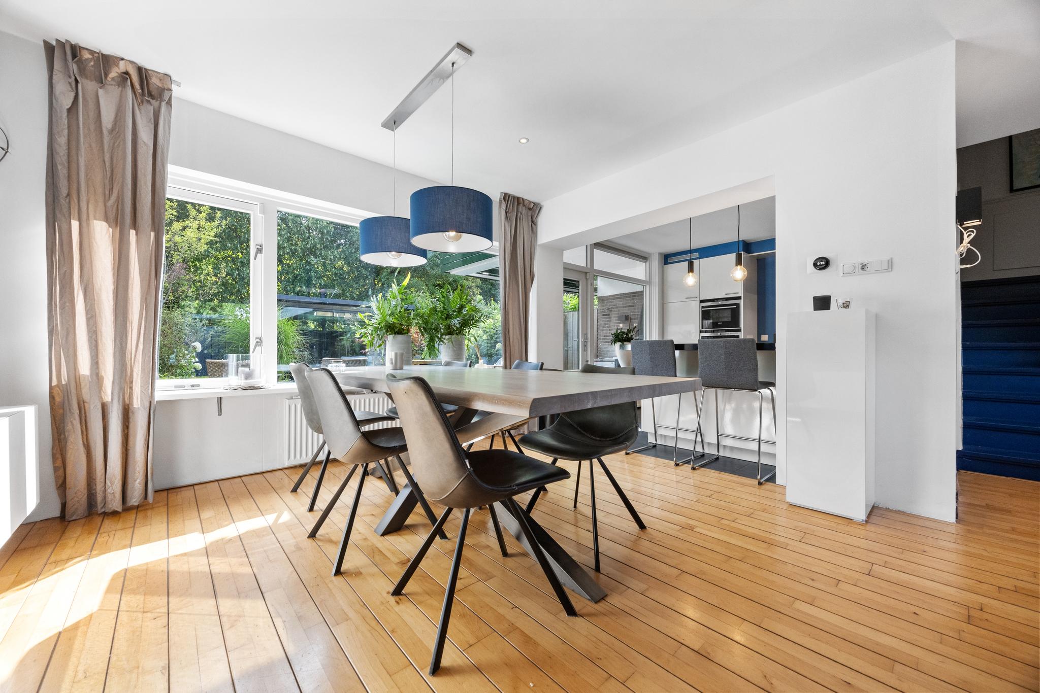 Bij binnenkomst word je verrast door de ruimtelijkheid en het licht. De woonkamer is heerlijk ruim en strekt zich van voor- tot achtergevel. Het eetgedeelte aan de achterzijde geeft uitzicht op de tuin en grenst aan de ruime open keuken. De keuken geeft toegang tot de tuin.
