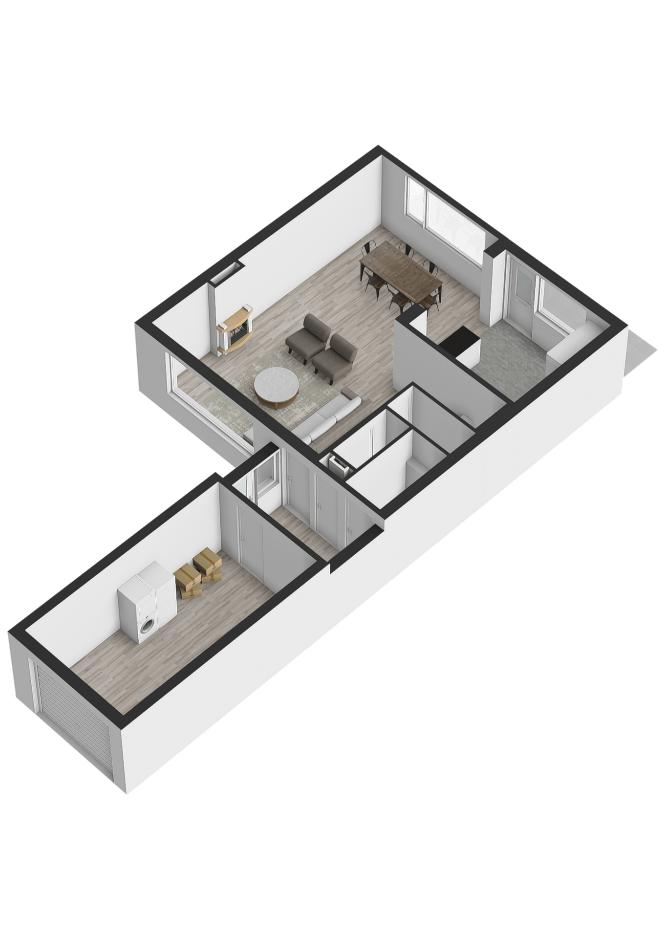 - Garage met elektrische en geïsoleerde Hörman deur met loopdeur