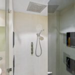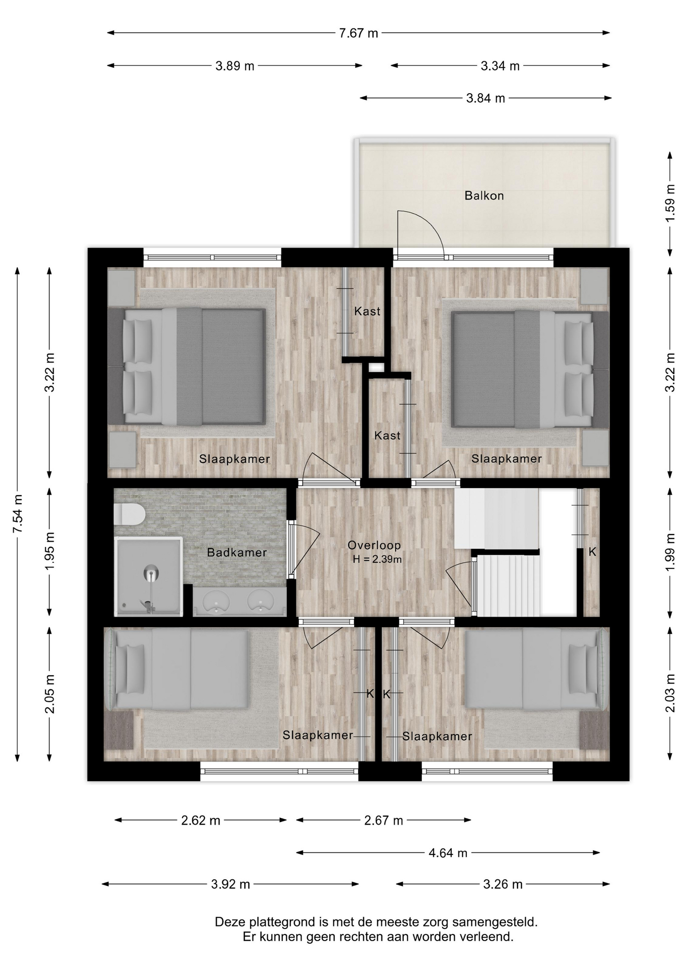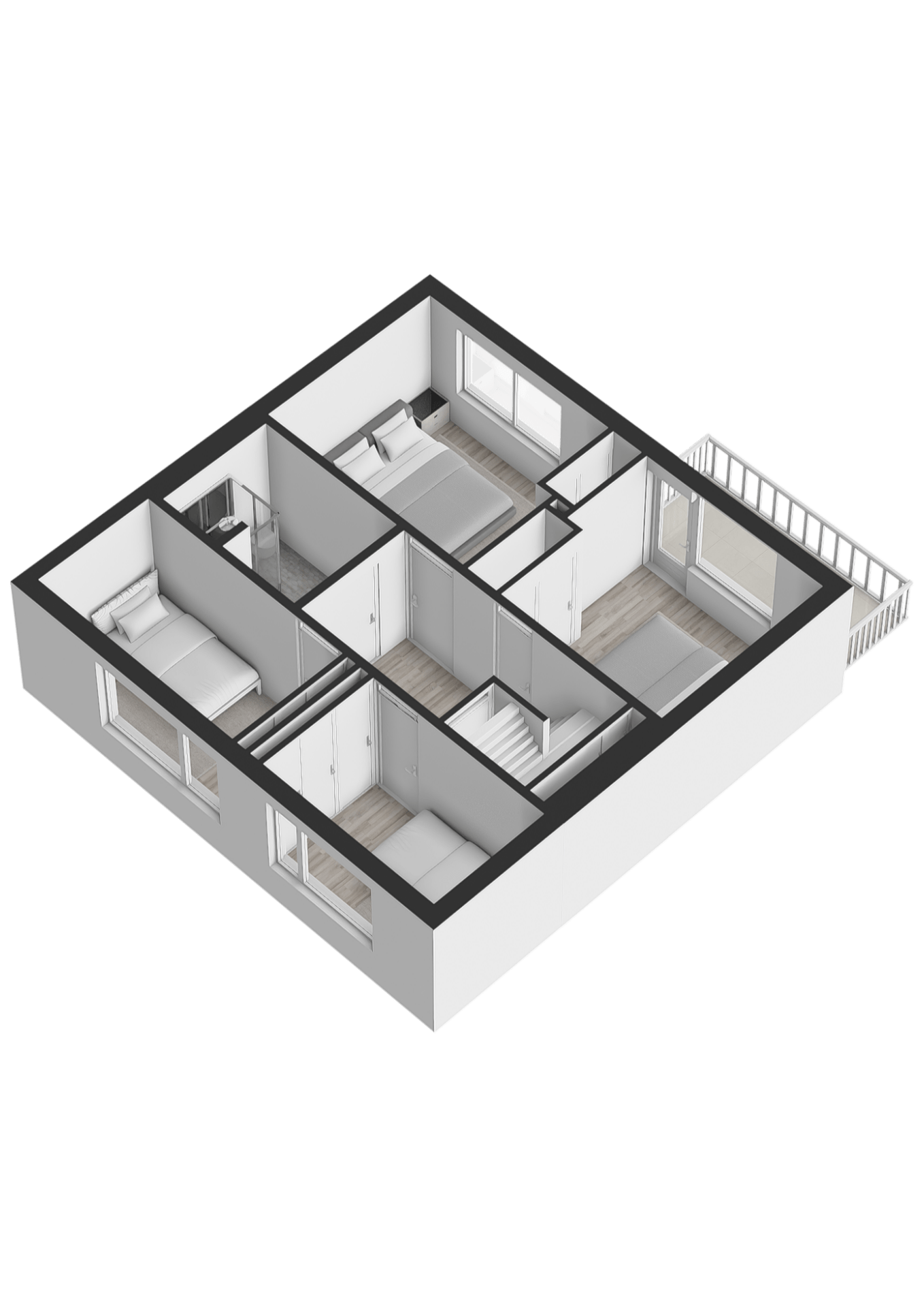 Via de ruime overloop heb je toegang tot vier slaapkamers en een royale luxe badkamer. Één van de slaapkamers beschikt over een balkon. Perfect voor een kop koffie in de ochtendzon. Op deze verdieping bevinden zich meerdere inbouwkasten. De badkamervloer is volledig betegeld en de wanden zijn voorzien van beton cire. Daarnaast is de badkamer voorzien van een dubbel wastafelmeubel, toilet, ruime regendouche en design radiator.