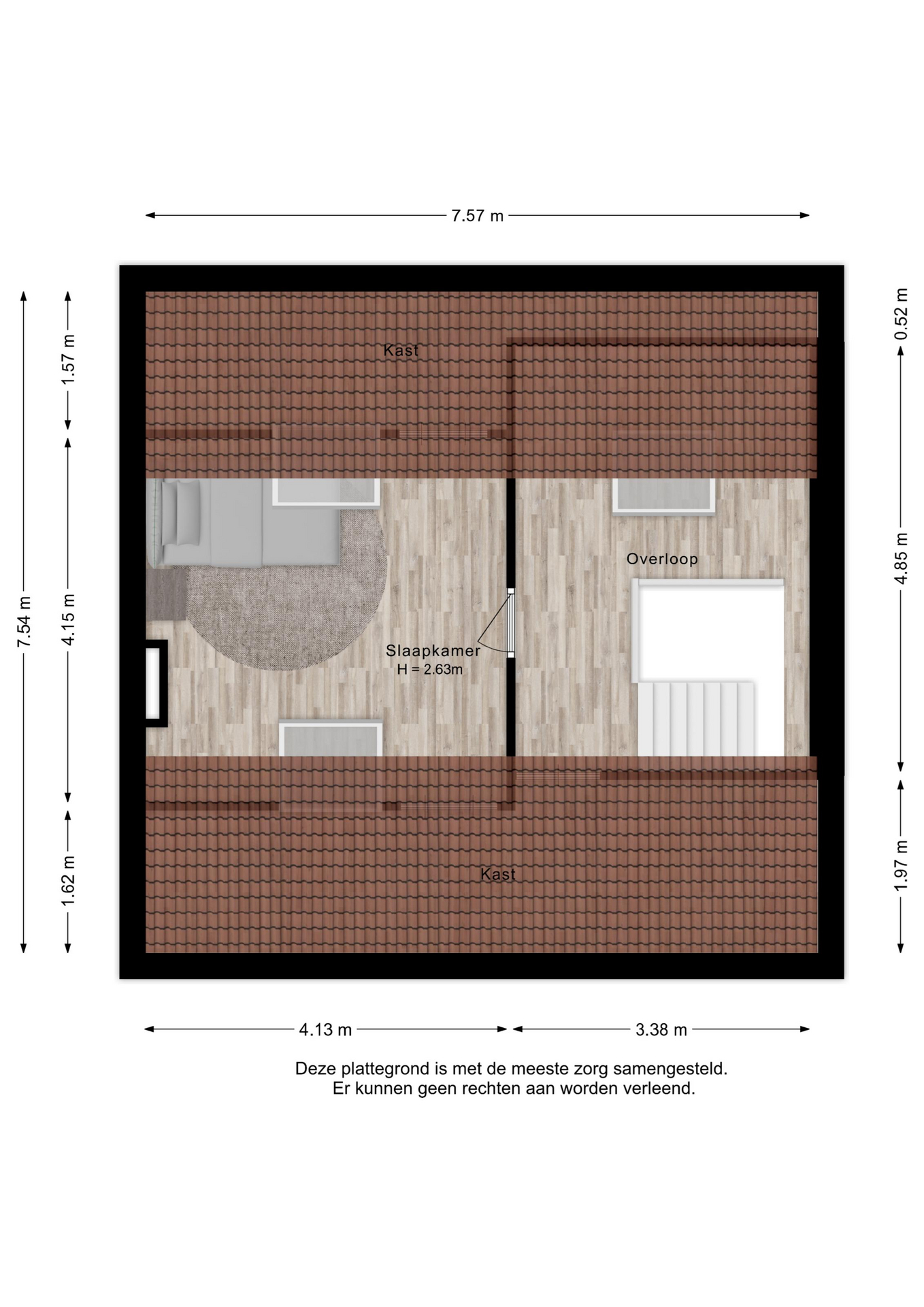 Via een vaste trap heb je toegang tot de tweede verdieping. Op de overloop bevindt zich opbergruimte en op de voorzolder de cv-installatie. De royale vijfde slaapkamer op deze verdieping heeft door de knieschotten veel extra bergruimte. Het dak is geheel geïsoleerd De ruimte is ook perfect te gebruiken als werkruimte.