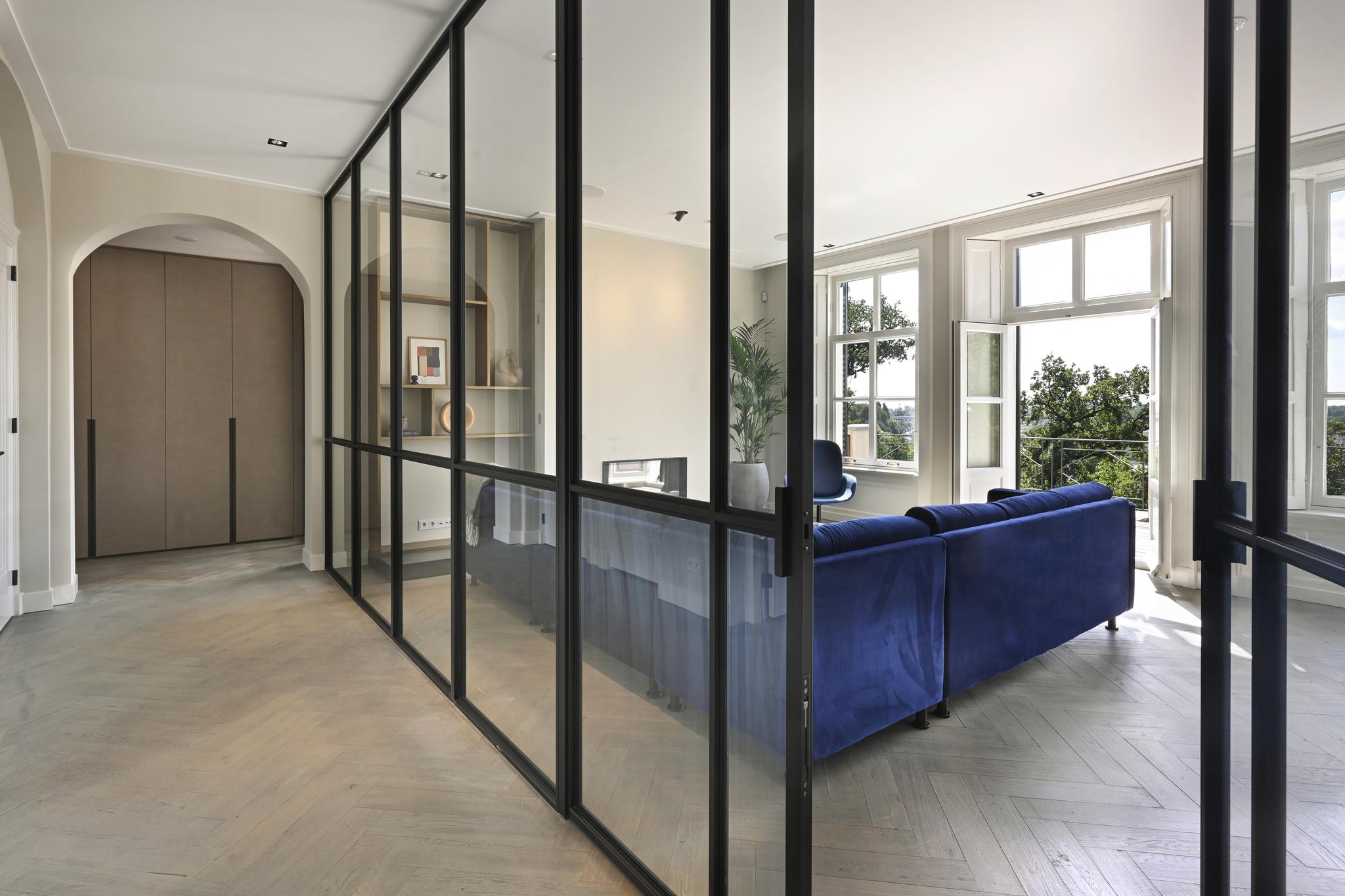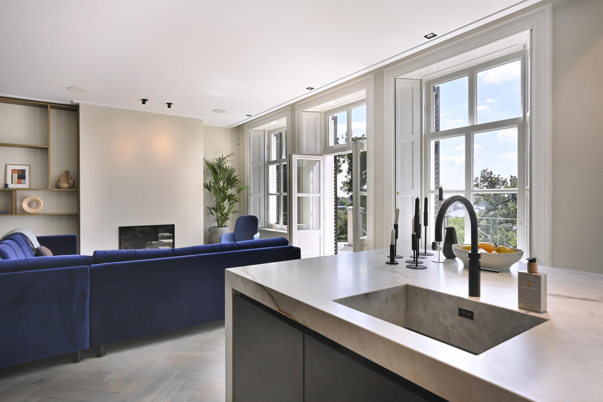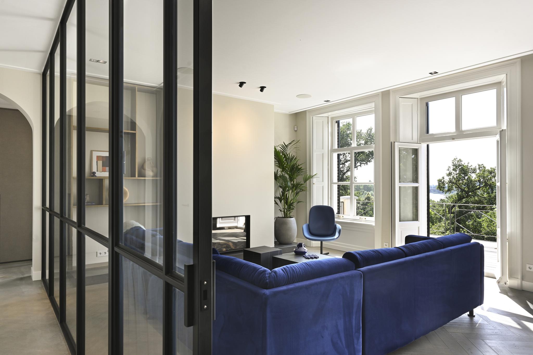 In de statige entree staat u even stil bij de imposante eikenhouten trappartij die fraai wordt uitgelicht door de imposante kroonluchters. Of pakt u toch liever de lift waarmee alleen u naar uw appartement op de eerste etage kunt? Eenmaal thuis geniet u van volop licht en ruimte. Door de grote raampartijen op het zuiden ontvouwt zich een geweldig panorama over de Neder-Rijn en het uiterwaardenpark van Meinerswijk. Op zonnige dagen zit u uiteraard op het royale terras met een goed glas gekoelde wijn. Uw appartement is uiteraard voorzien van alle denkbare technologische gemakken. En van twee ruime slaapkamers, twee badkamers en een aparte werkkamer. Hoge plafonds en een hoogwaardige afwerking maken uw Rijnappartement helemaal compleet. Een ideaal thuis voor wie wil genieten van rust, ruimte en luxe, met de Arnhemse binnenstad vlakbij.