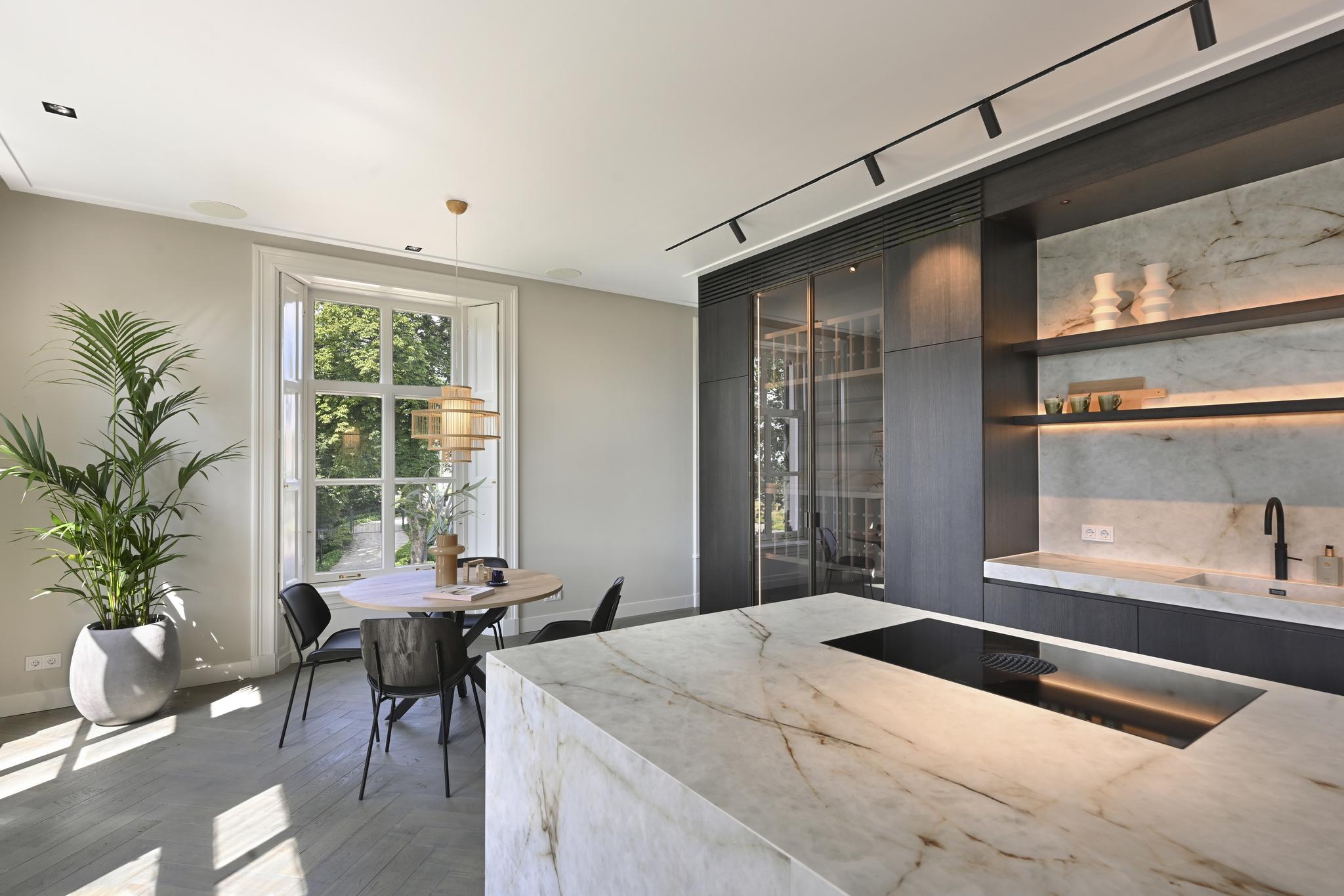 In Schoonheuvel zijn 3 drie luxe appartementen gerealiseerd. Ze zijn allemaal anders qua indeling, oppervlakte, inrichting en uitzicht. Maar tegelijkertijd hebben ze ook veel gemeen. Zo beschikt elk appartement over twee volledig uitgeruste badkamers met topsanitair en een grootse keuken met kookeiland en zeer hoogwaardige apparatuur. Op de vloeren ligt prachtig visgraatmotief eiken parket met vloerverwarming. De wanden zijn afgewerkt en uw hele appartement is voorzien van een state of the art luchtbehandelingssysteem. Overal zijn al wandarmaturen aanwezig, de ramen zijn voorzien van authentieke binnenluiken, er zijn gashaarden en ook de geluidsboxen voor uw Sonos systeem zijn al geïntegreerd in elke ruimte. Echt aan alles is gedacht. Pak uw meubels op, verhuis ze en start met eindeloos genieten van een appartement dat zijn gelijke niet kent.