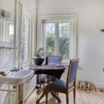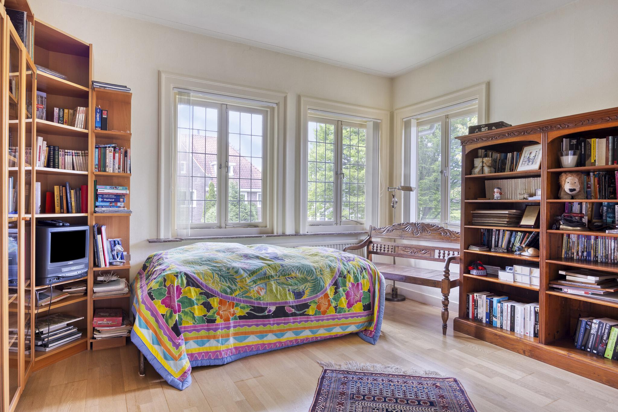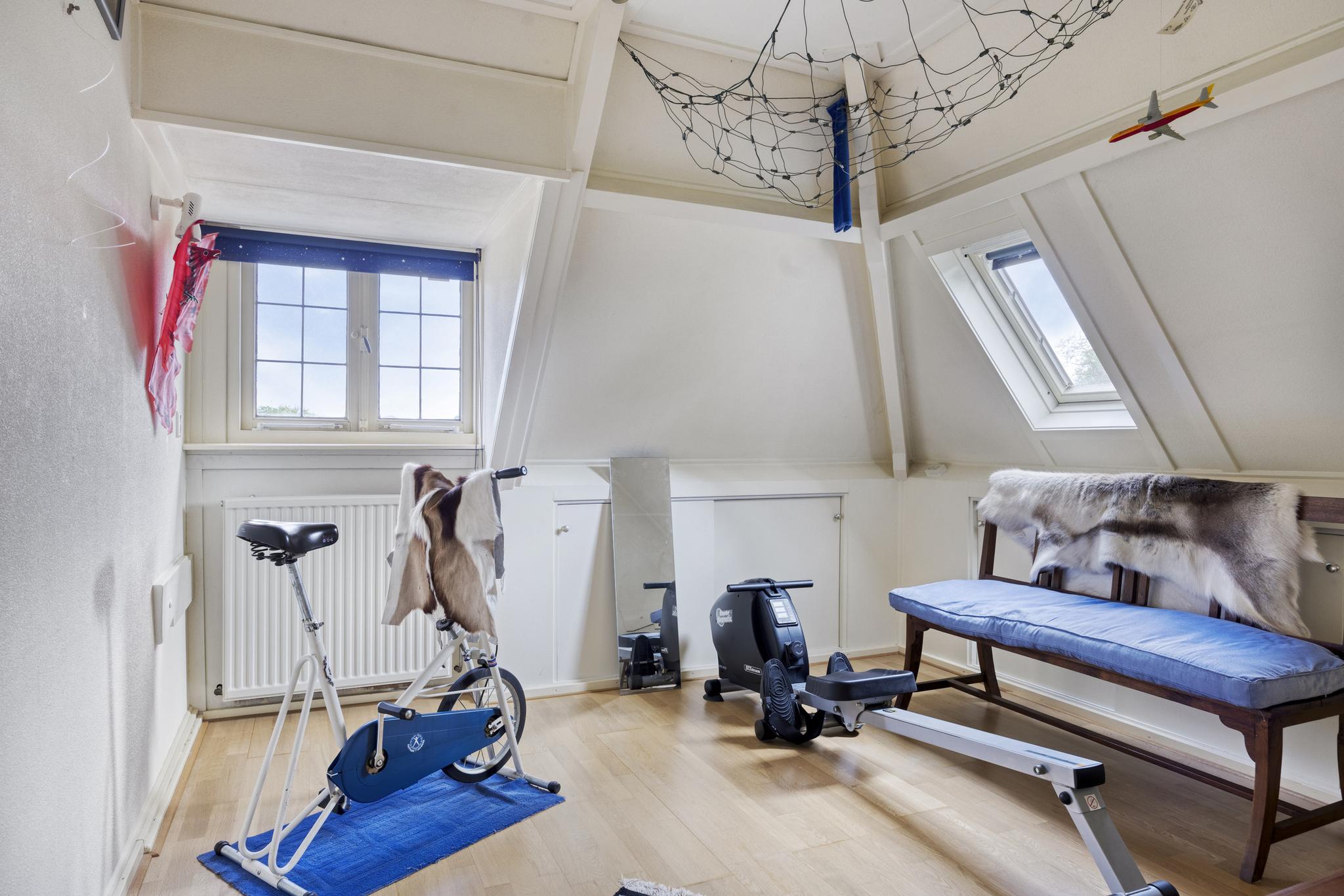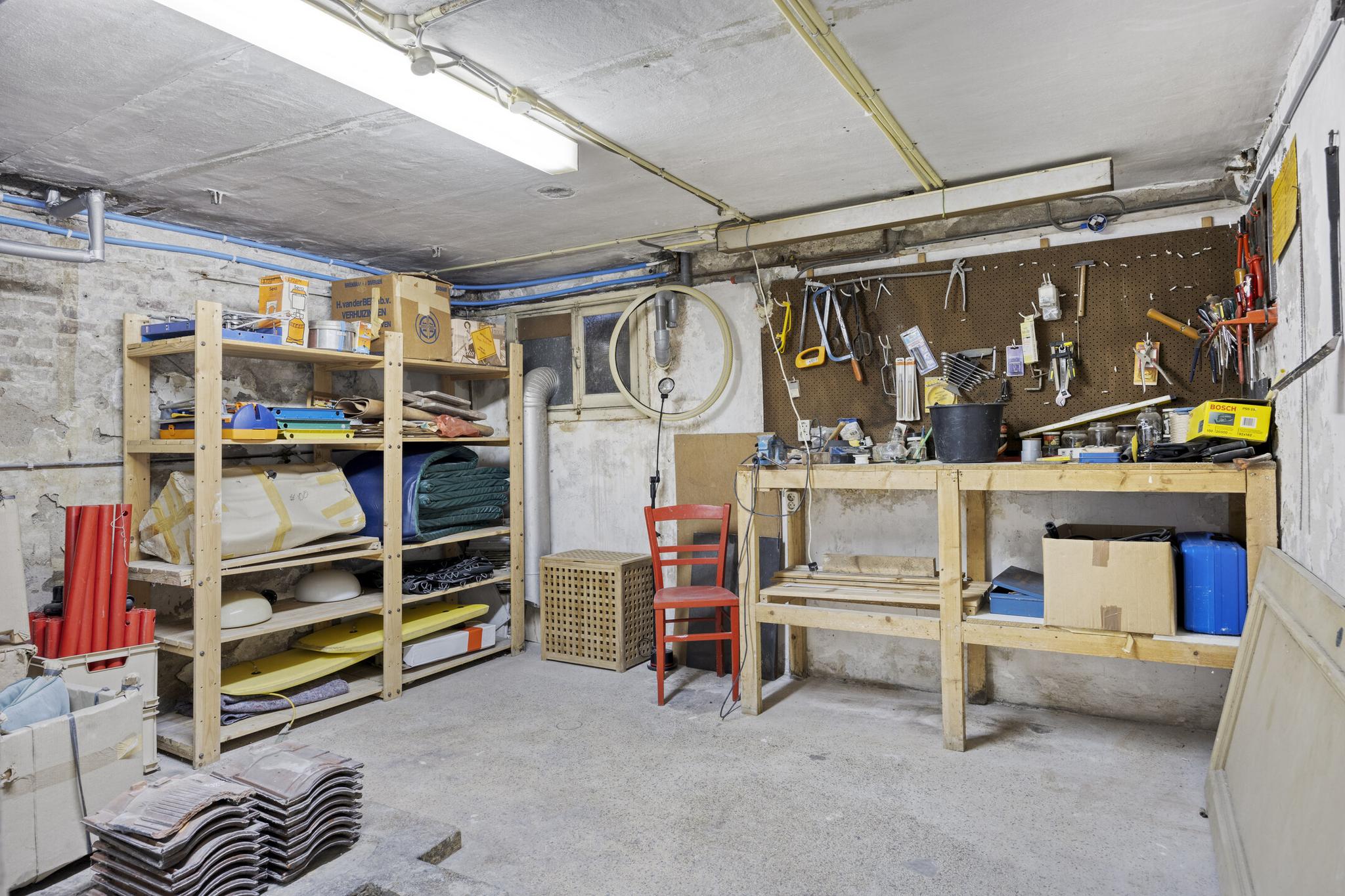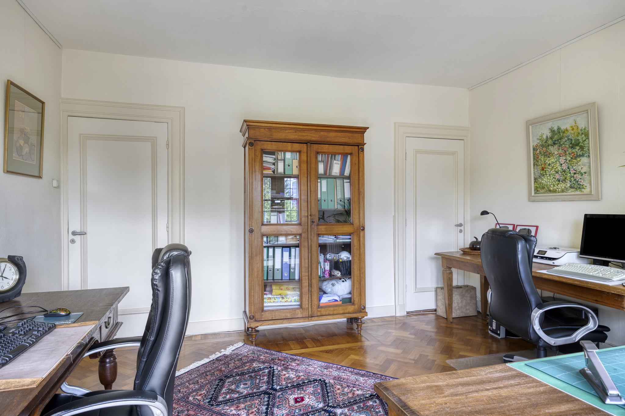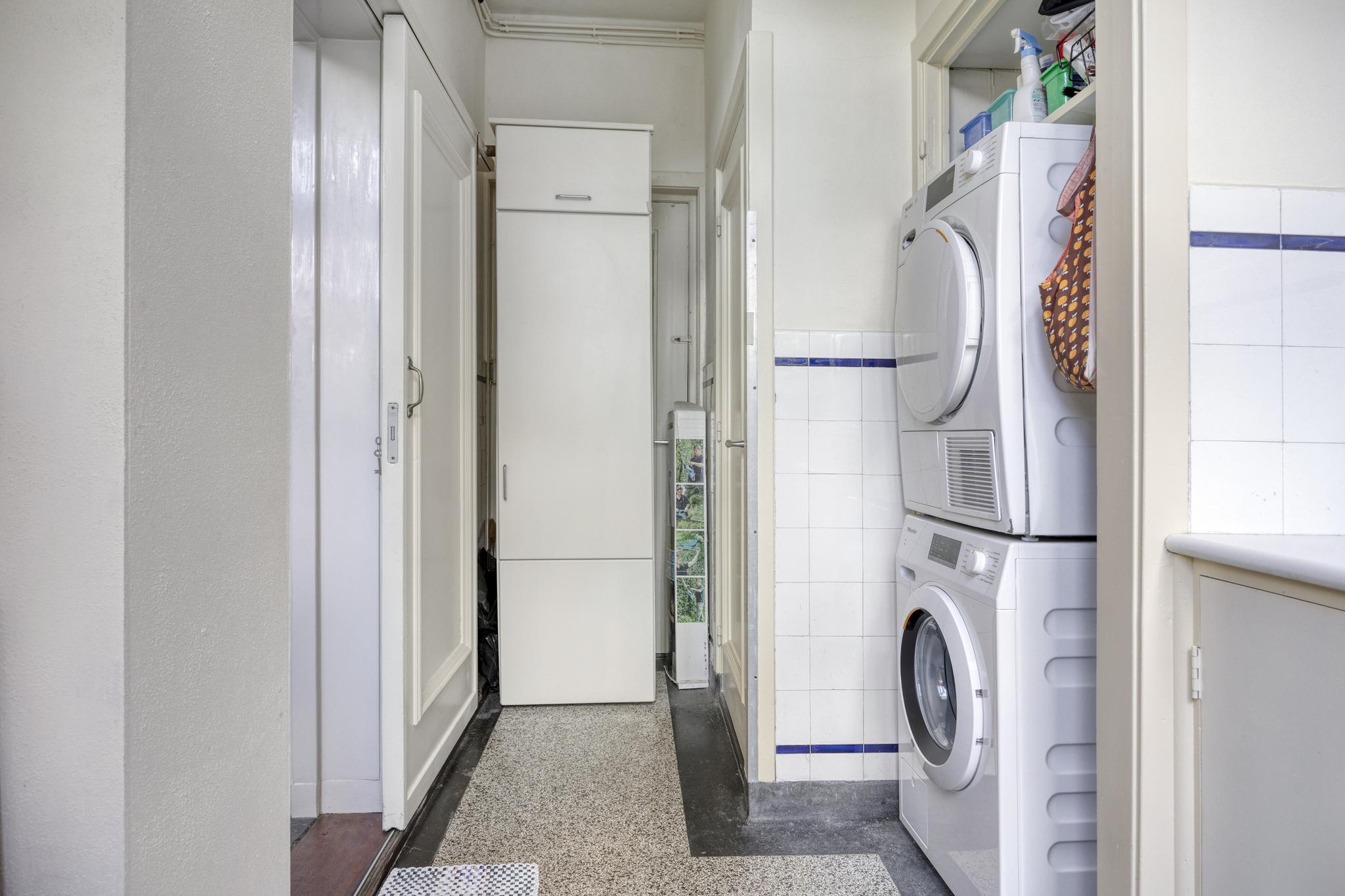 Bijkeuken met granito vloer, wastafel, wasmachine en droger plaats. De losse kasten blijven achter, voormalige toilet ruimte (nu berging), sfeervolle royale kamer- en suite met halfronde erker, marmeren schouw met inbouw gashaard en eiken visgraat parketvloer. Grenzend aan de kamer en suite bevindt zich een sfeervolle tuinkamer met open slaande deuren naar een goed aangelegde achtertuin met diverse terrassen waar u menig uur kunt doorbrengen.