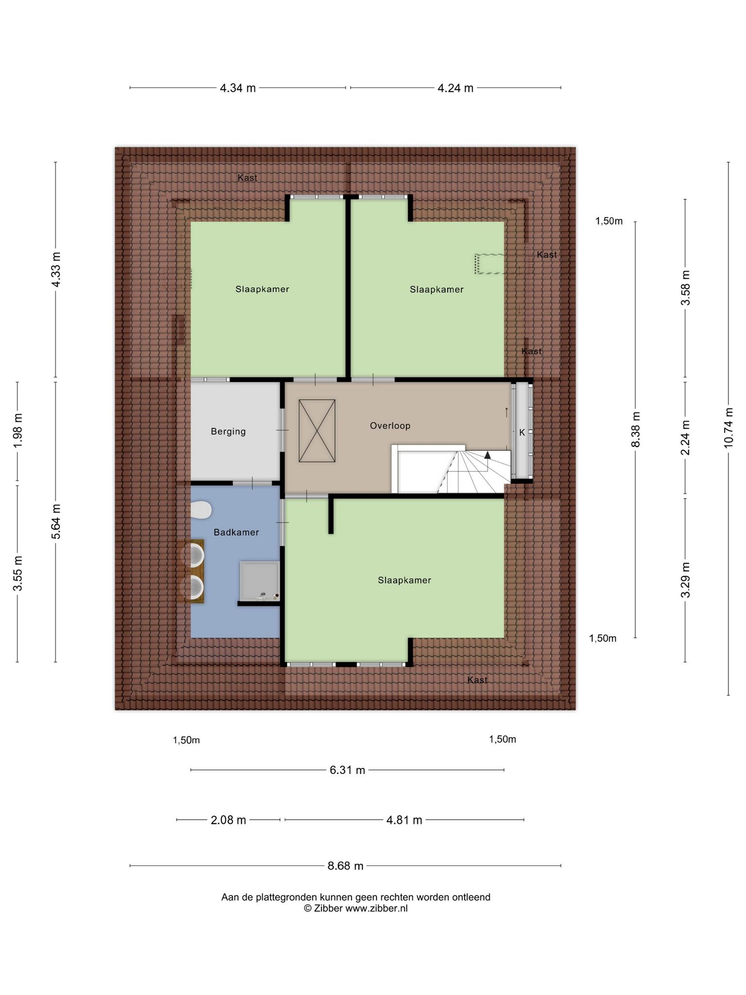 3e verdieping: bevloerde zolder bereikbaar via de vlizotrap.