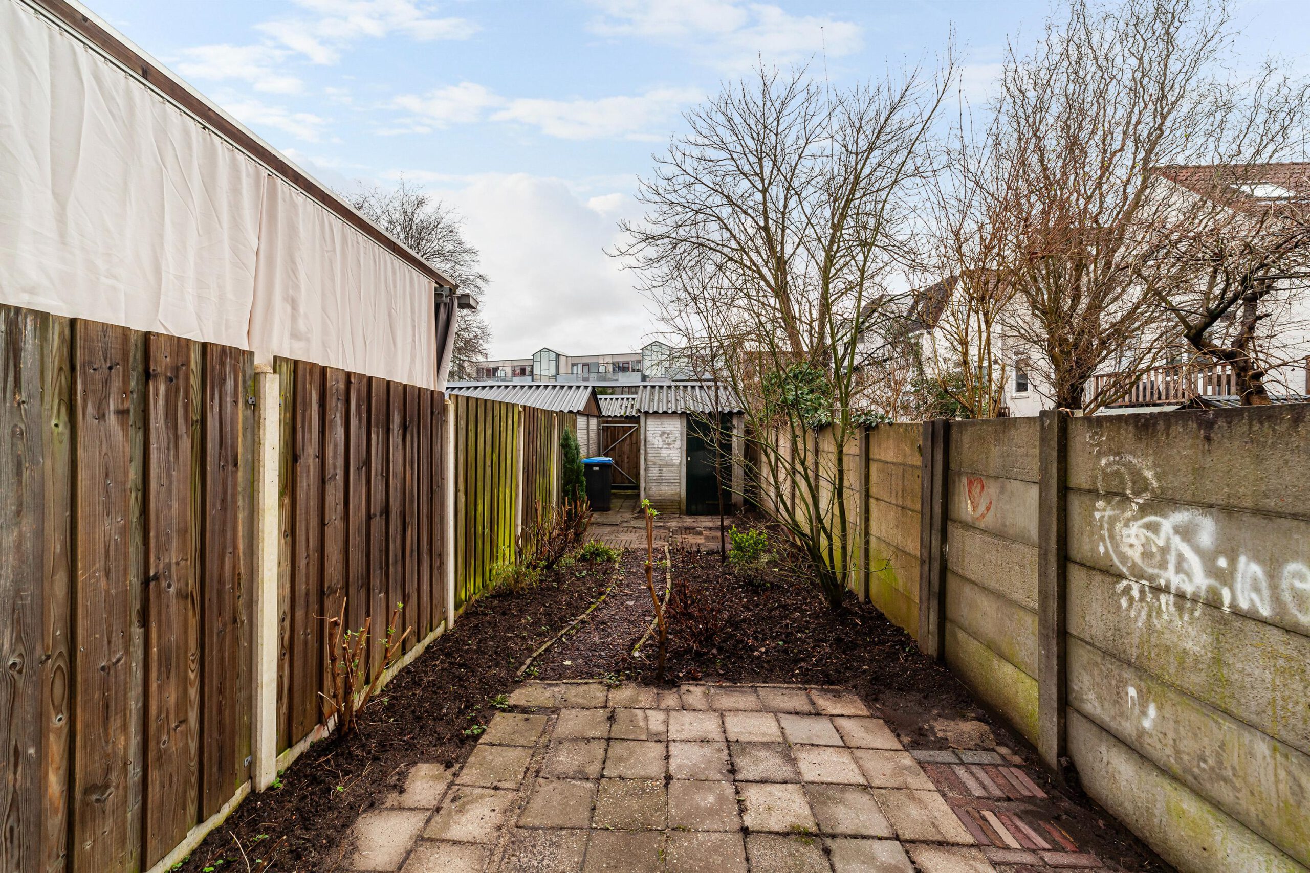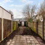De diepe tuin bevindt zich op het oosten en beschikt over een achterom en berging.