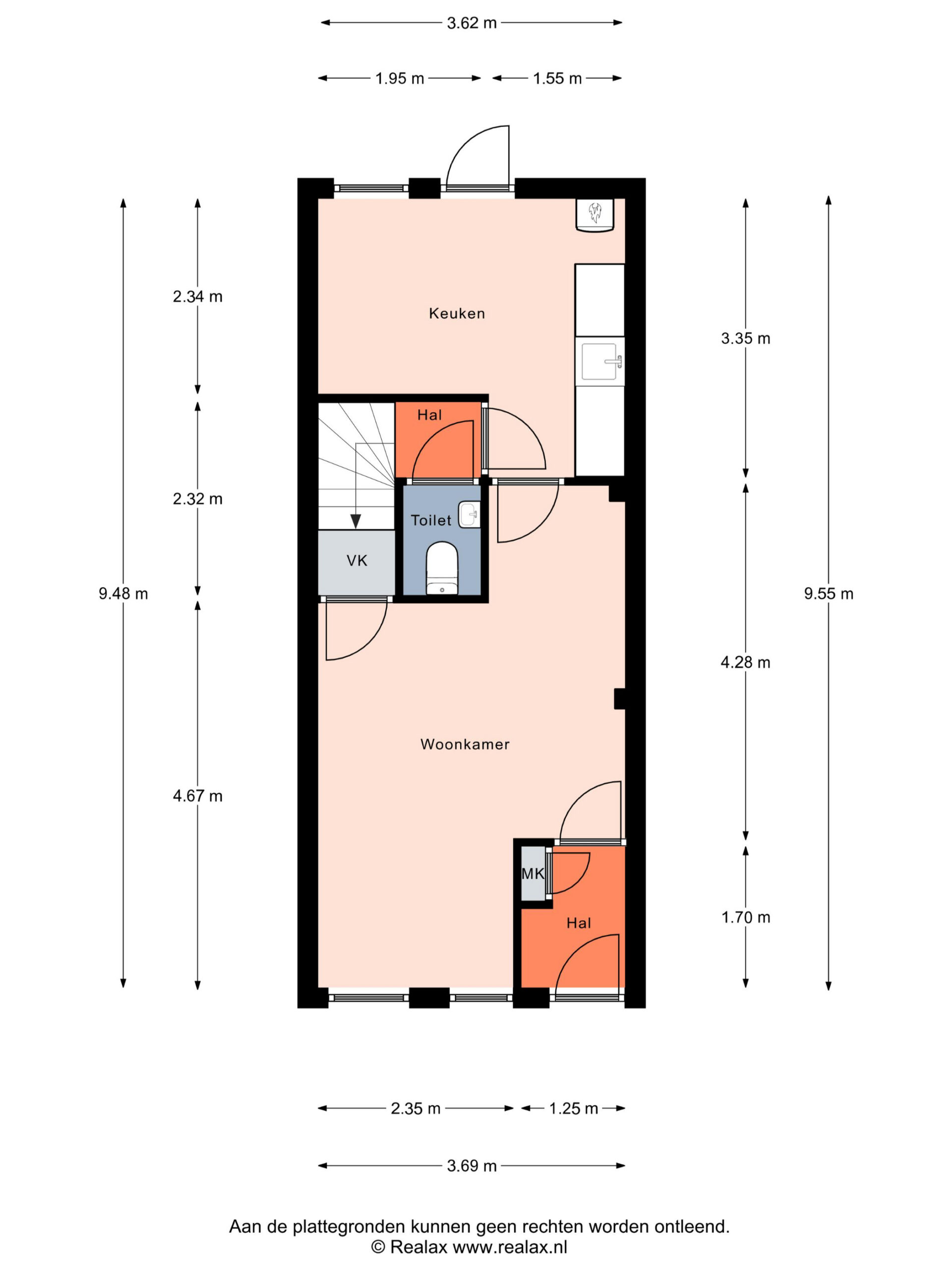 Entree, hal met toegang tot de woonkamer met aansluitend de keuken. Tussen de woonkamer en keuken heeft u toegang tot het toilet en trapopgang naar de eerste verdieping. Op de eerste verdieping vindt u drie slaapkamers en een badkamer welke is voorzien van een douche, wasbak en toilet. De tweede verdieping heeft een ruime overloop en twee slaapkamers.