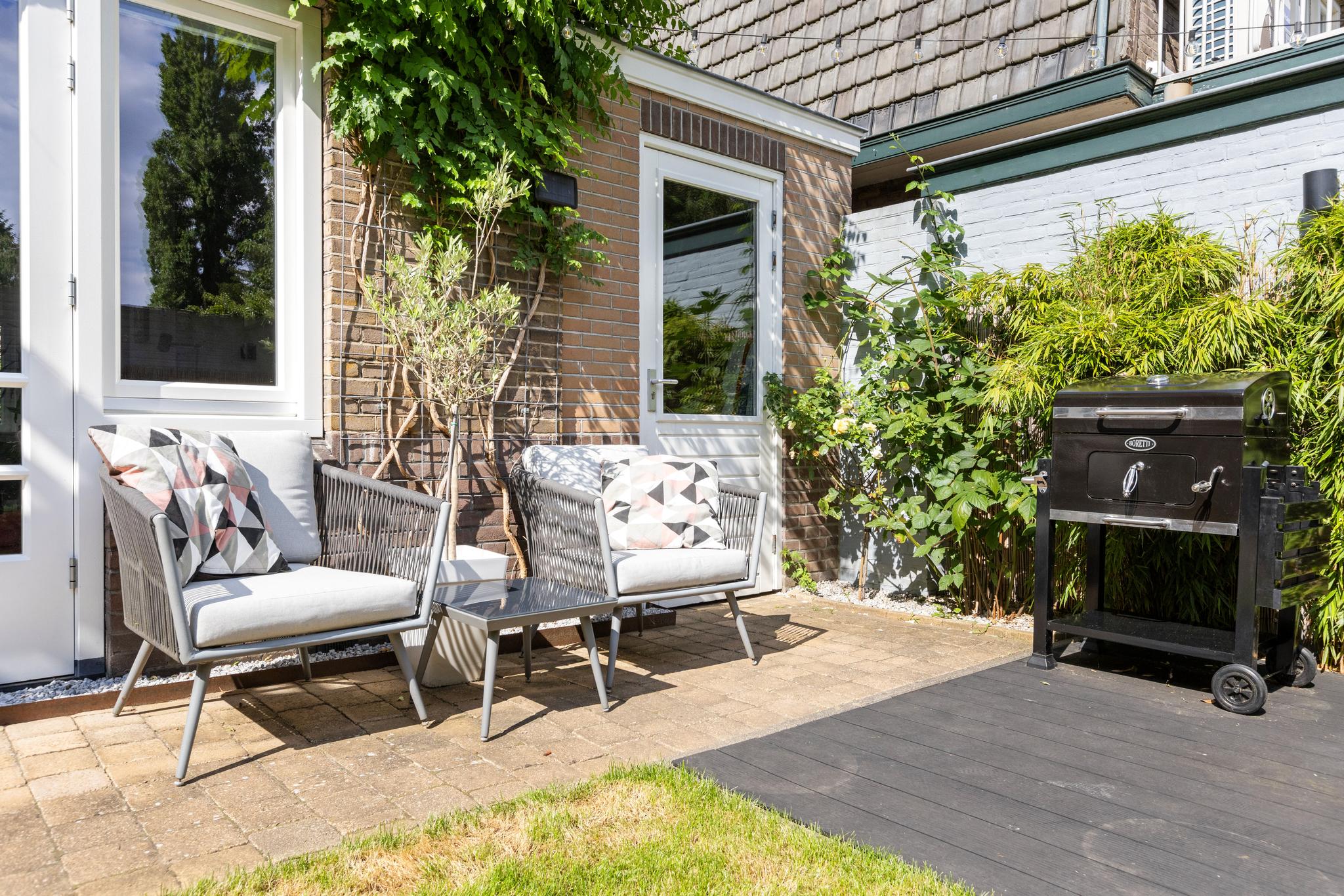 De fraai aangelegde en verrassende achtertuin is een verlengstuk van uw woonkamer. Met diverse terrassen, zowel in de zon als in de schaduw, is er altijd een plekje om te ontspannen. De groene omzoming van hagen en beplanting zorgt voor optimale privacy. U geniet hier van de rust en het groen, terwijl de kinderen volop kunnen spelen op het gazon in de voortuin of op straat met anderen. De aangebouwde berging biedt praktische opbergruimte voor fietsen en tuingereedschap.