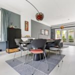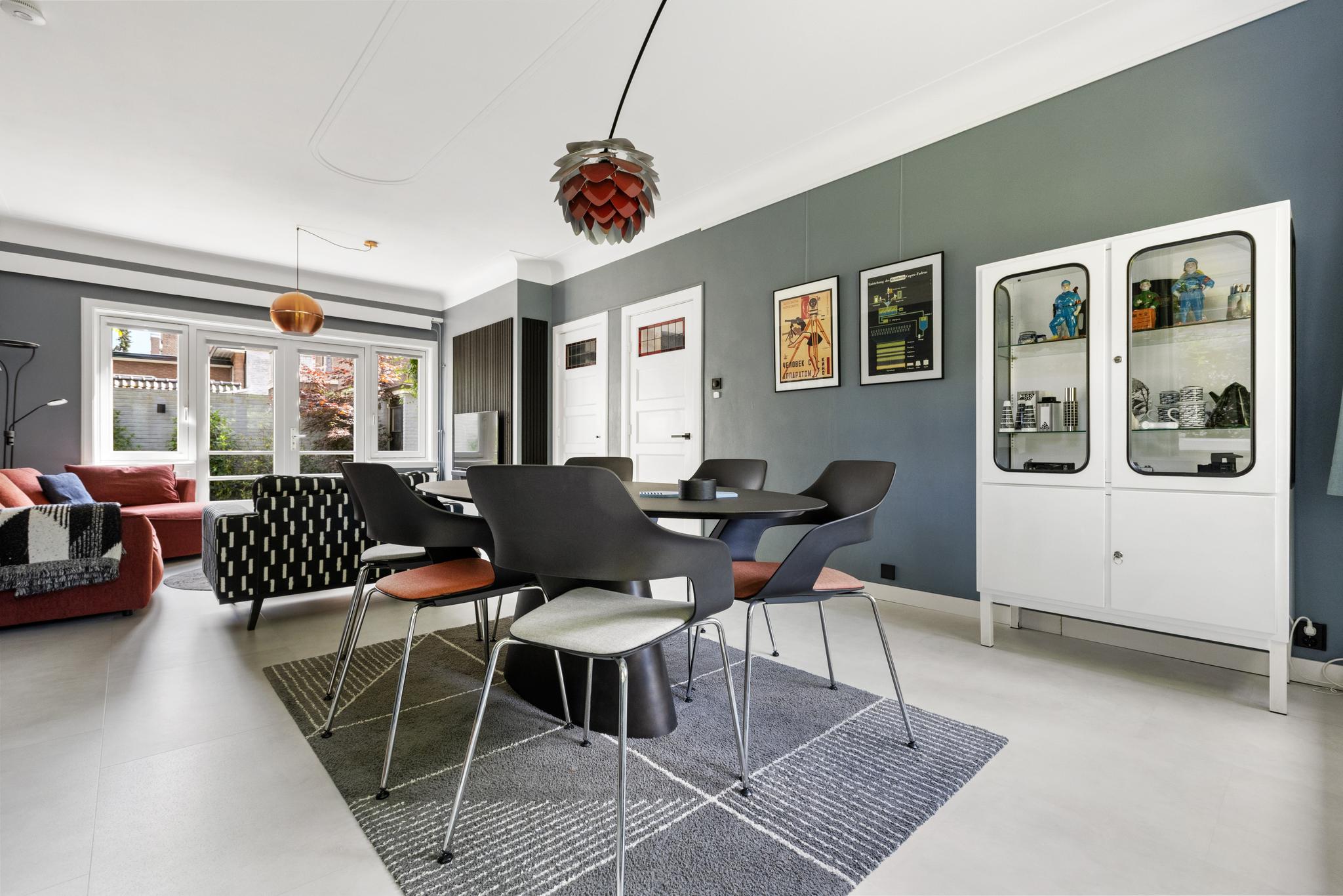 Bij binnenkomst wordt u direct verrast door de sfeervolle en lichte woonruimtes. De begane grond kenmerkt zich door een strakke, moderne afwerking met een fraaie lichte vloer en stijlvolle donkergrijze accentwanden. De woonkamer is ruim opgezet en heeft een mooie lichtinval dankzij de grote raampartijen aan zowel de voor- als achterzijde. De openslaande deuren aan de achterzijde nodigen uit om direct de zonnige tuin in te stappen. Aan de voorzijde van de woning bevindt zich de royale eetkamer, perfect voor gezellige diners met familie en vrienden. De moderne afwerking en aandacht voor detail, zoals de smaakvolle verlichting en wanddecoratie, dragen bij aan een direct thuisgevoel.