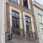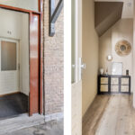 De buitenkant van het pand is al een voorbode van wat je binnen aantreft. De voorzijde ligt aan de Velperpoortslangstraat. De markante gevel heeft hoge ramen, ossenbloedrode luiken, klassieke daklijsten en een hijsbalk, die verwijst naar de voormalige functie van het pand als pakhuis. Vanuit de woning is amper geluid van de stad te horen en vanuit de slaapkamer helemaal geen geluid.