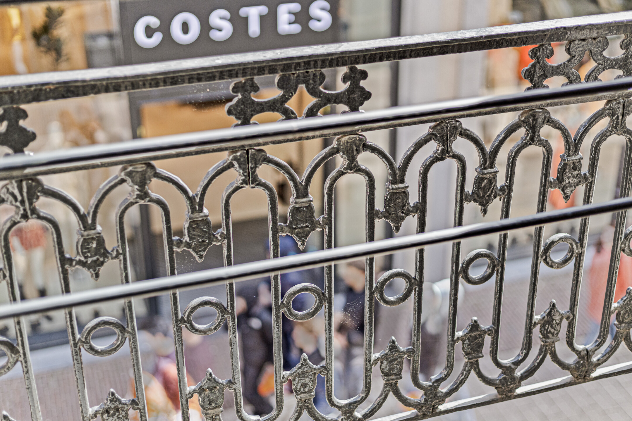 De achterzijde van het pand - en van deze woning - ligt aan de Roggestraat. Deze gevel is nog grotendeels authentiek en heeft prachtige hoge ramen met een klassiek bewerkte omlijsting. De ramen op de 1e verdieping hebben gietijzeren Franse balkons.