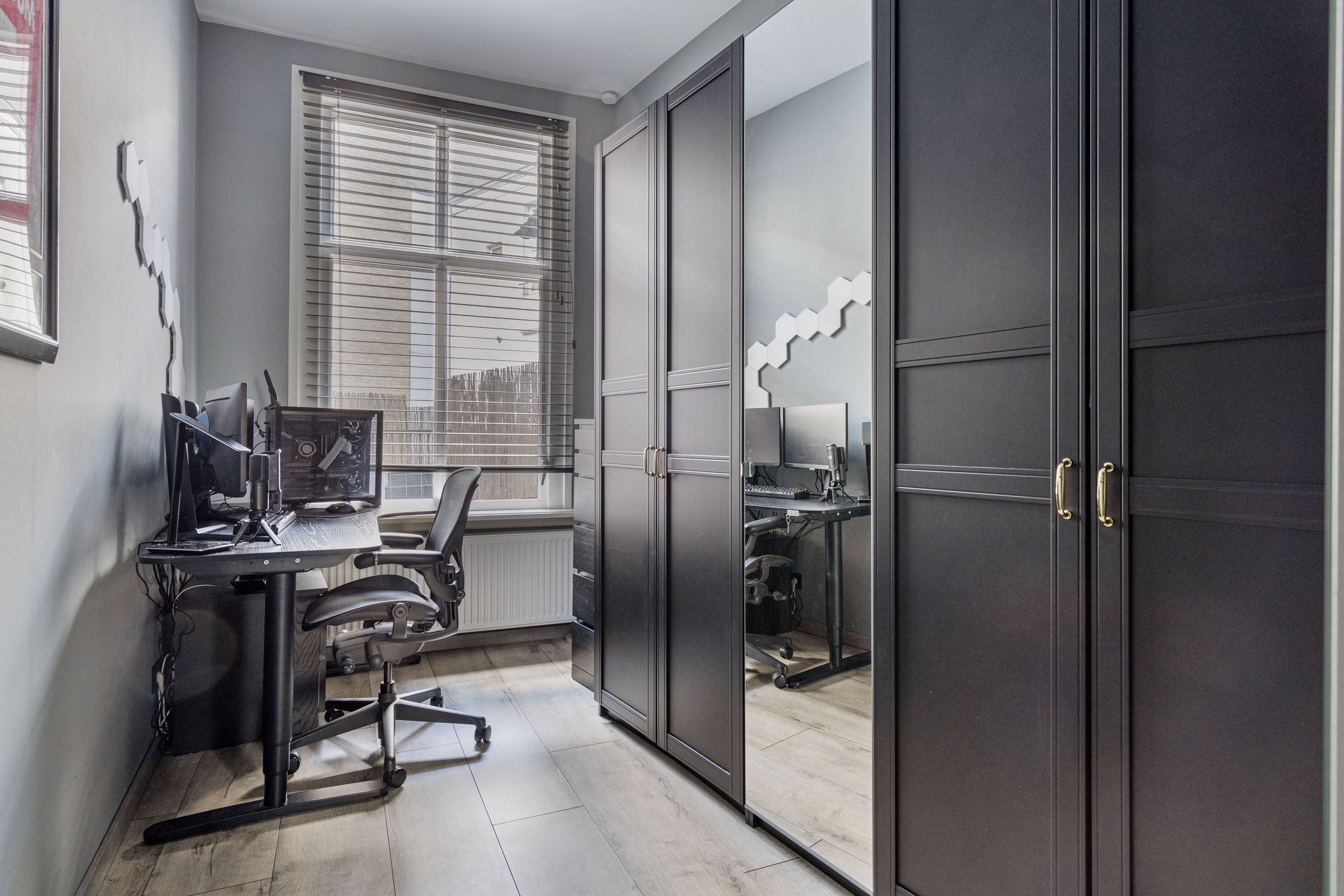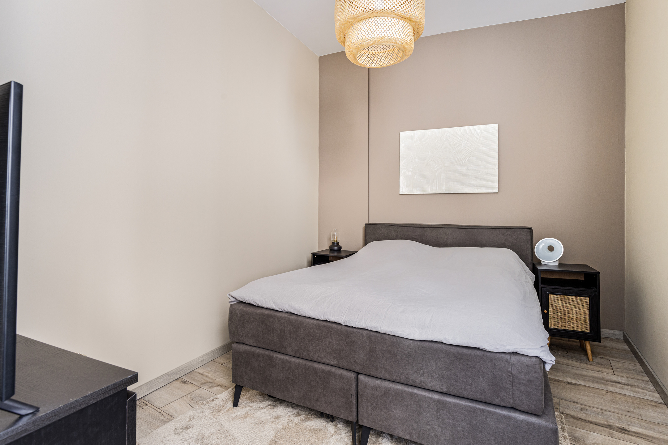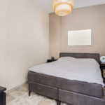 Er zijn twee slaapkamers in de woning, beide meten ca. 14 m2. Ze hebben allebei een groot raam en wit gestuukte wanden.