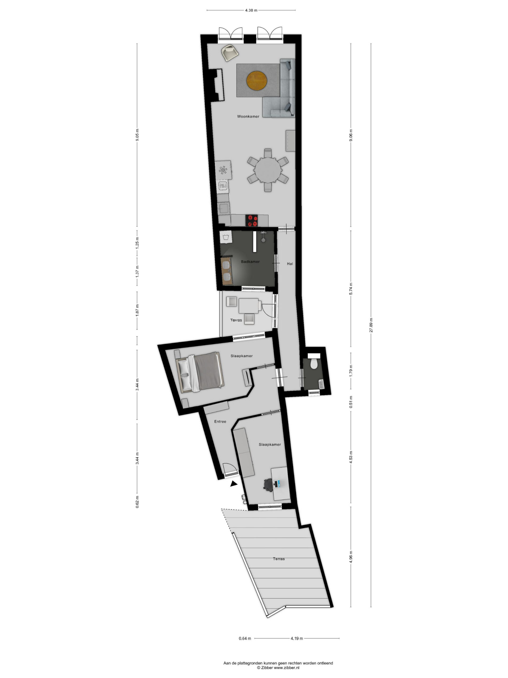 Naast de badkamer is een deur naar het tweede terras. Dit is ongeveer 4 m2.