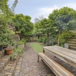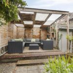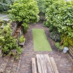 - Diepe L-vormige tuin met meerdere terrassen en achterom