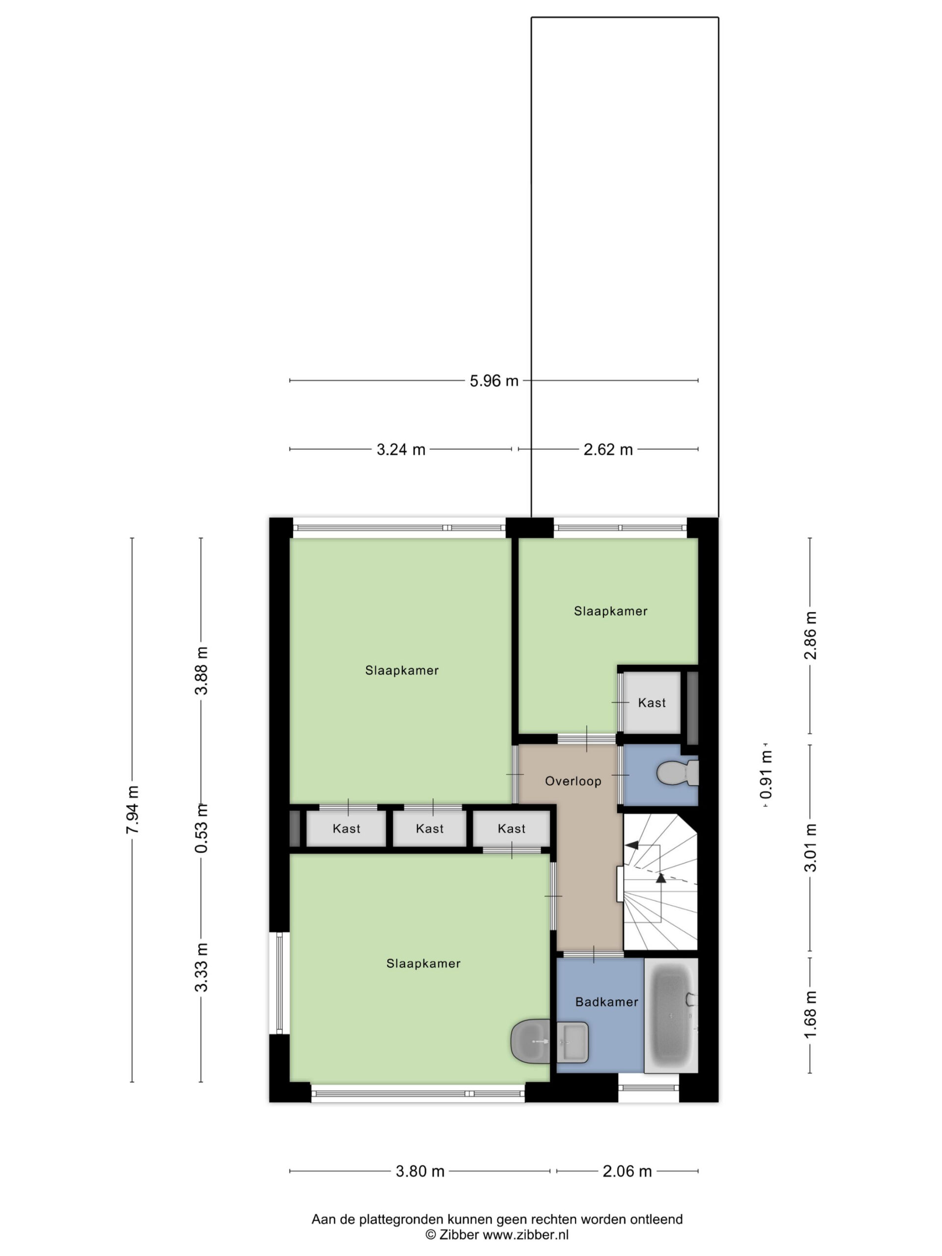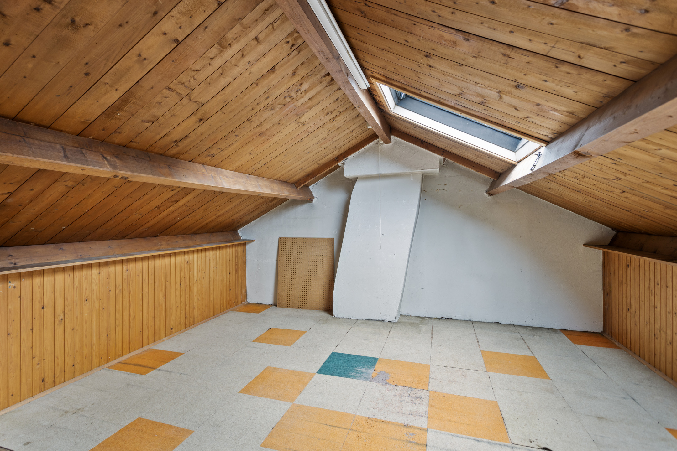 Zolderverdieping te bereiken via een vaste trap, zolderkamer en extra bergruimte.