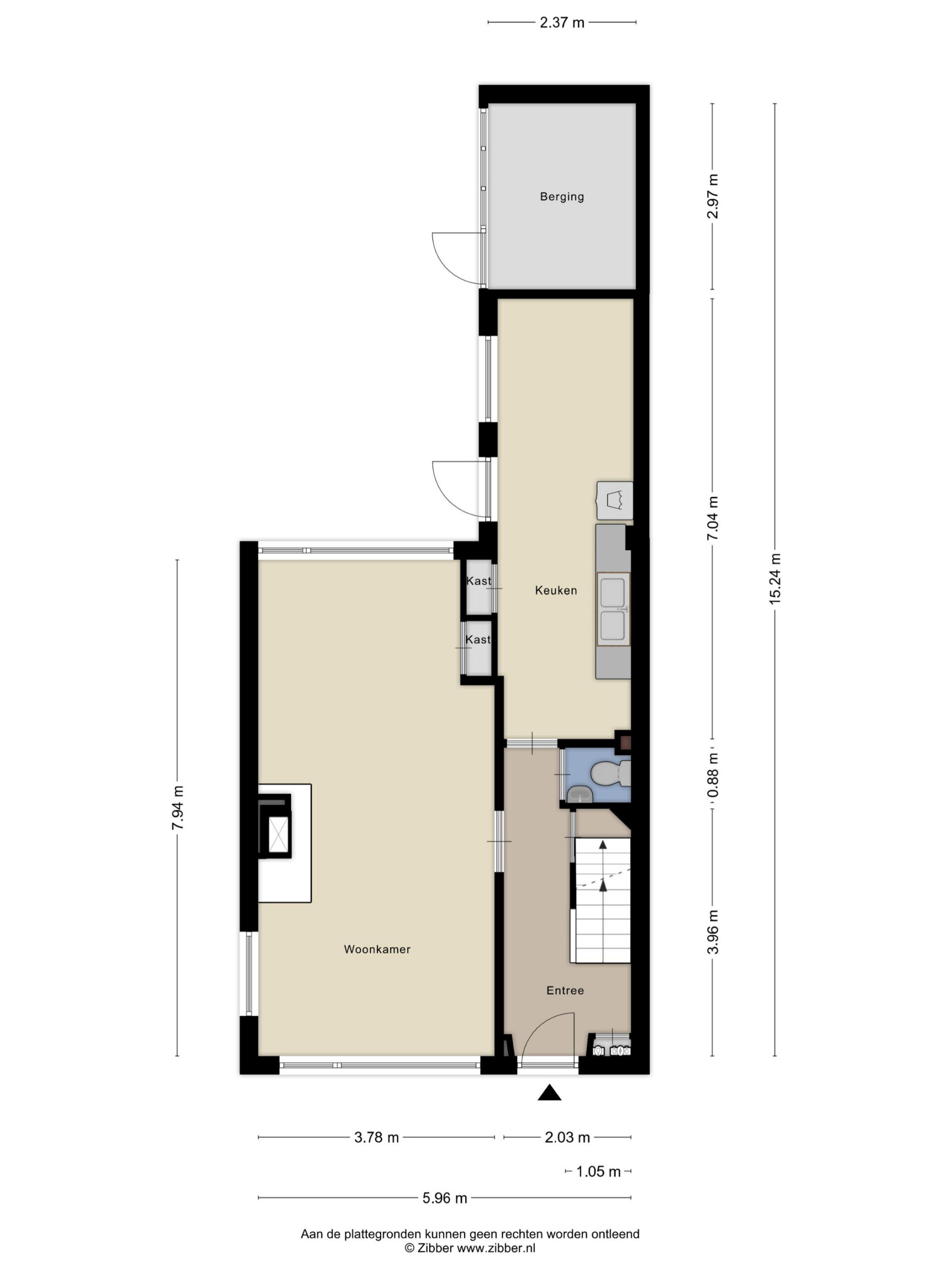 Via de entree kom je in de hal met toilet en toegang tot de lichte woonkamer. De open keuken grenst aan een praktische bijkeuken die op zijn beurt weer toegang geeft tot de riante tuin.