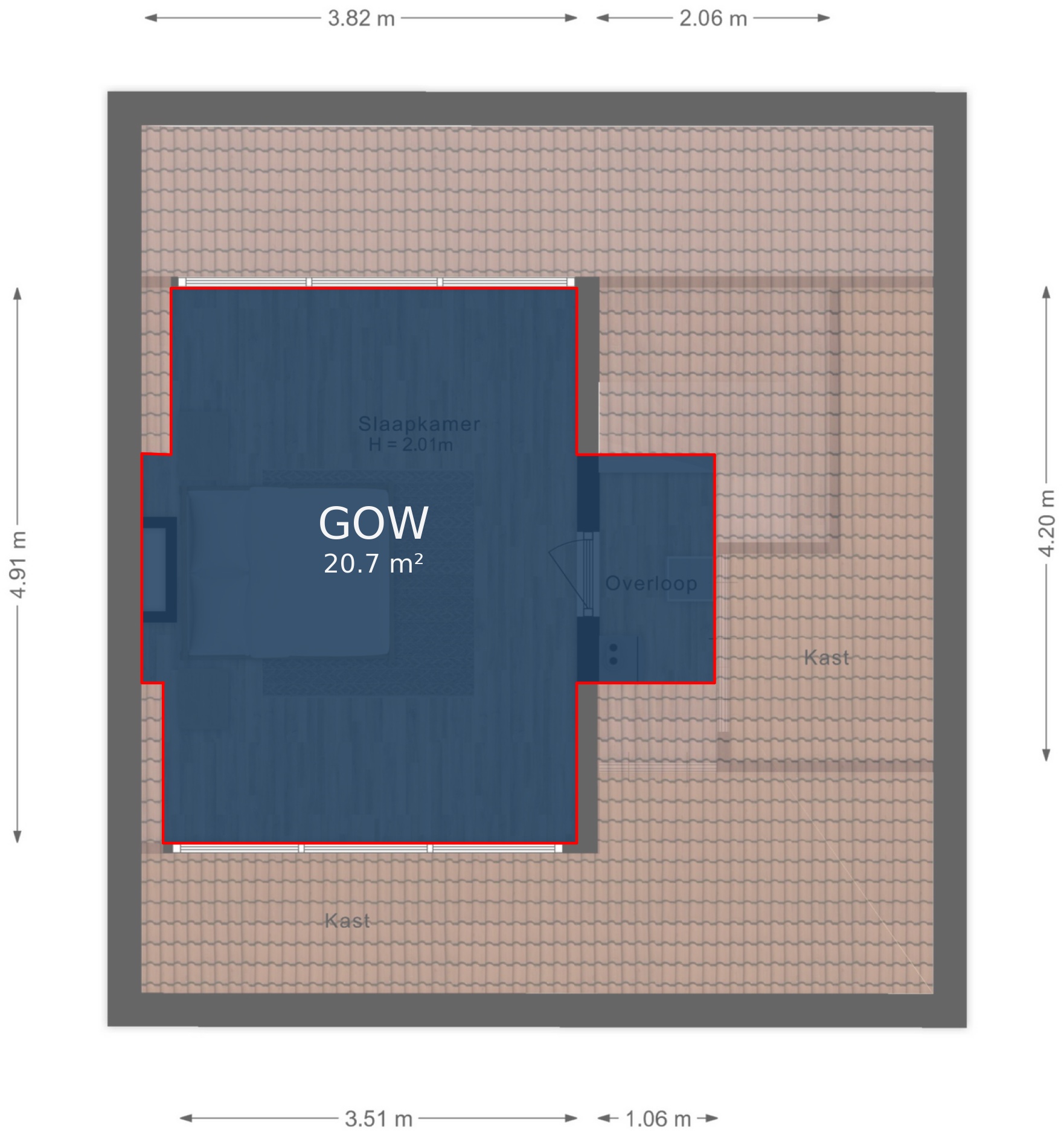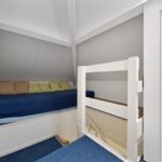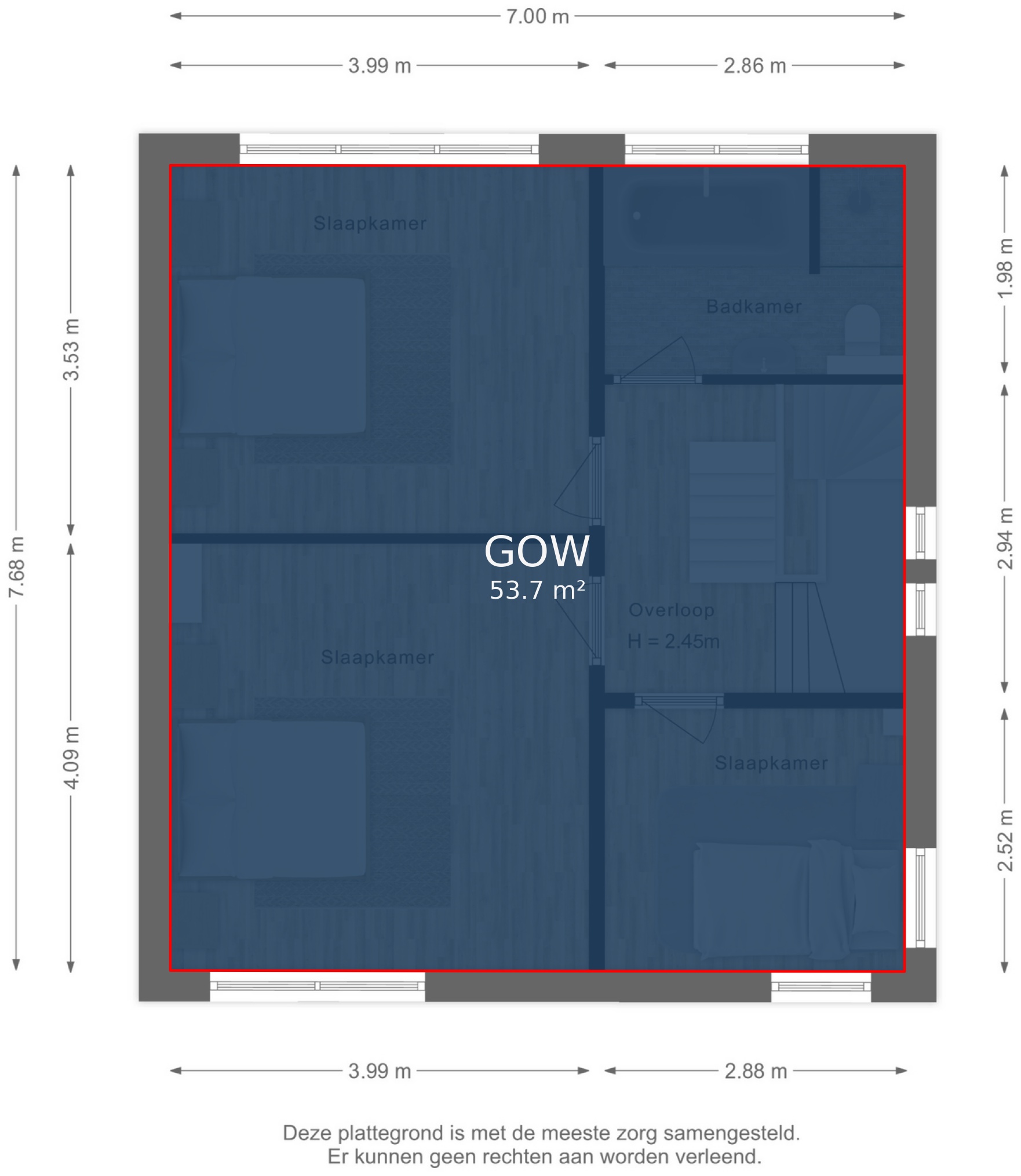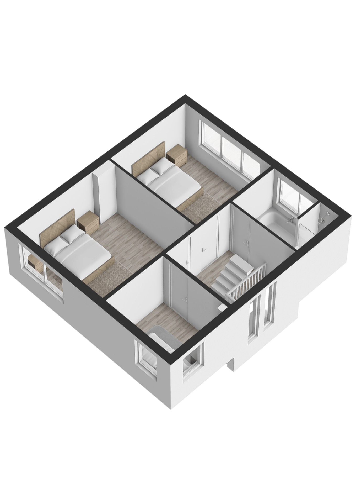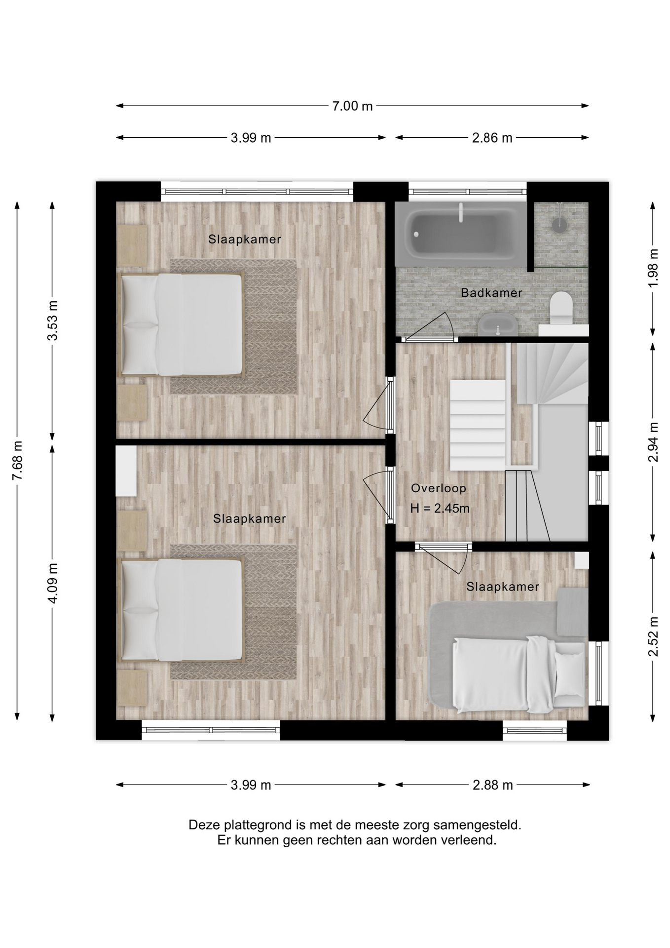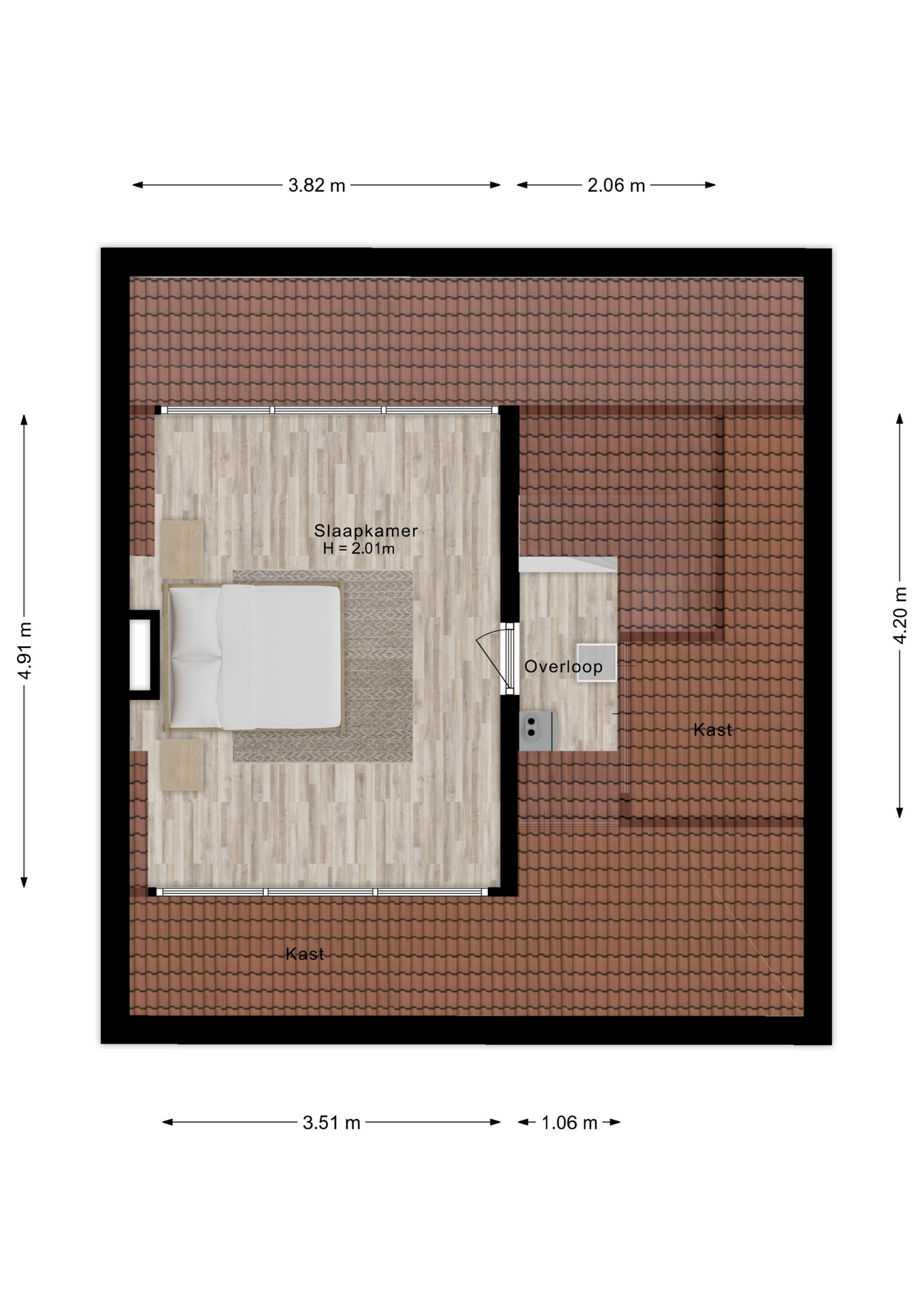 Op de eerste verdieping bevinden zich drie goed bemeten slaapkamers en een badkamer met ligbad, aparte douche, toilet en wastafel. Via een vaste trap bereikt u de zolderverdieping, waar een extra (slaap)kamer is gerealiseerd met twee dakkapellen voor extra licht en ruimte.