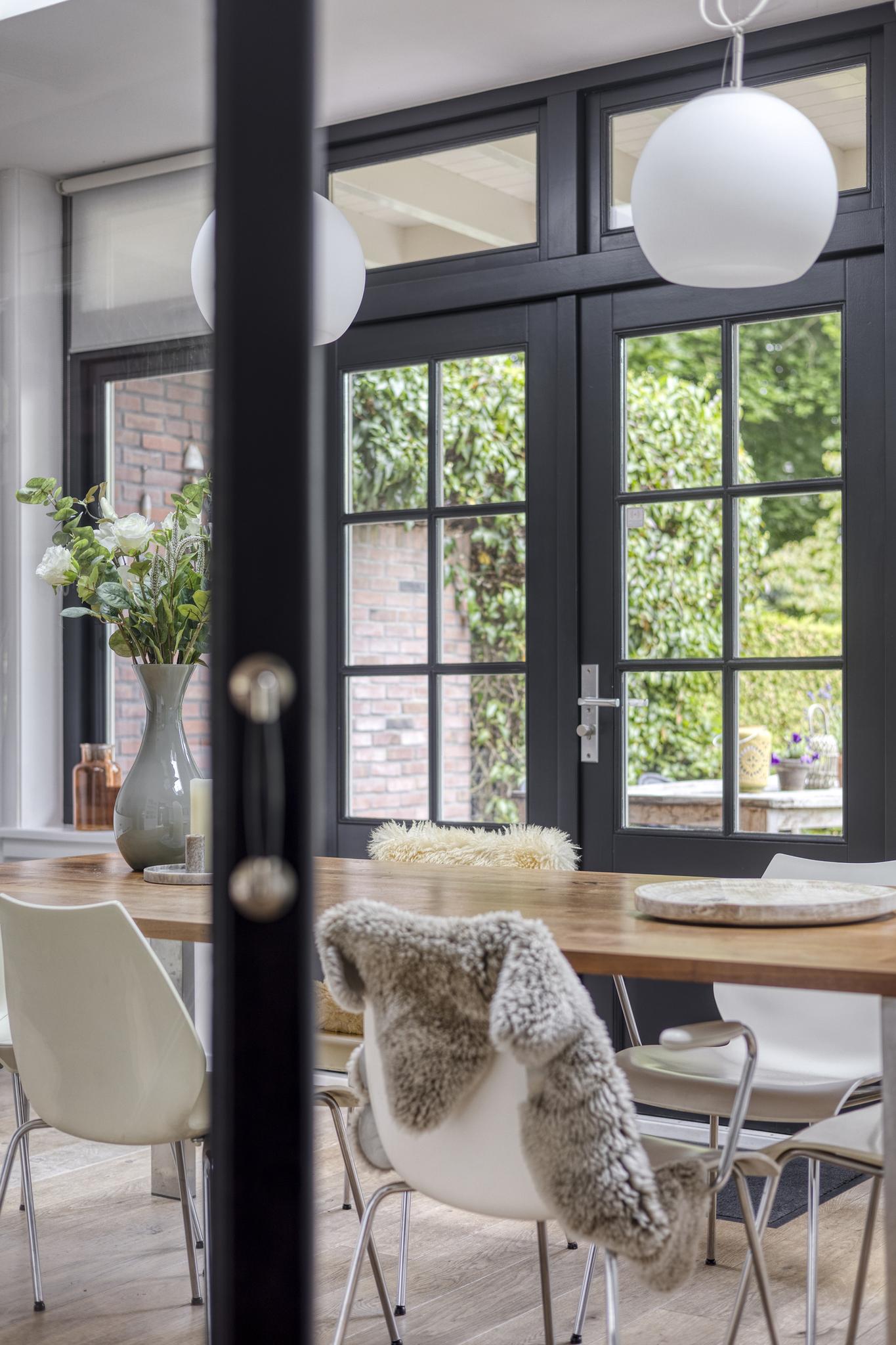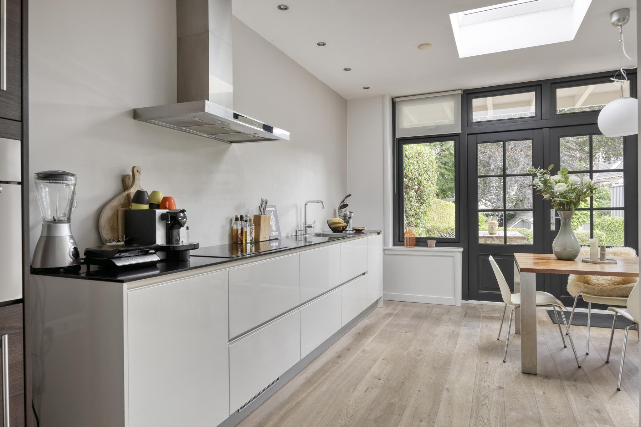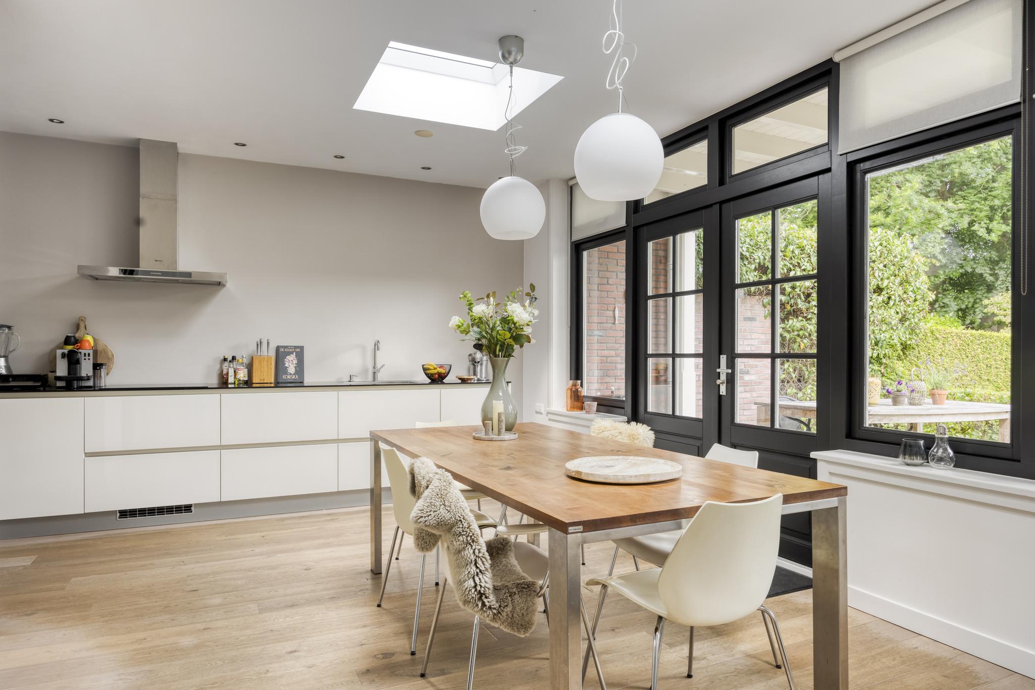 Bij binnenkomst valt direct de aangename lichtinval op. De royale woonkamer is voorzien van Hakwood premium gerookte houten vloer en een gezellige open haard – perfect voor lange avonden met familie of vrienden. De aangrenzende woonkeuken bevindt zich in de uitbouw (2011). Deze uitbouw is met stijl en behoud van oude elementen uitgevoerd. De uitbouw beschikt vloerverwarming en over twee elektrisch bedienbare Velux dakramen voorzien van een regensensor. De keuken beschikt over o.a. een vaatwasser , stoomoven, koel-vriescombinatie en een Boretti inductie kookplaat. Deze ruimte biedt niet alleen volop ruimte om te koken en te tafelen, maar geeft middels de openslaande deuren toegang tot de zonnige, goed bemeten tuin.