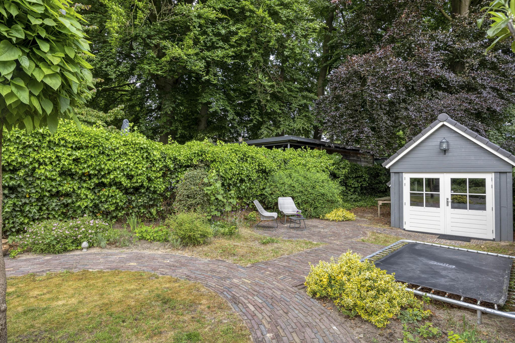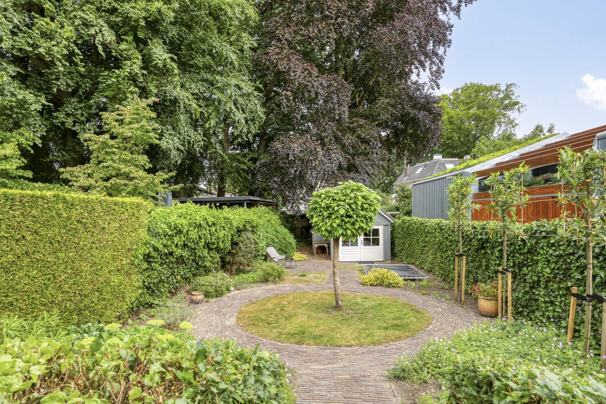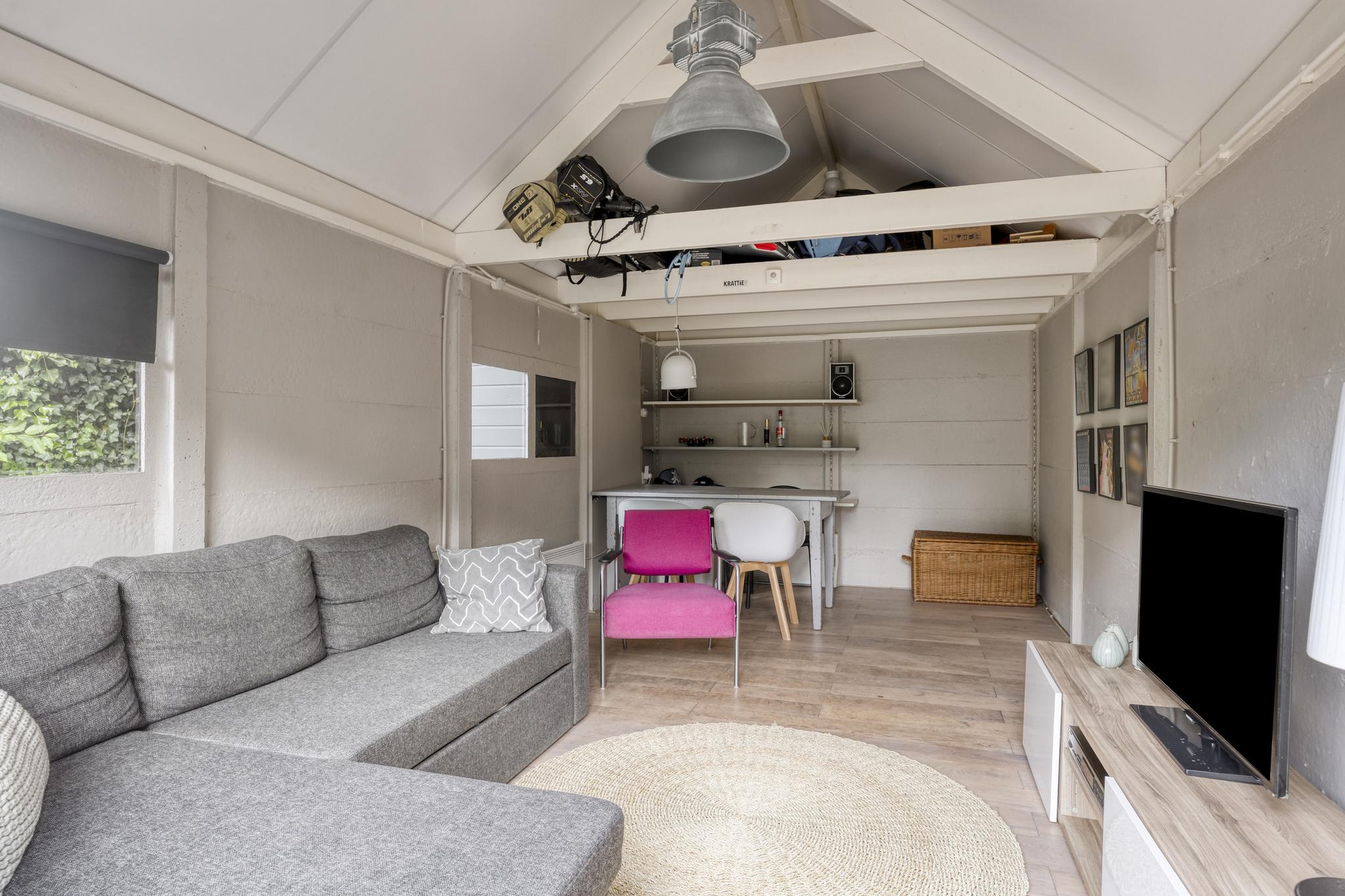 De tuin is een rustige, groene oase met veel privacy. De veranda maakt het mogelijk om in elk seizoen te genieten van de tuin, dit wordt mede mogelijk gemaakt door de aanwezige warmtelampen. Achterin de tuin bevindt zich een multifunctioneel tuinhuis, momenteel ingericht als extra slaapkamer. Dit is ook een uitstekende ruimte voor een kantoor, atelier of hobbyruimte.