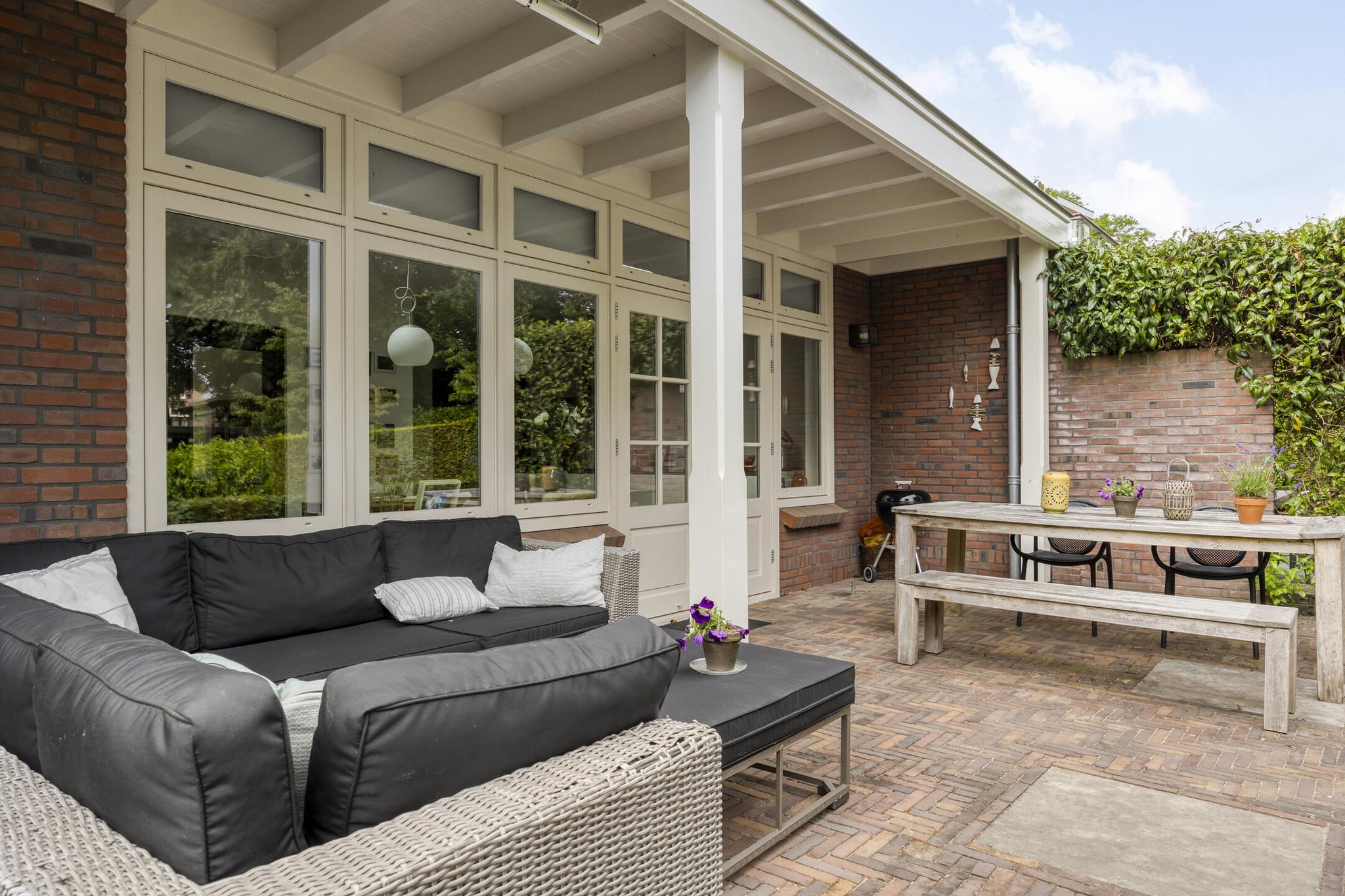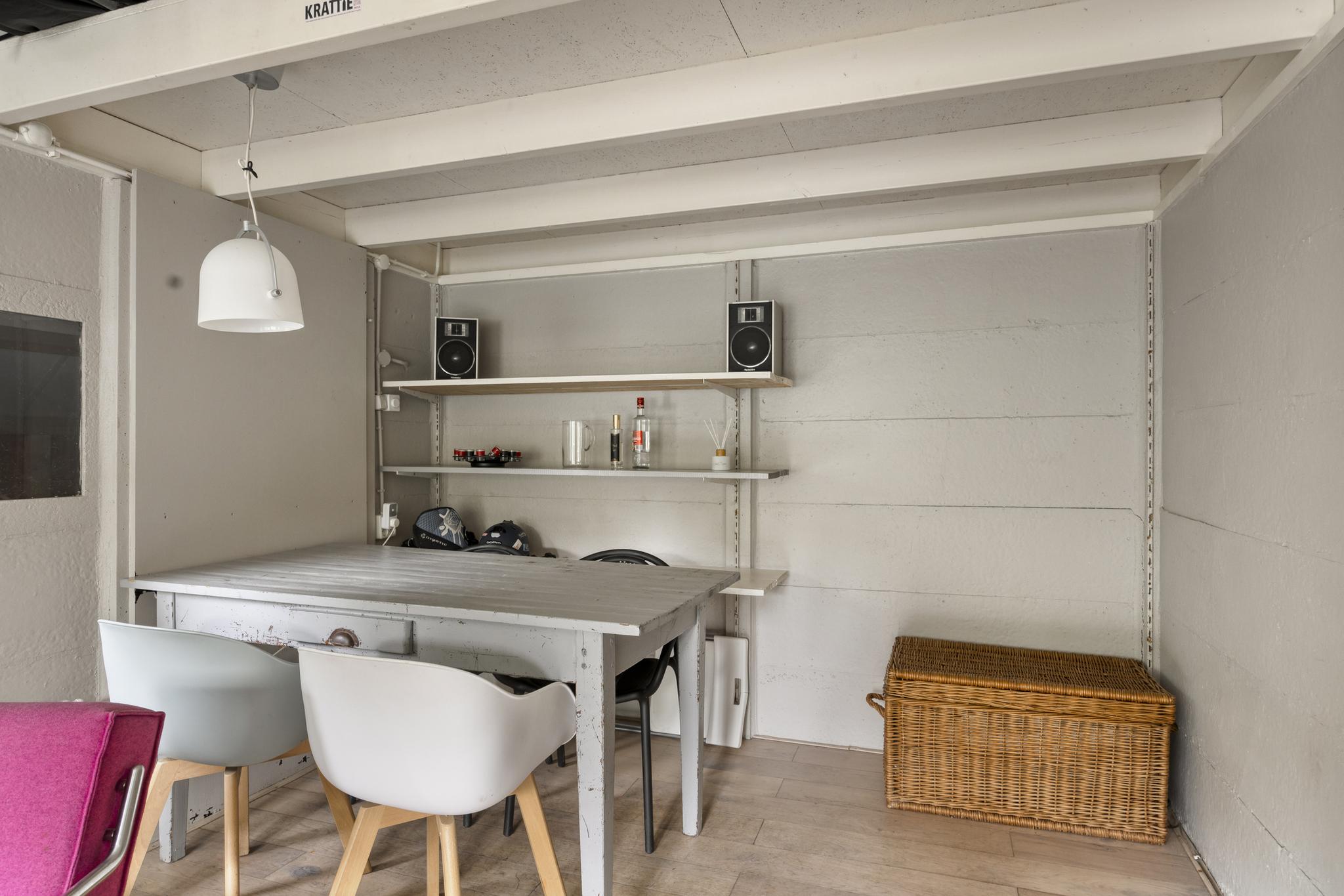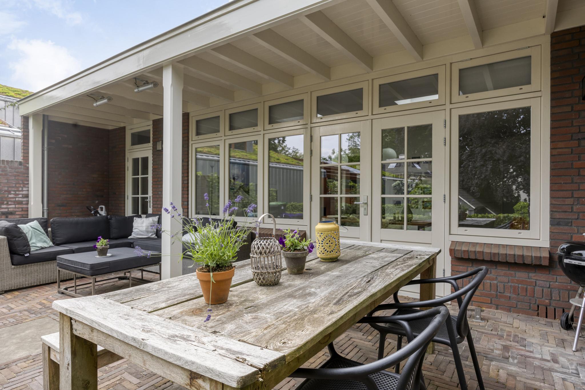 De tuin is een rustige, groene oase met veel privacy. De veranda maakt het mogelijk om in elk seizoen te genieten van de tuin, dit wordt mede mogelijk gemaakt door de aanwezige warmtelampen. Achterin de tuin bevindt zich een multifunctioneel tuinhuis, momenteel ingericht als extra slaapkamer. Dit is ook een uitstekende ruimte voor een kantoor, atelier of hobbyruimte.