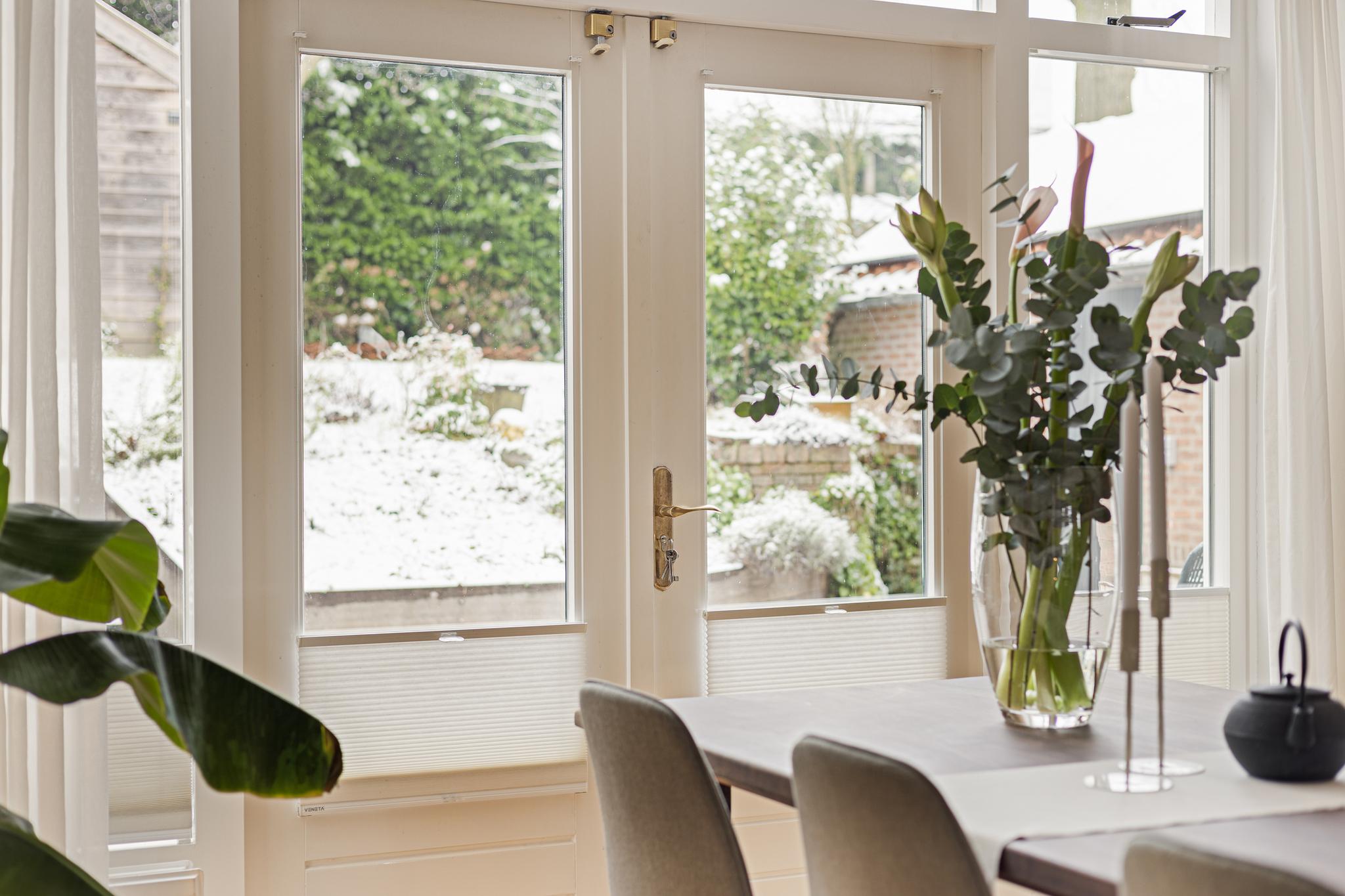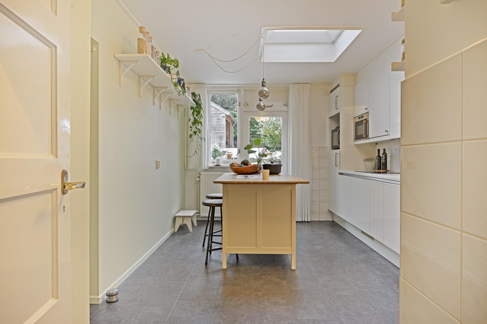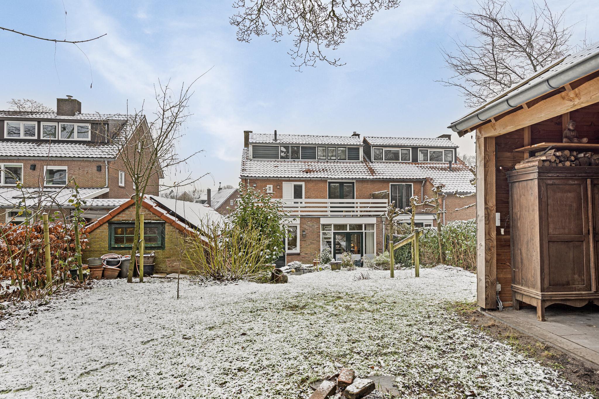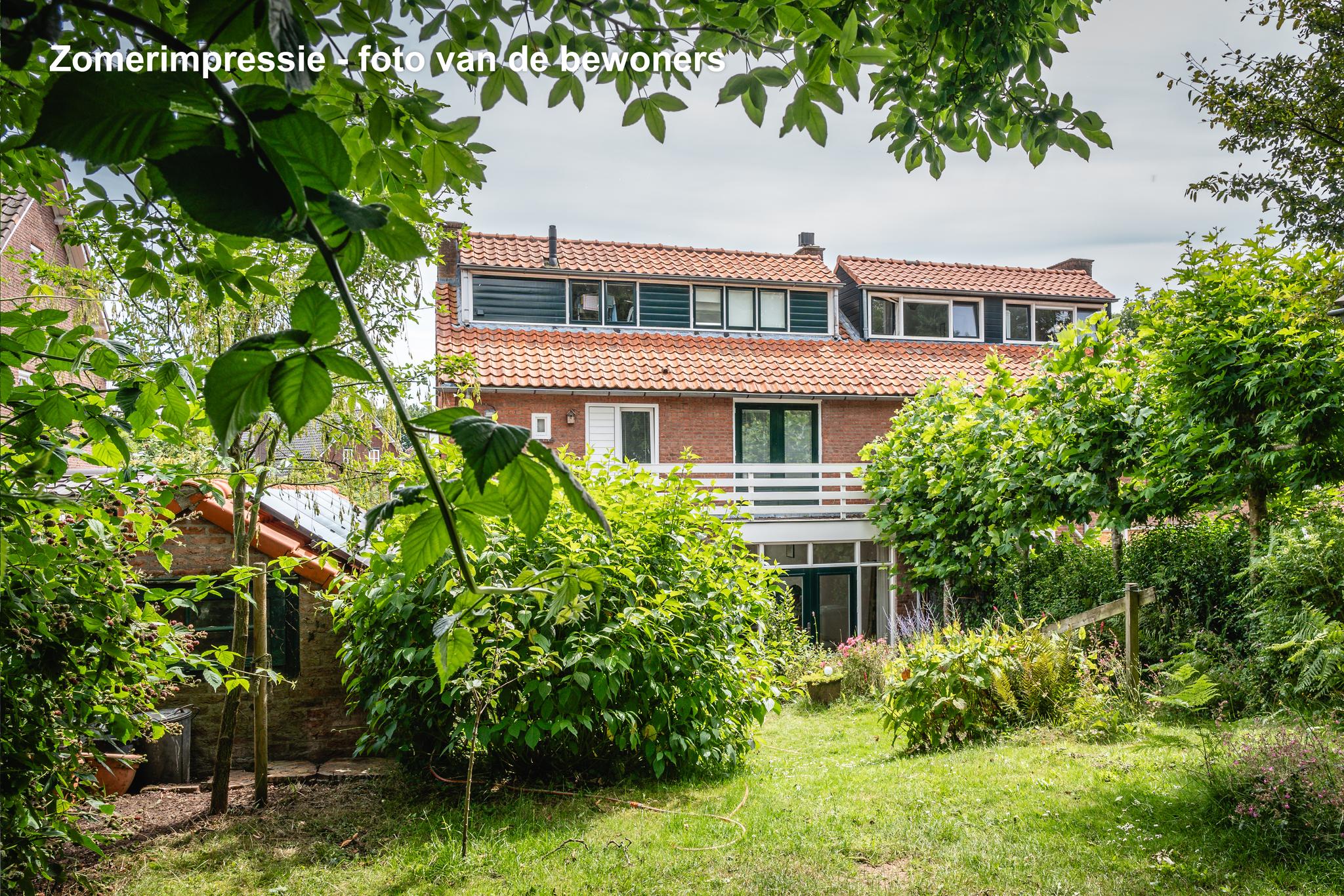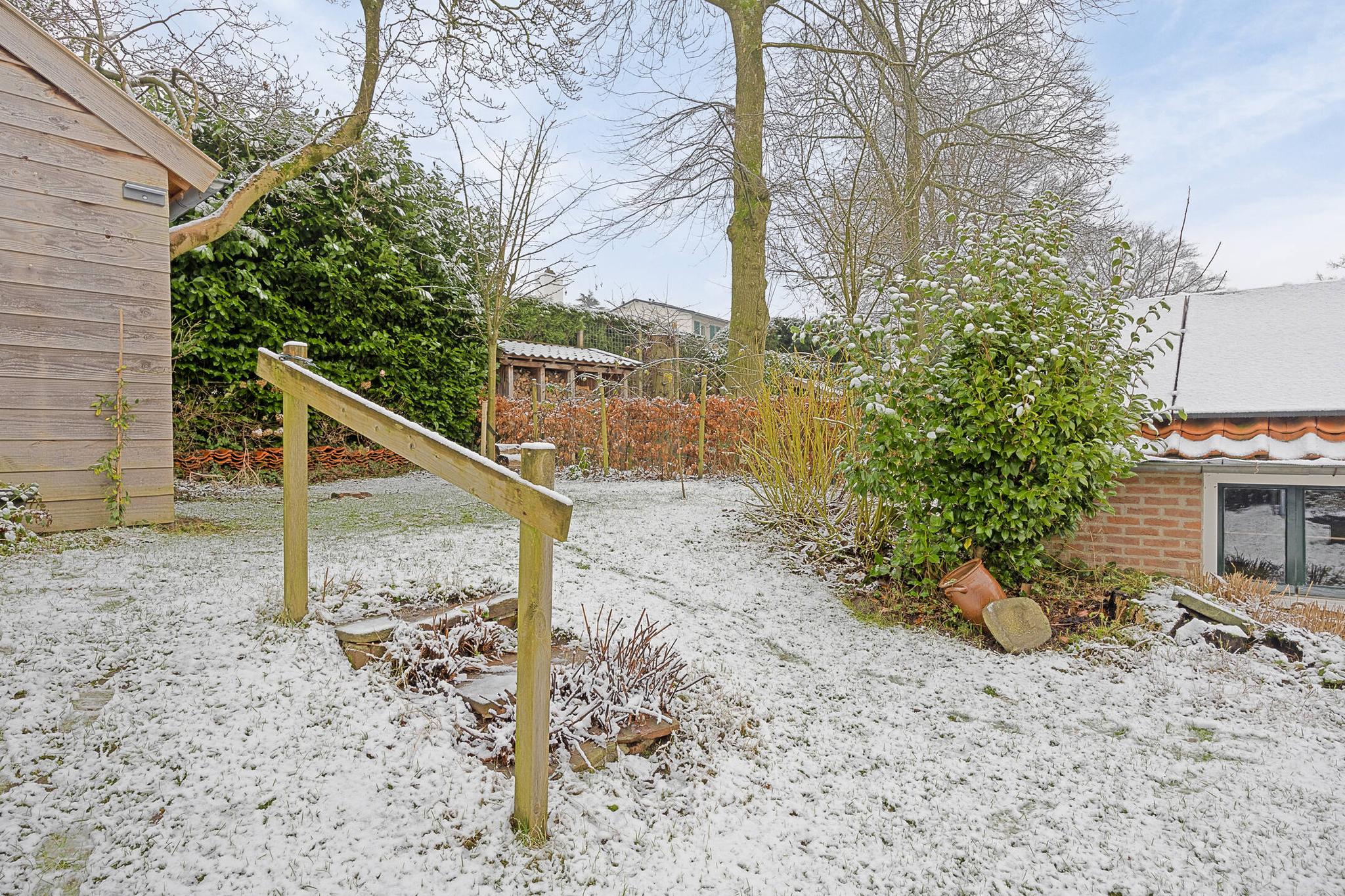 Zowel de keuken als de woonkamer bieden toegang tot buiten: een heerlijk terras met daarachter een fraai aangelegde en goed verzorgde groene oase. Door het hoogteverschil, en de strategisch geplaatste bomen heb je er veel privacy. Achter in de tuin staat een sfeervolle kapschuur met elektriciteit, ideaal om ’s ochtends te genieten van de eerste zonnestralen en een kopje koffie. ’s Avonds steek je het houtkacheltje aan en creëer je een gezellige plek om de dag af te sluiten.