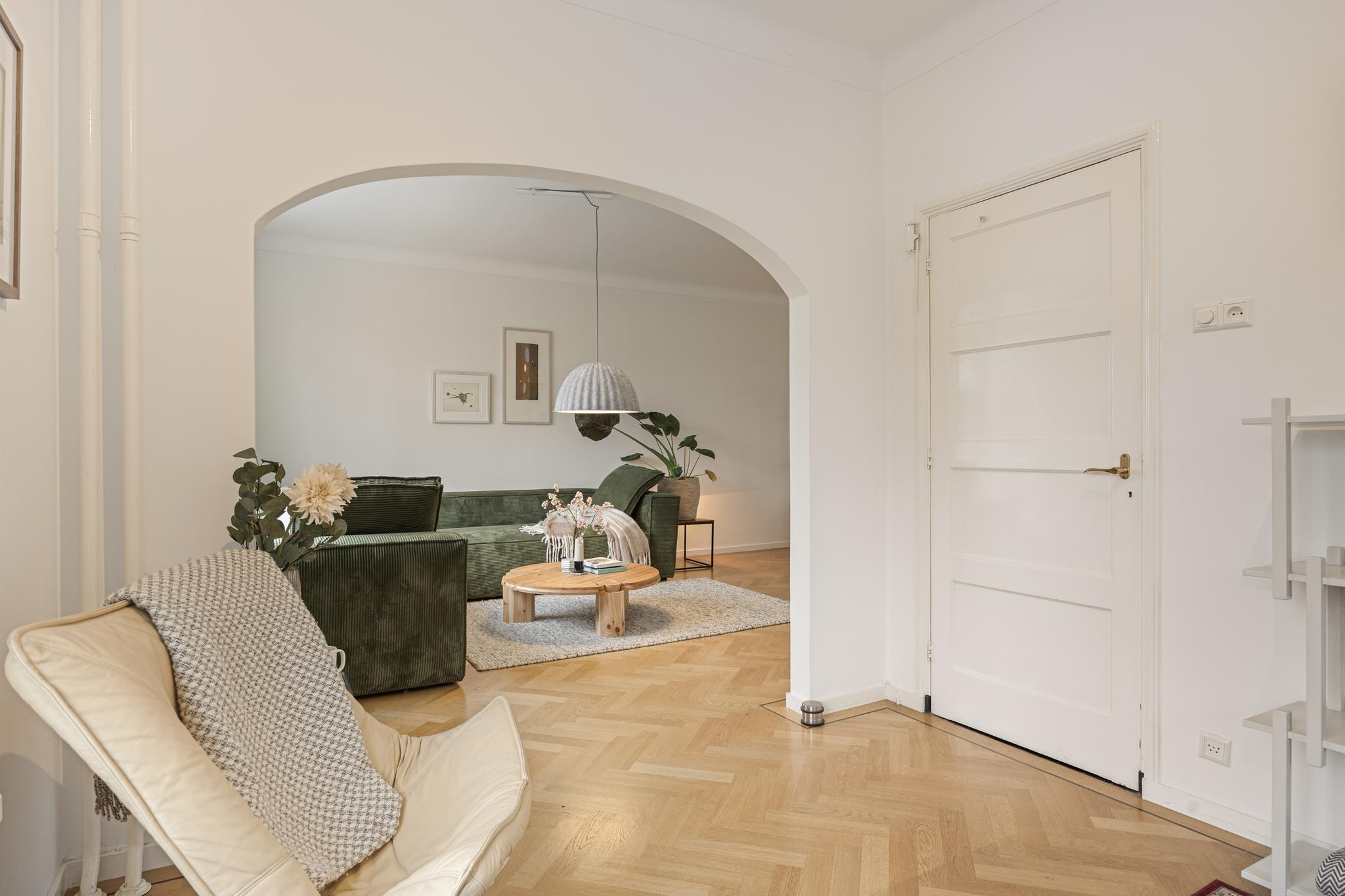 De entree is een plaatje: een statige, ruime hal met eikenhouten…